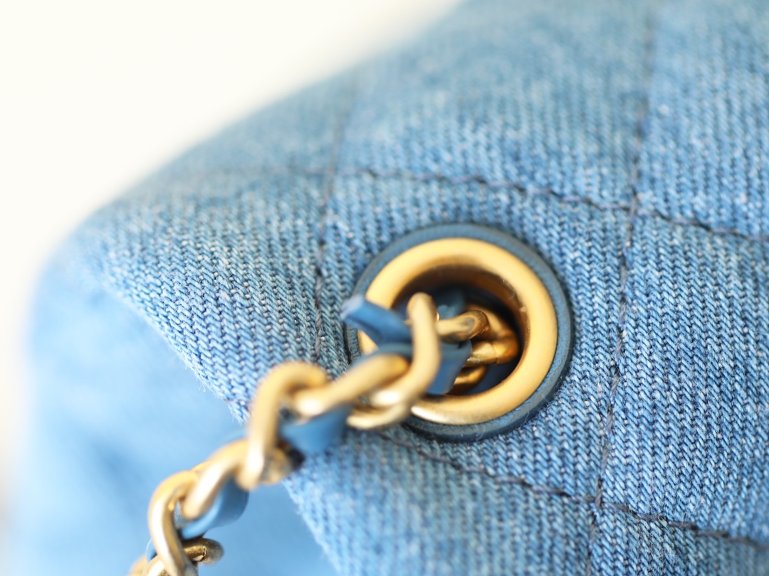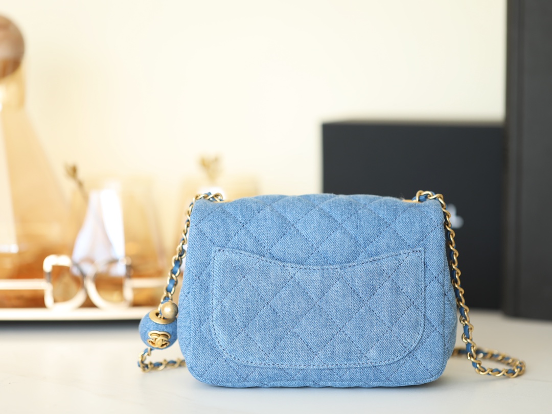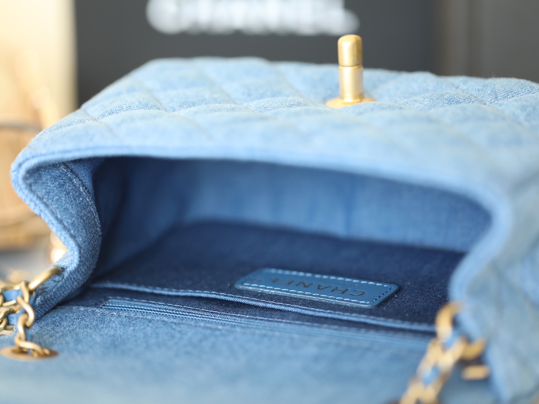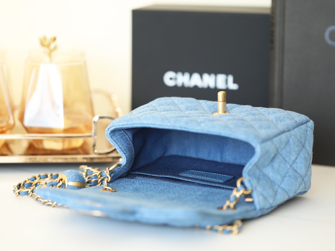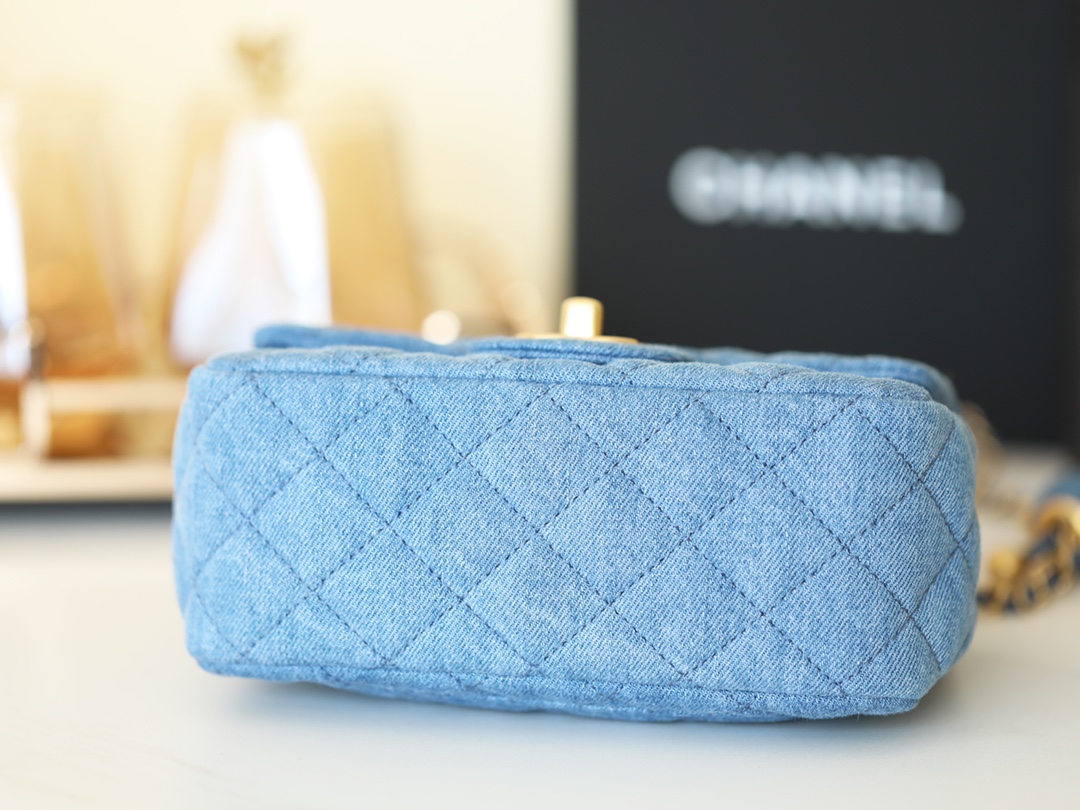 • CHANEL Pearl Crush Mini Square Flap Bag Denim Antique Gold Hardware