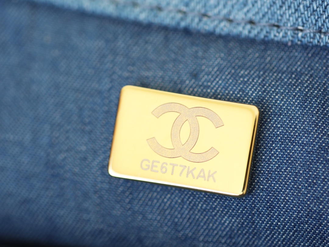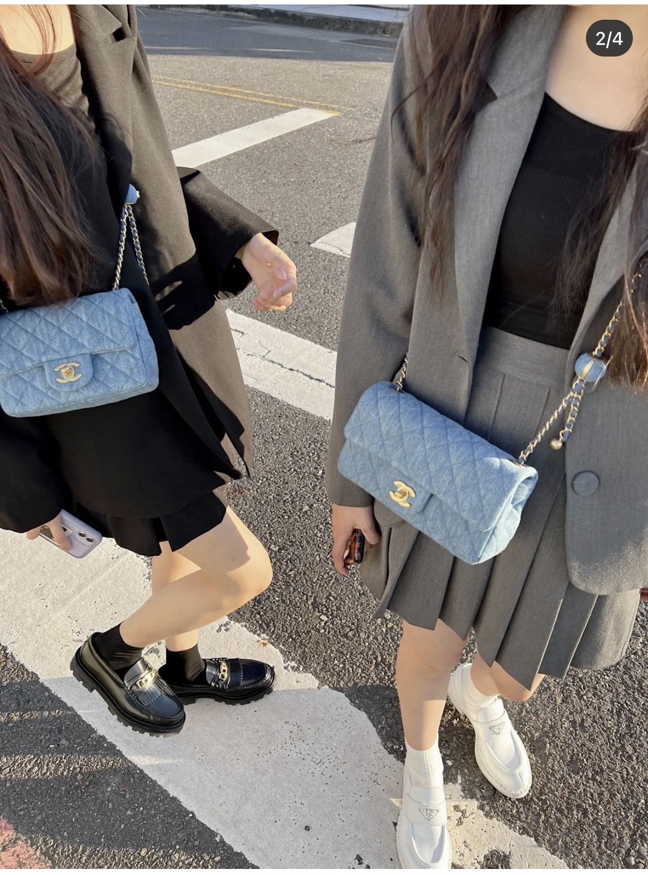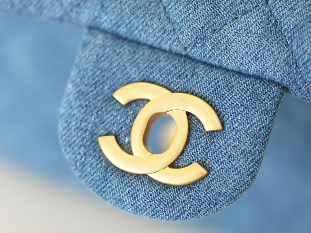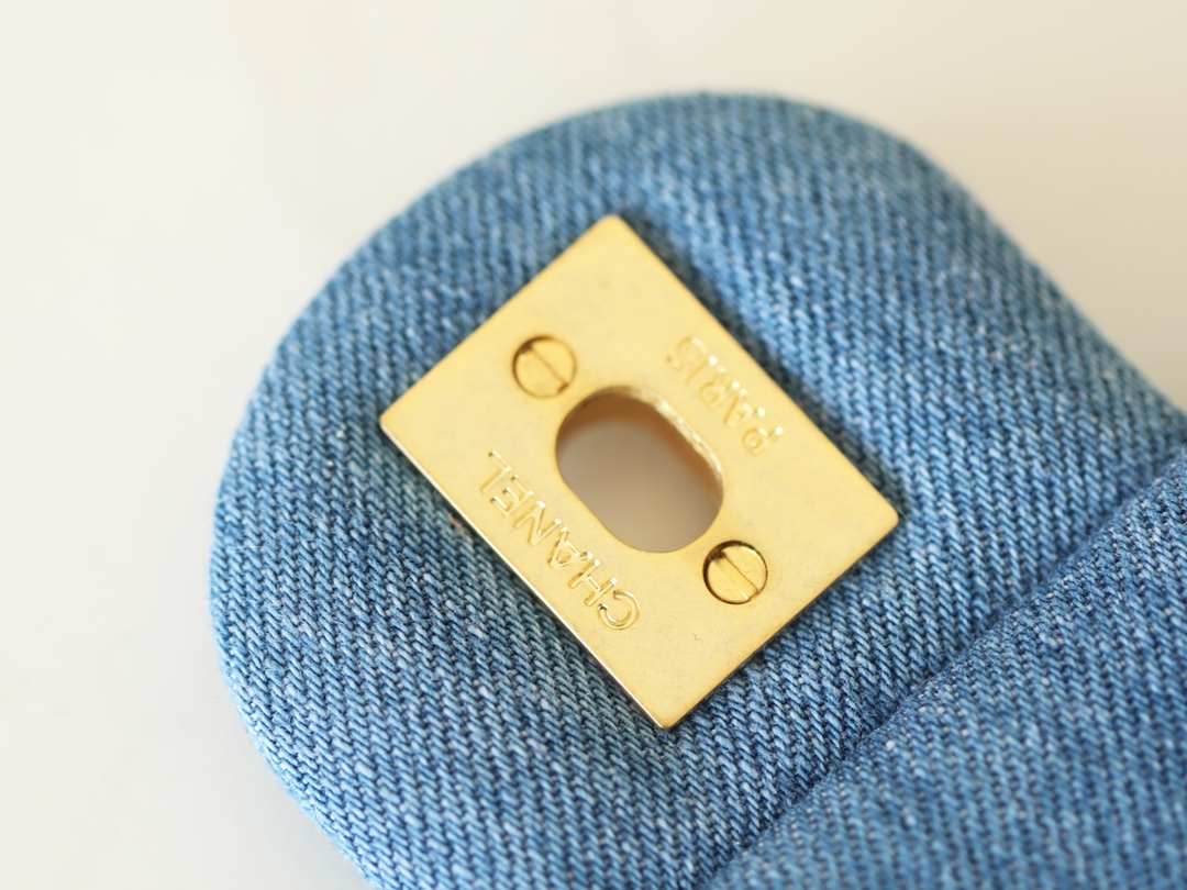 • CHANEL Pearl Crush Mini Square Flap Bag Denim Antique Gold Hardware