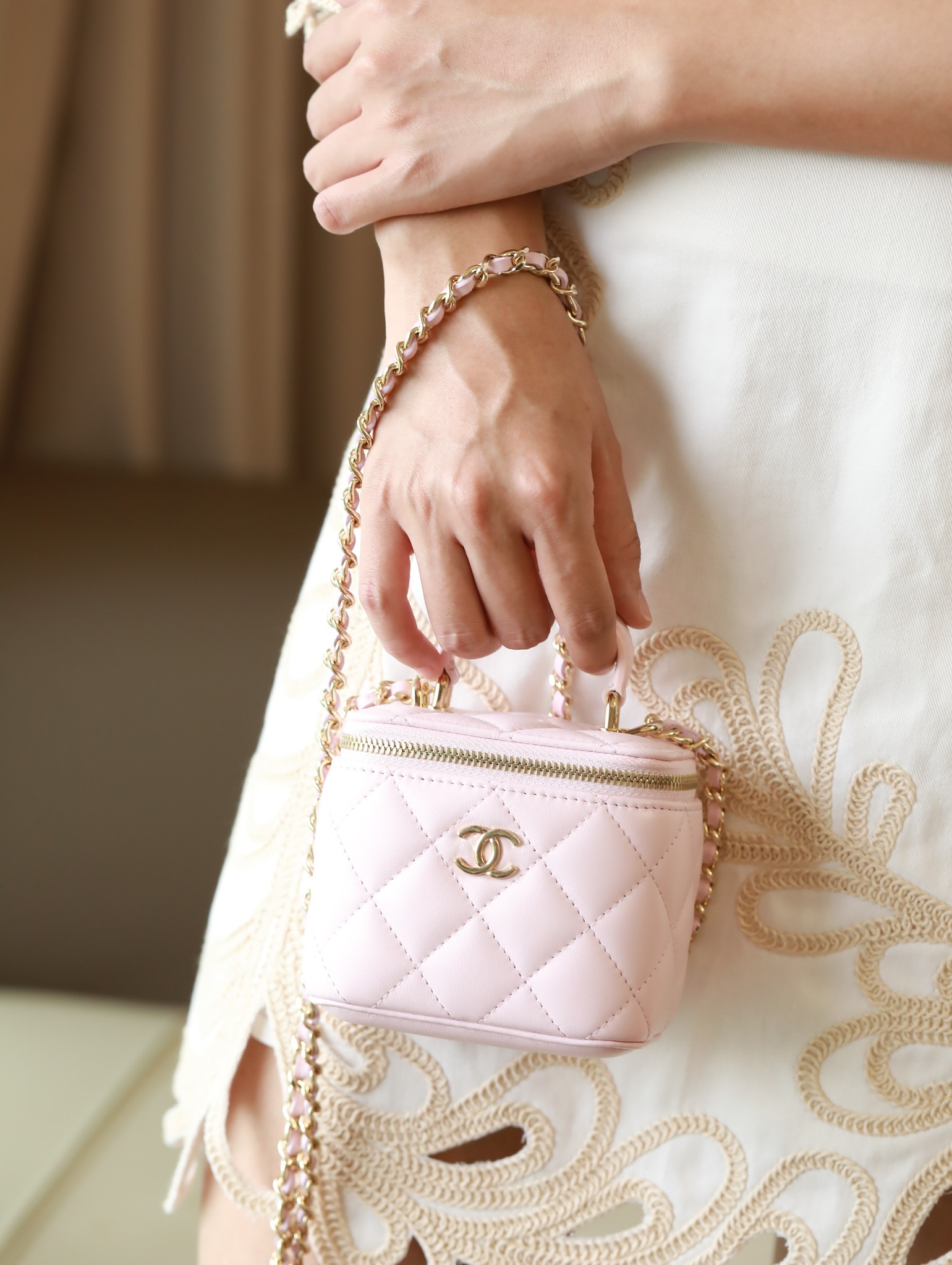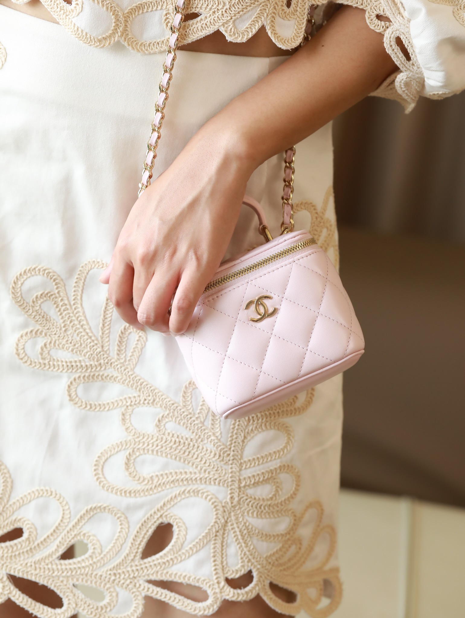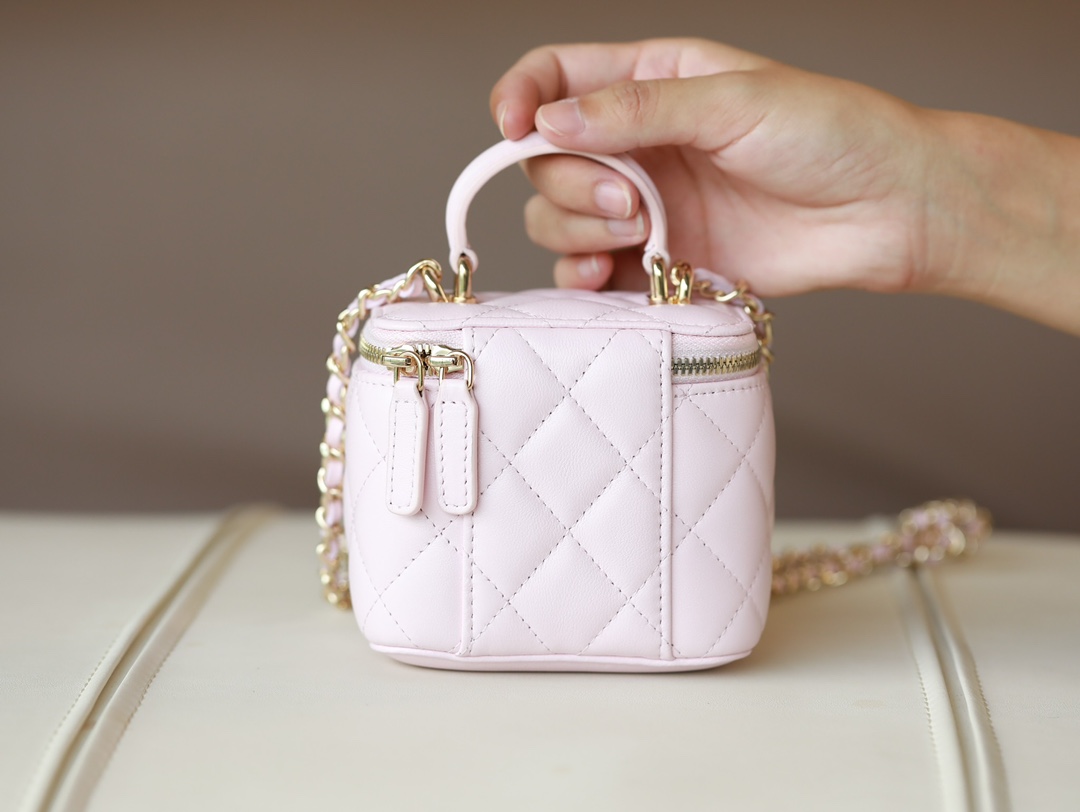 • CHANEL Pink Lambskin Quilted Mini Vanity Gold Hardware