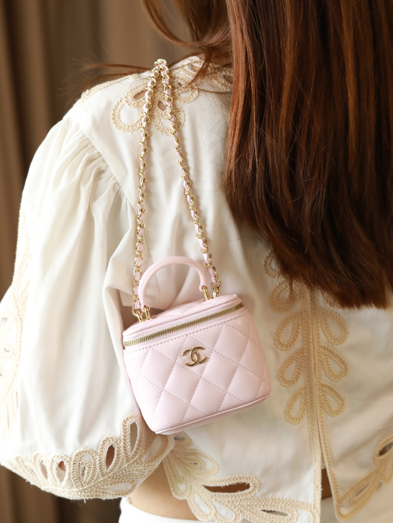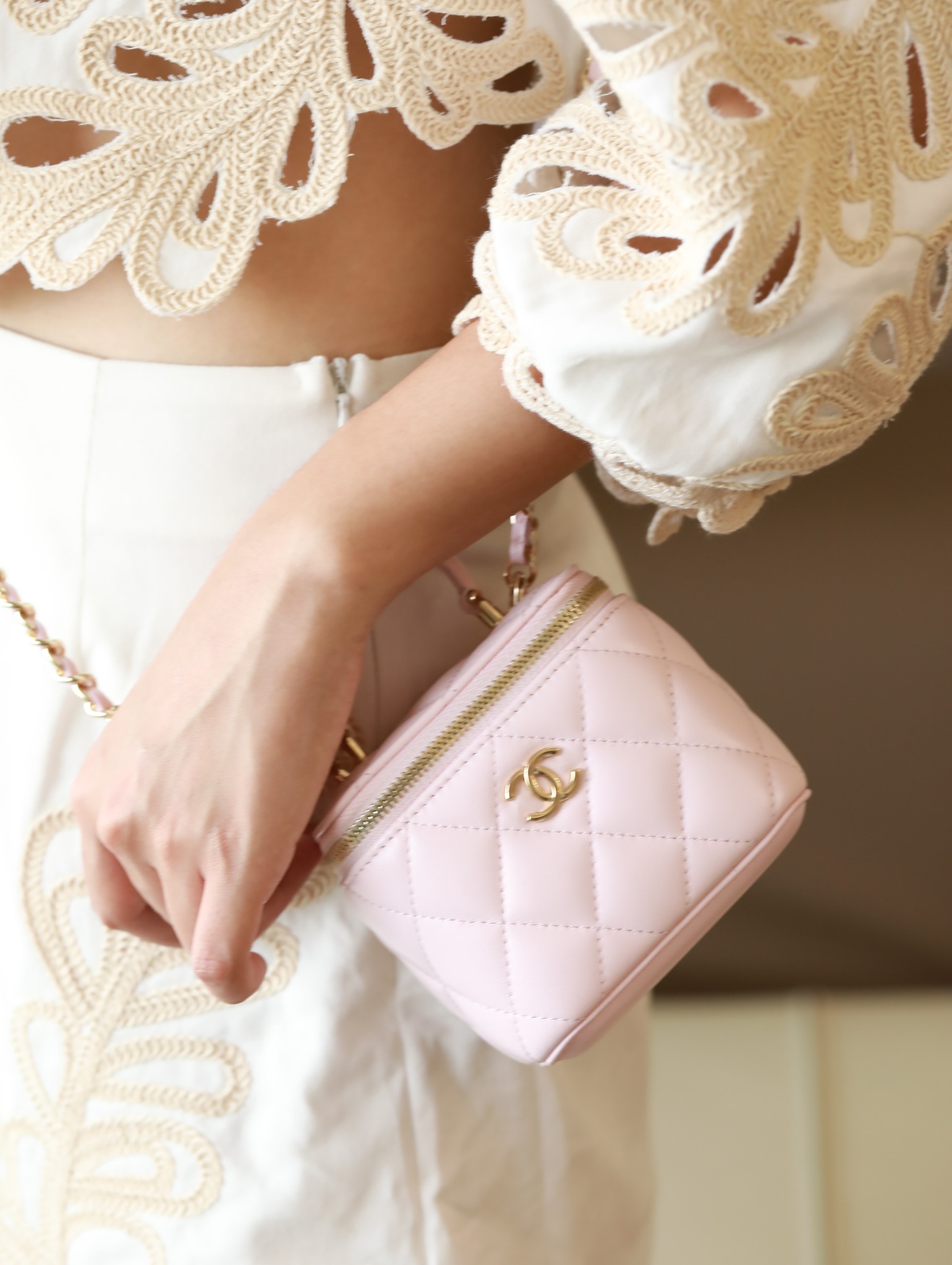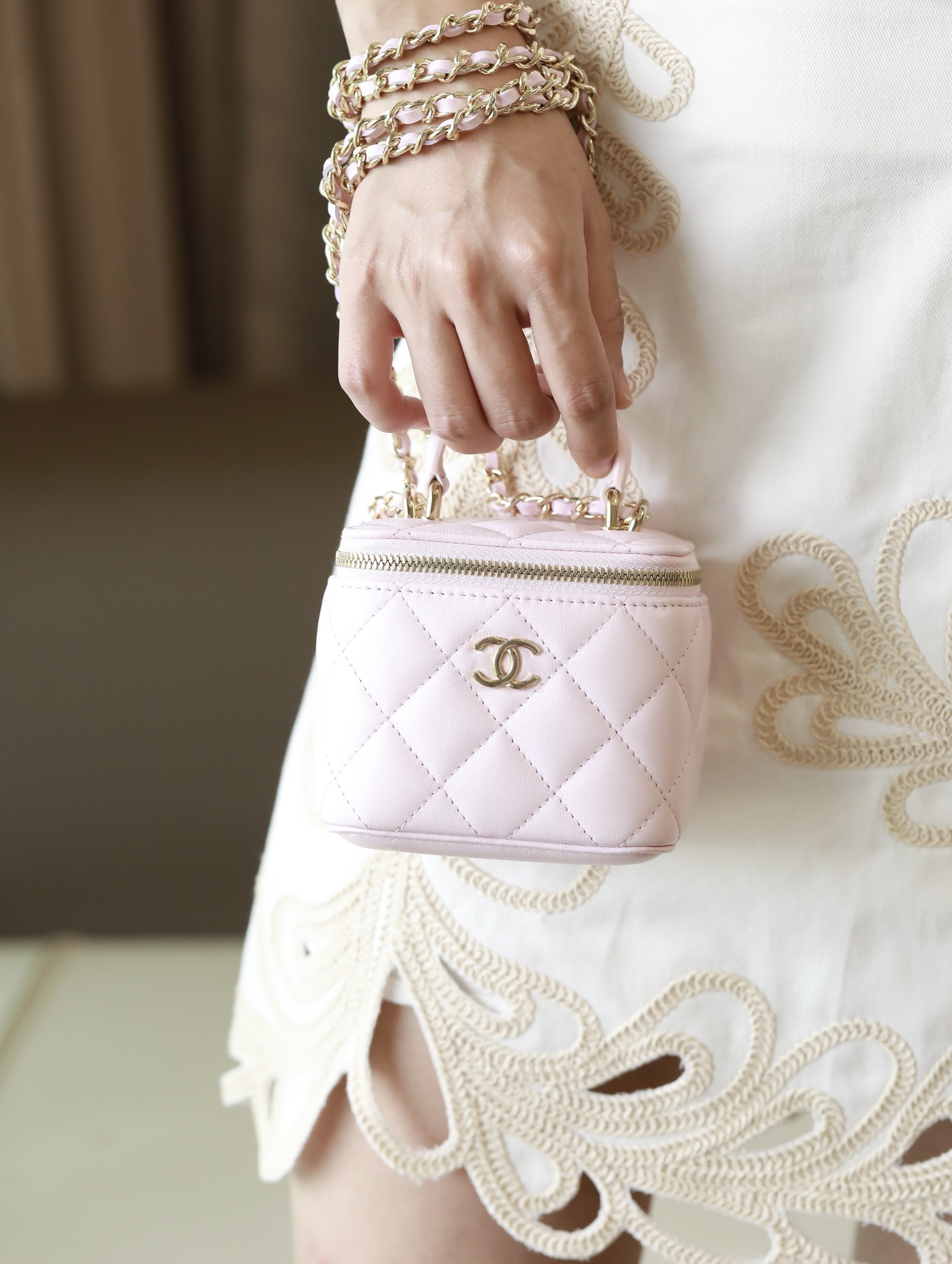 • CHANEL Pink Lambskin Quilted Mini Vanity Gold Hardware