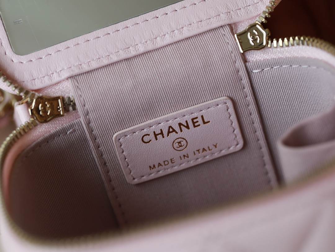 CHANEL Pink Lambskin Quilted Mini Vanity Gold Hardware