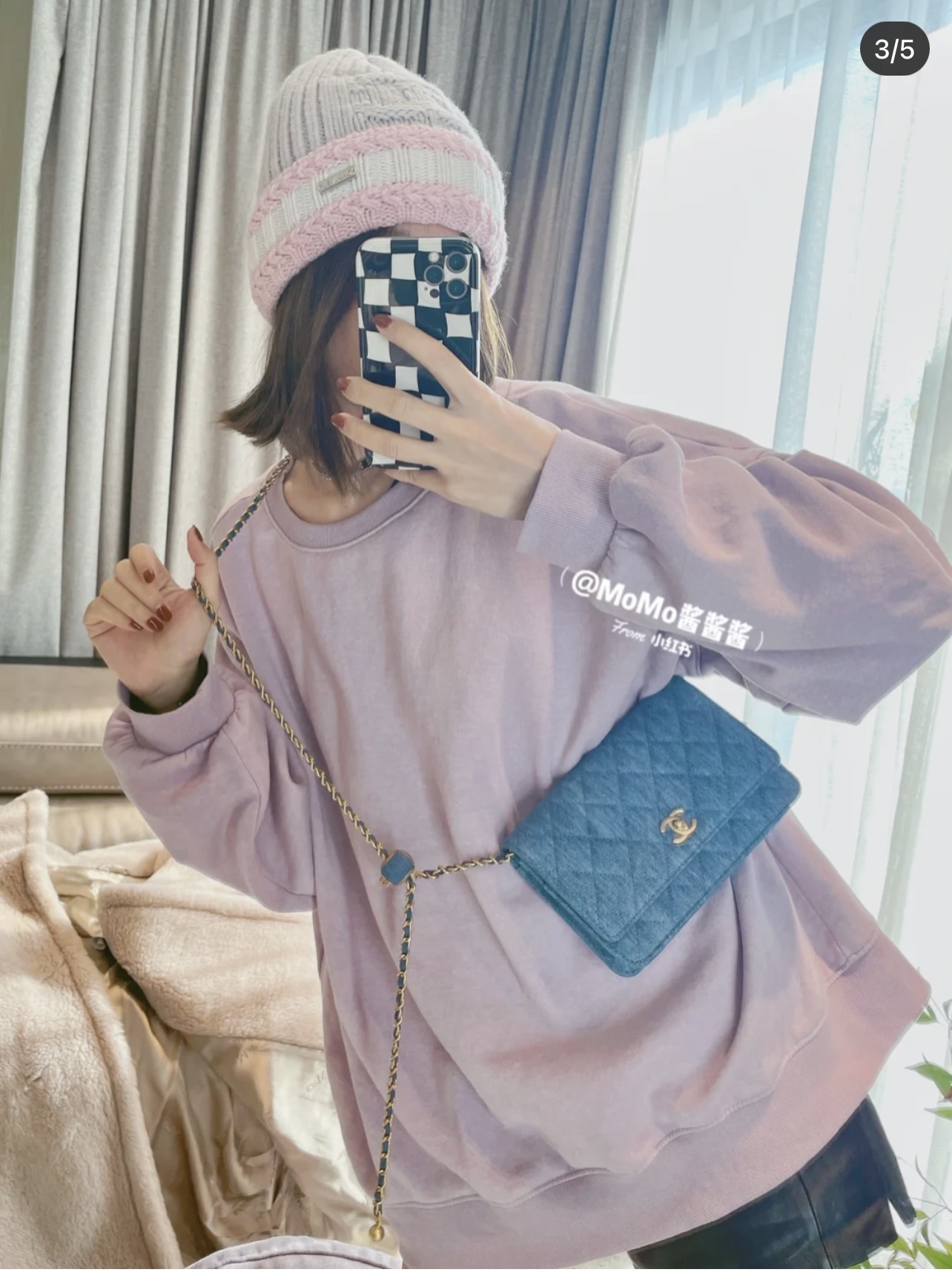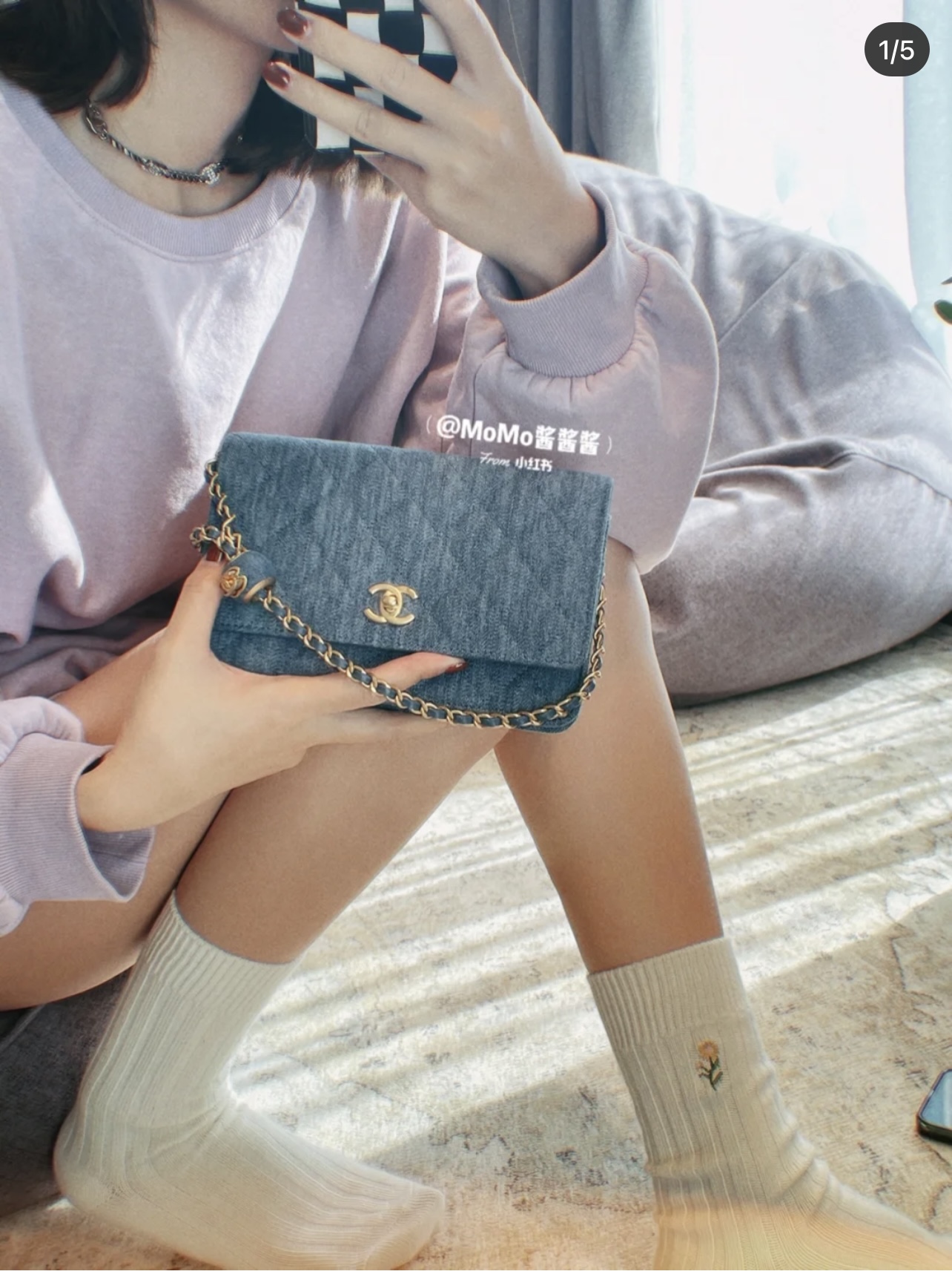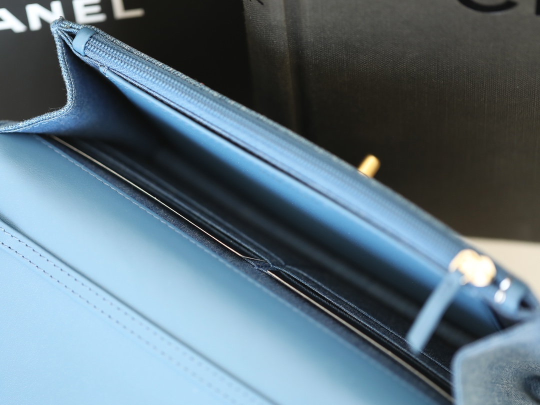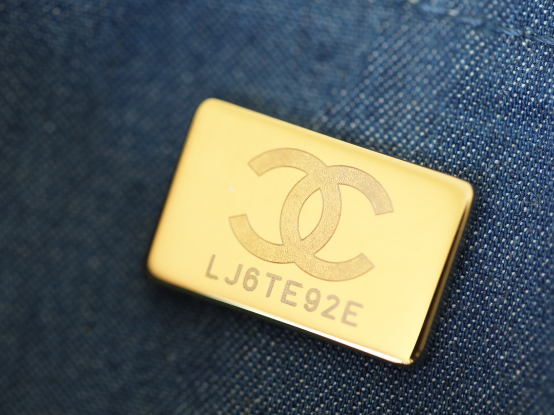 CHANEL Quilted Pearl Crush Wallet on Chain WOC Denim Aged Gold Hardware