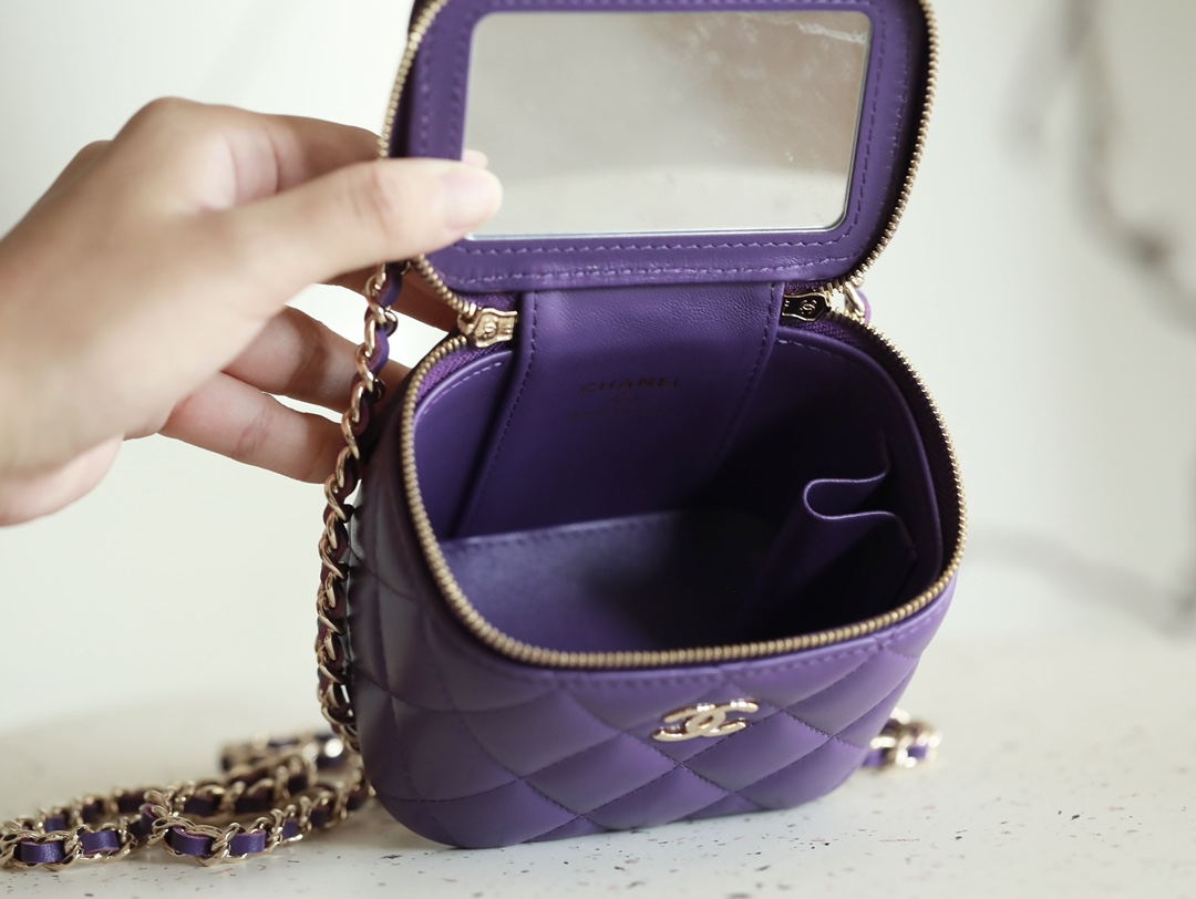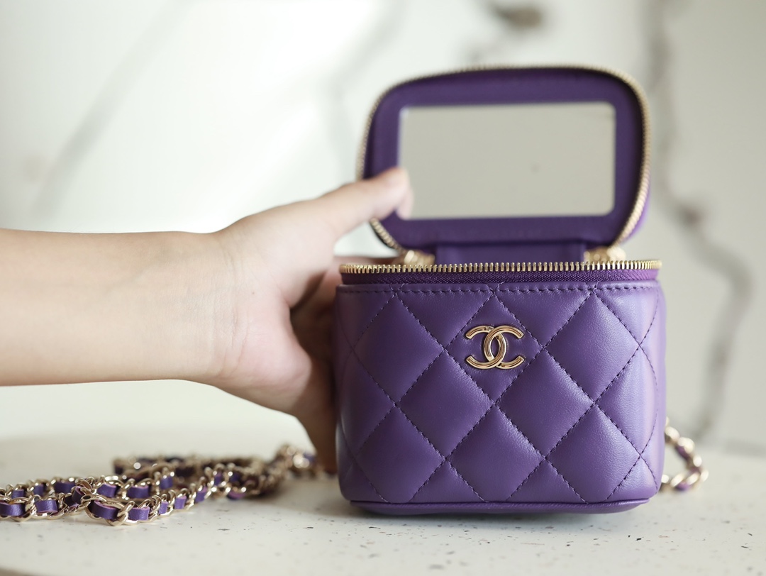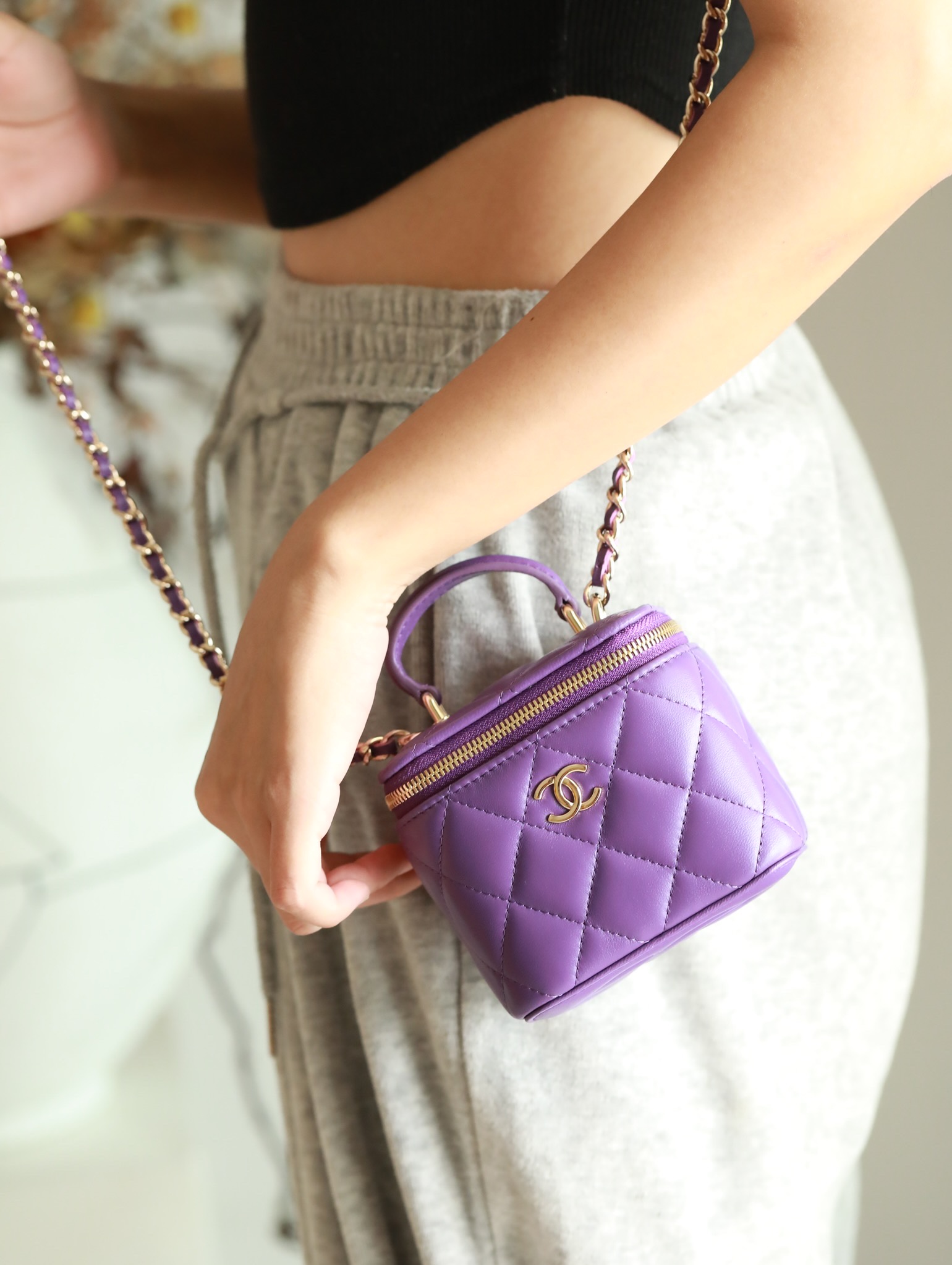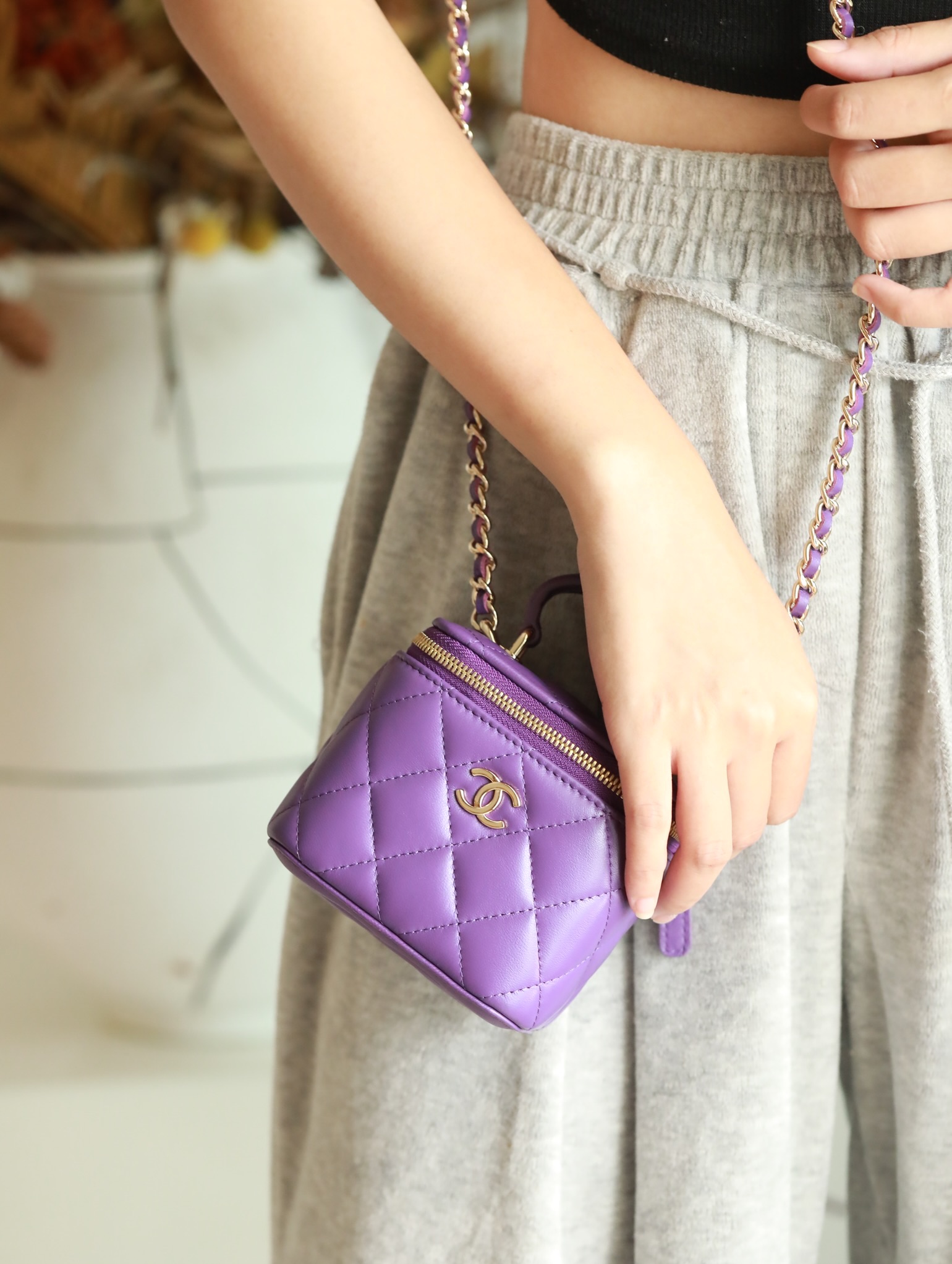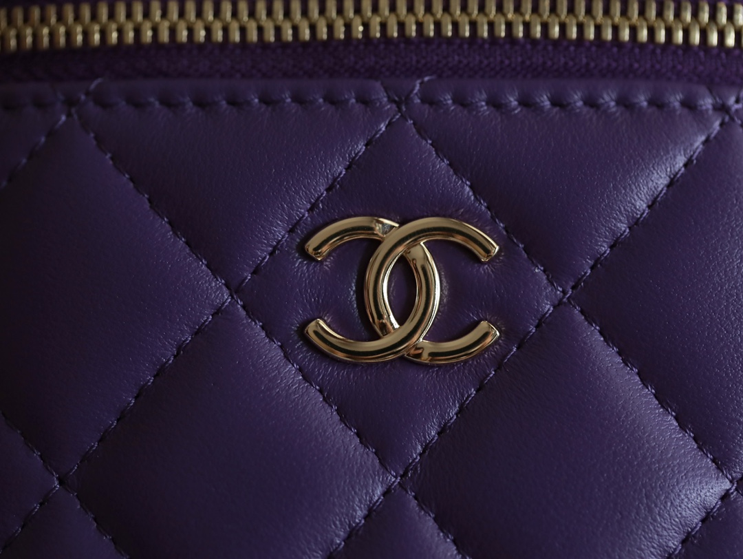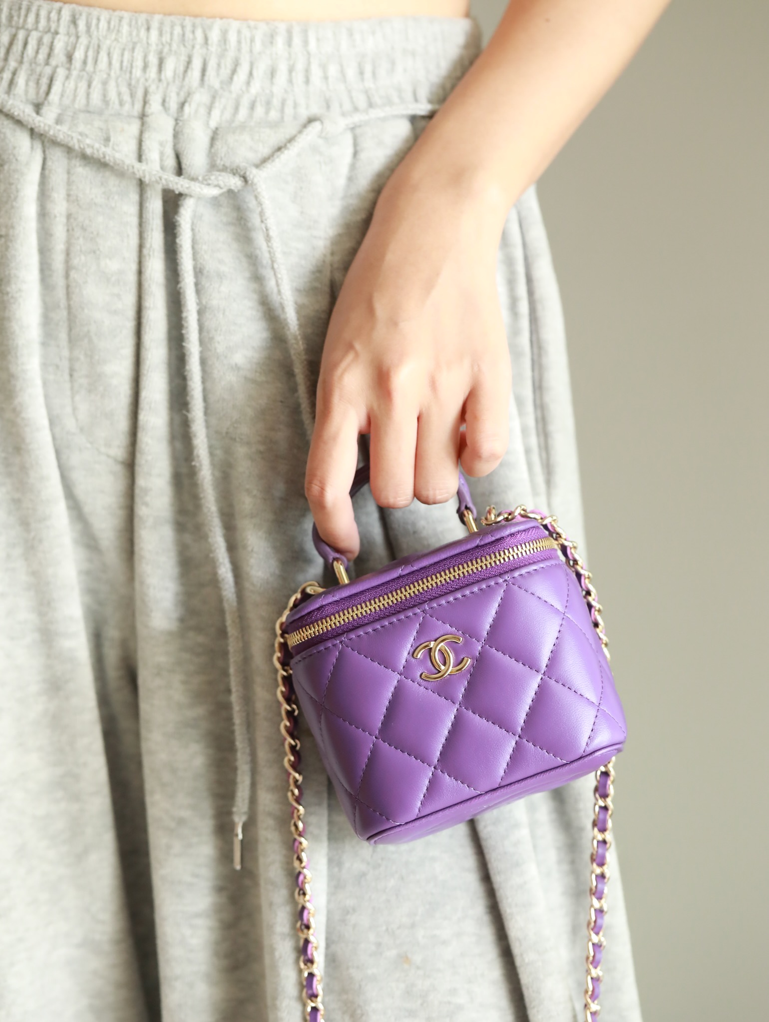 CHANEL Small Classic CC Vanity Case Purple Lambskin Gold Hardware