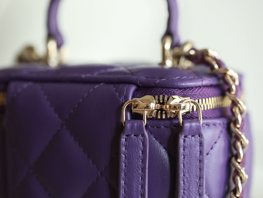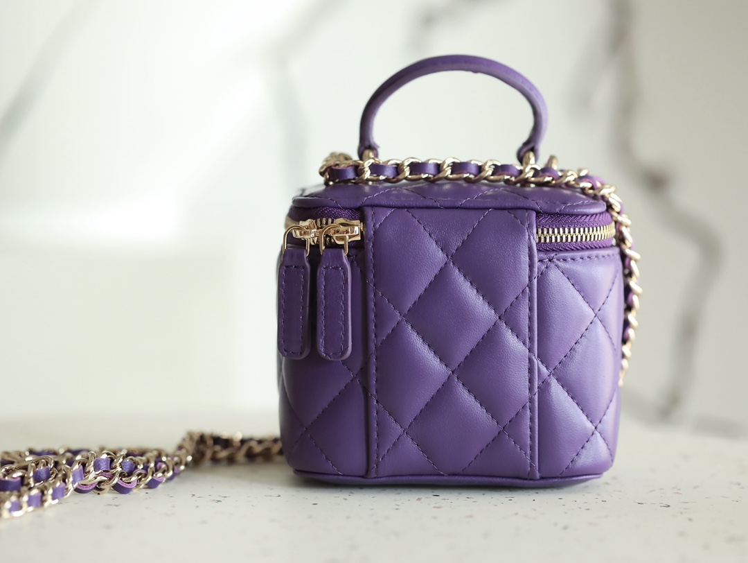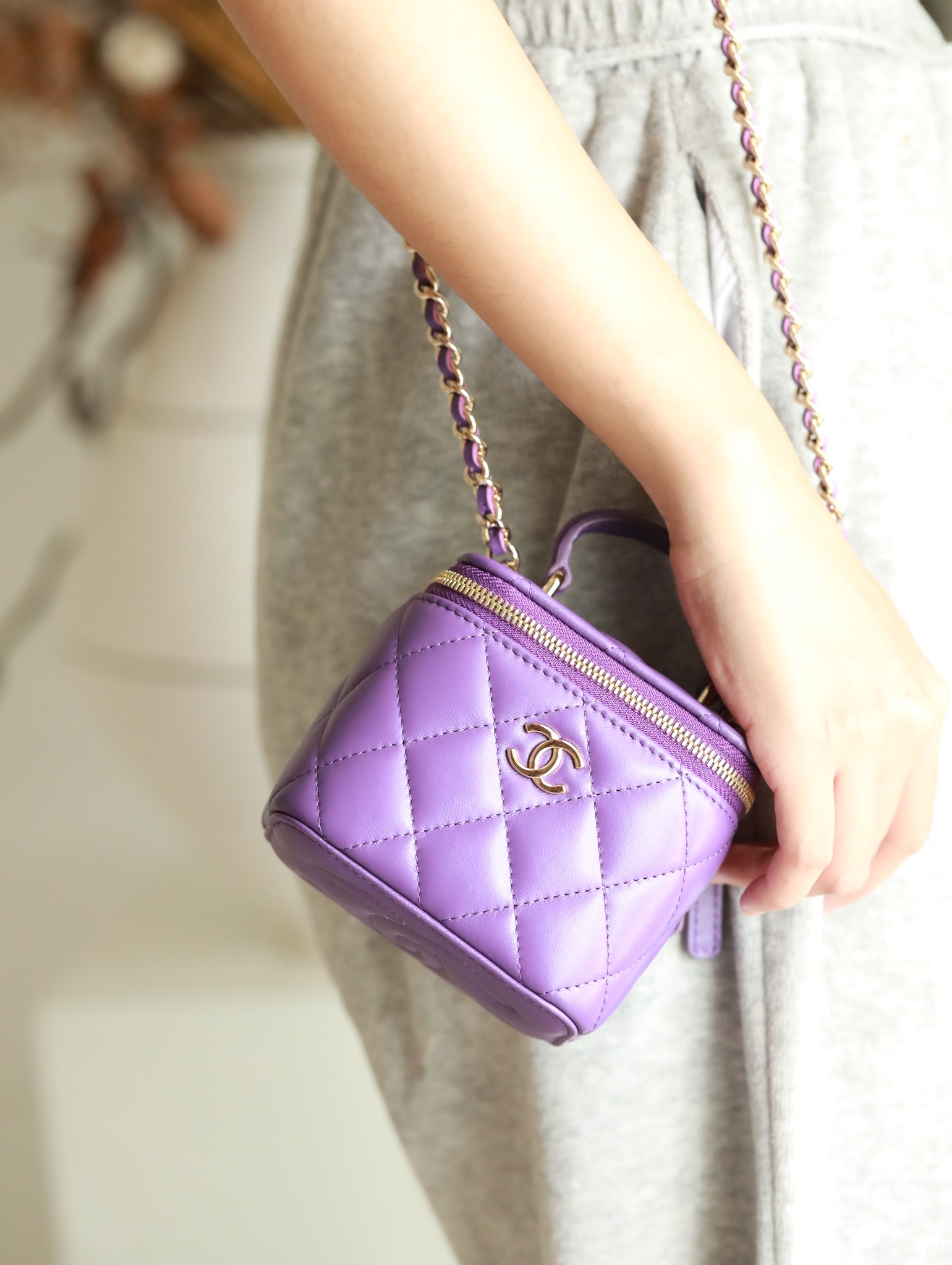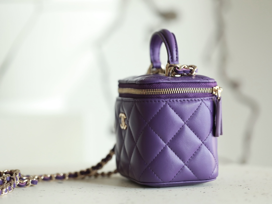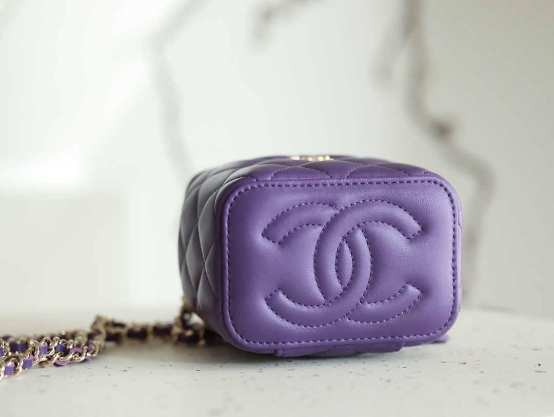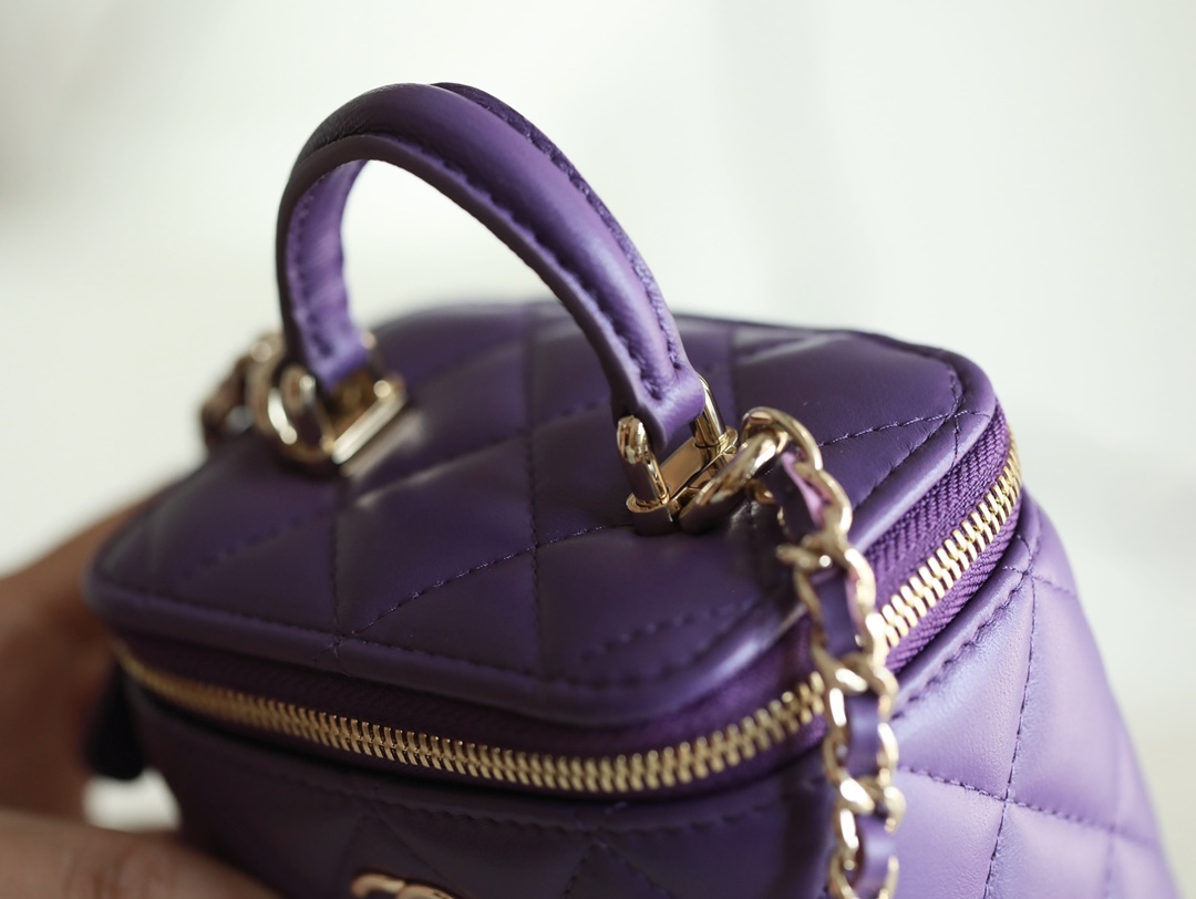 CHANEL Small Classic CC Vanity Case Purple Lambskin Gold Hardware