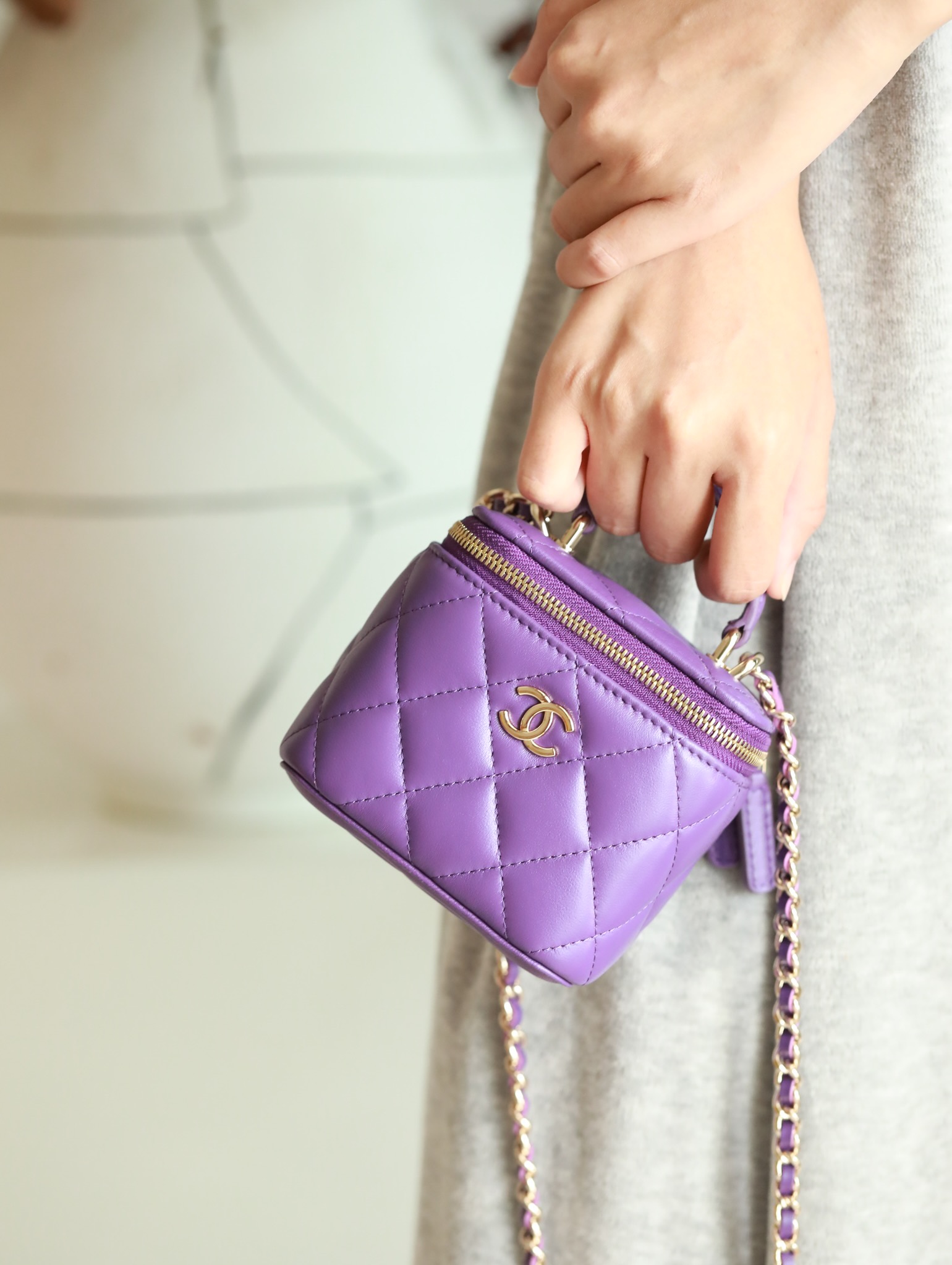 • CHANEL Small Classic CC Vanity Case Purple Lambskin Gold Hardware