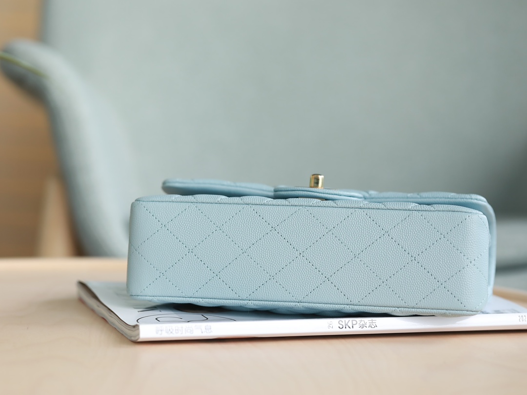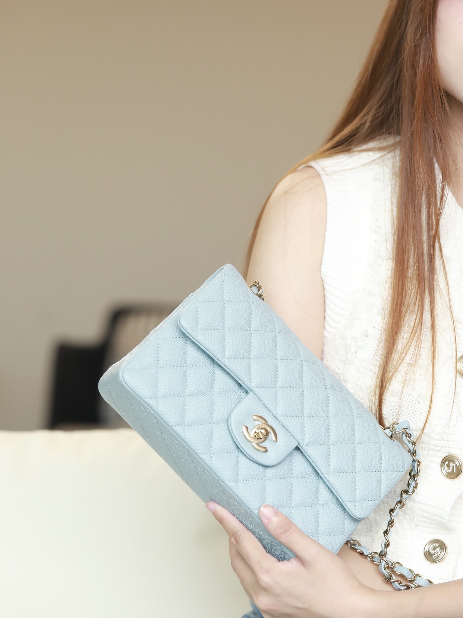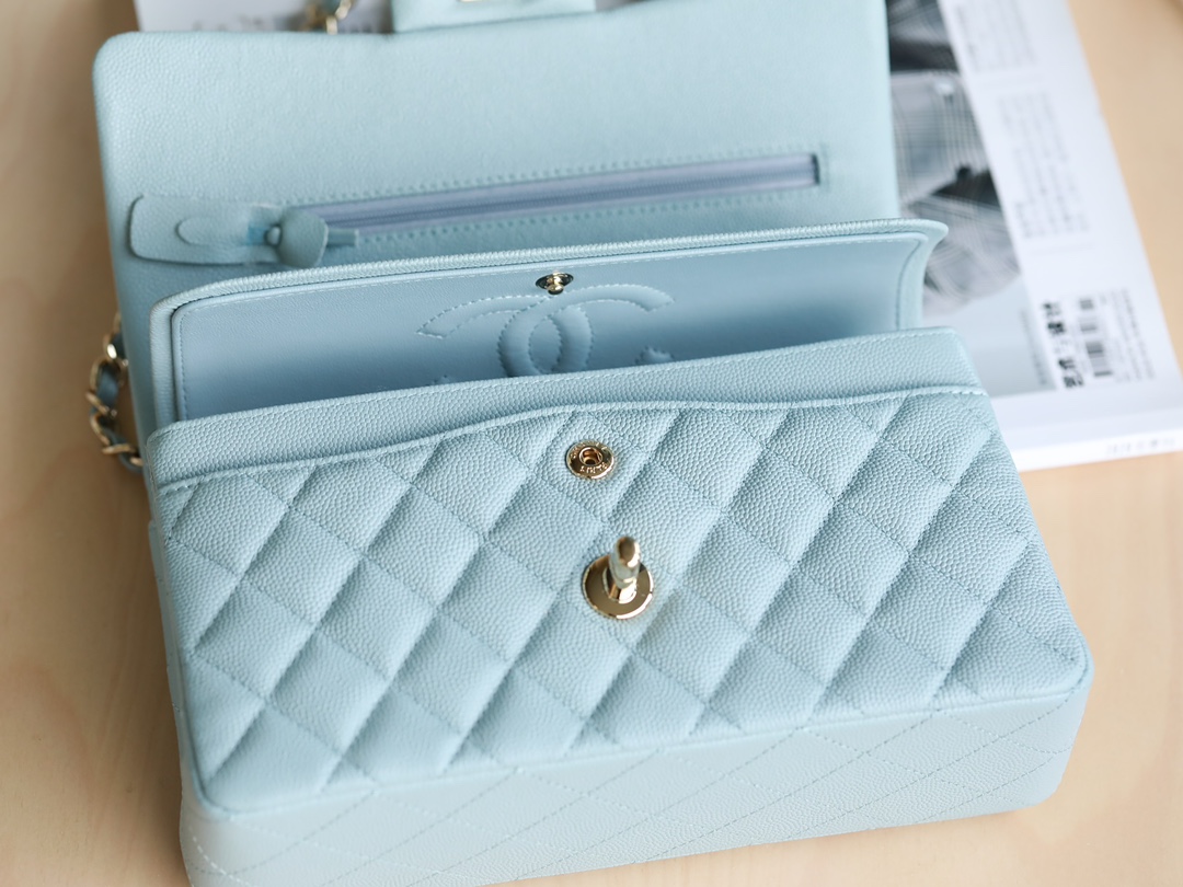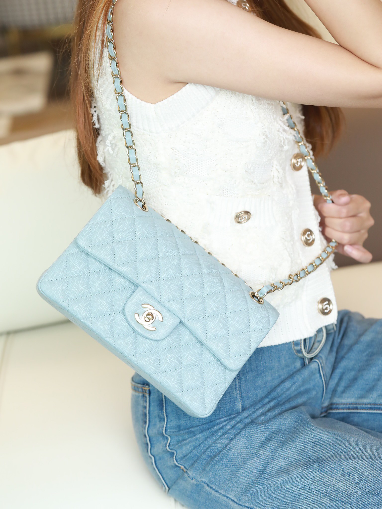• CHANEL Small Classic Double Flap baby blue Caviar Light Gold Hardware