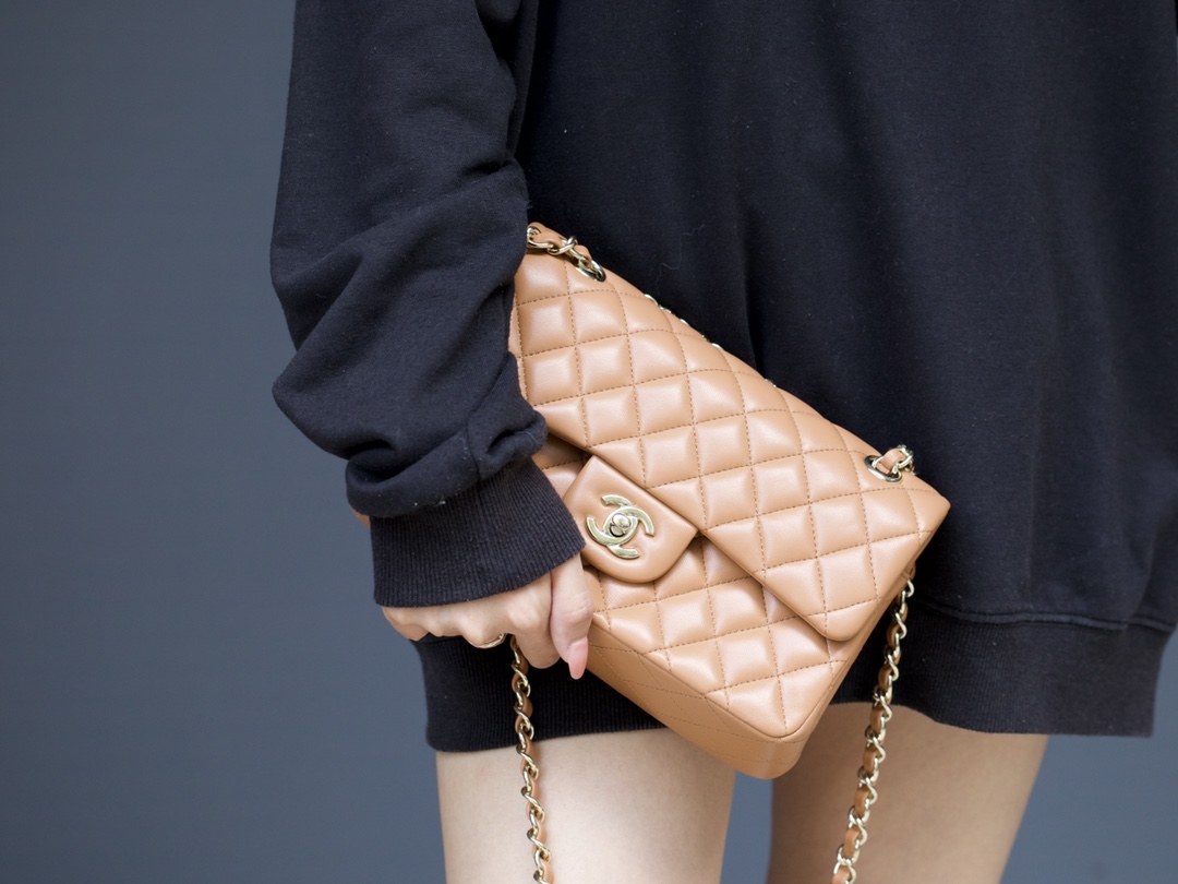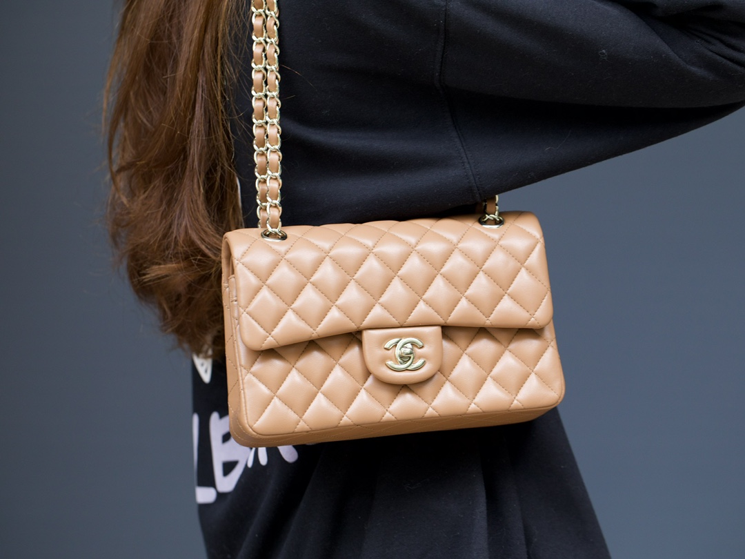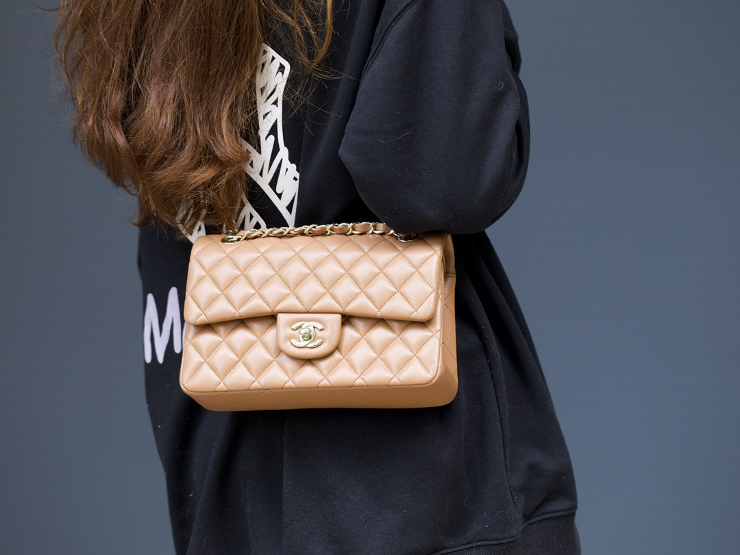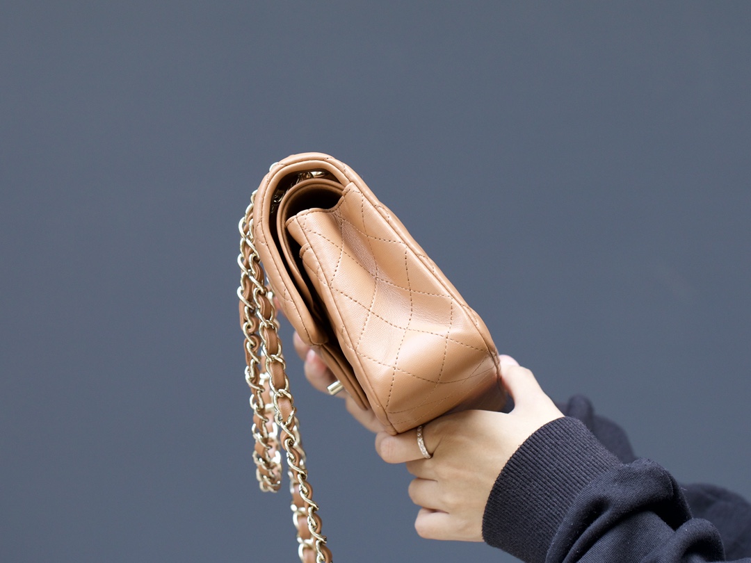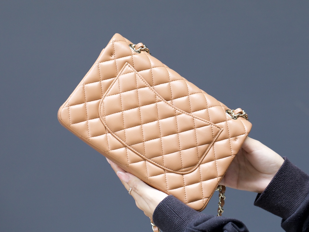 • CHANEL Small Classic Double Flap Caramel Lambskin Gold Hardware