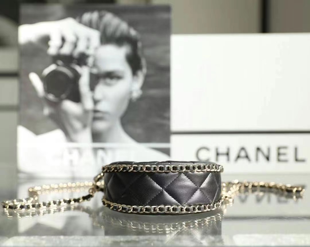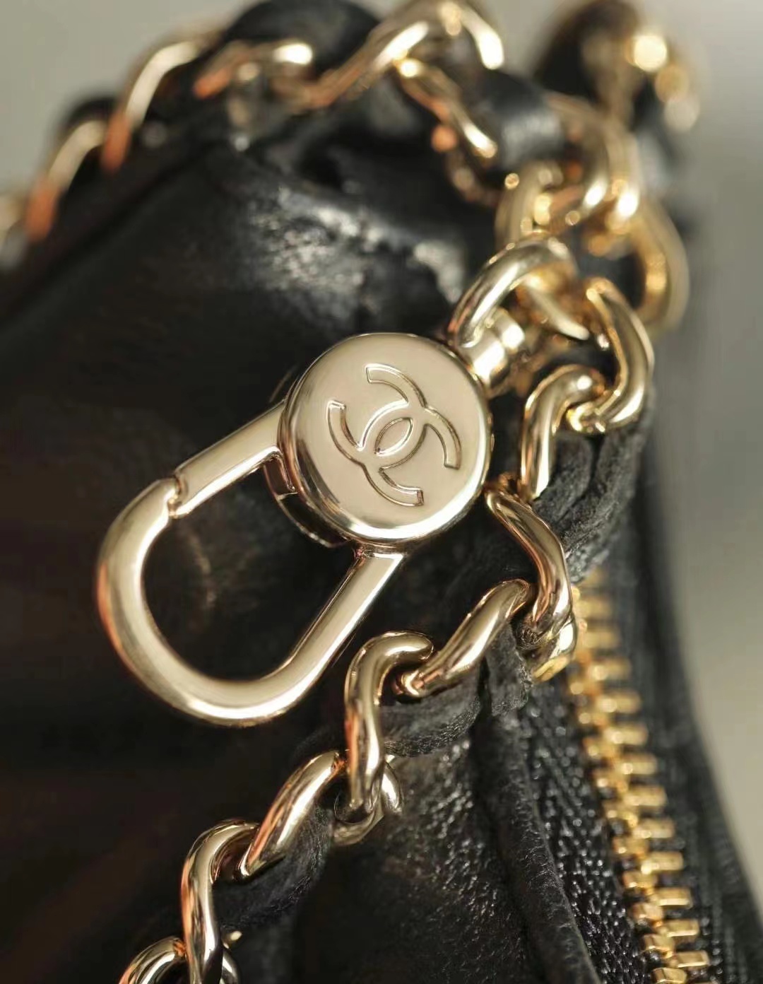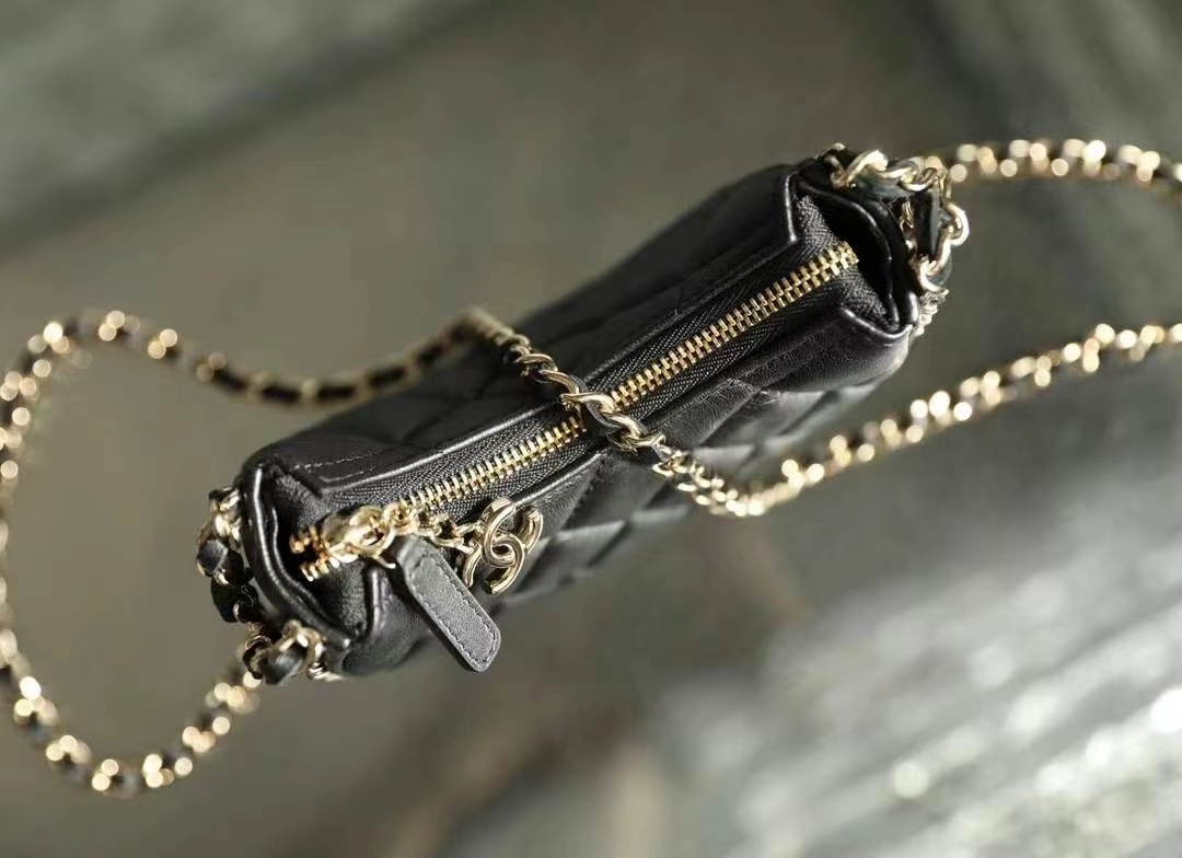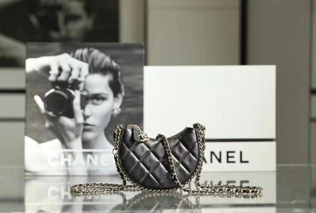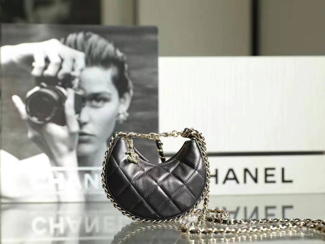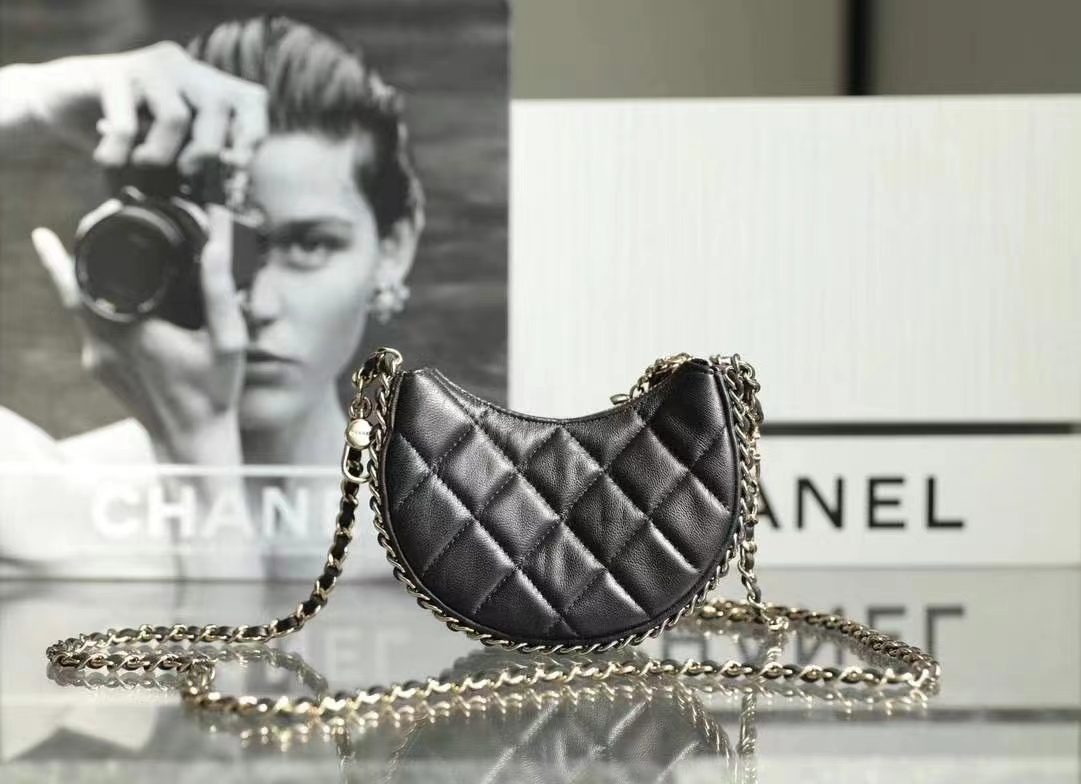 • Chanel Small Hobo Bag Lambskin & Shiny Light Gold Metal black
