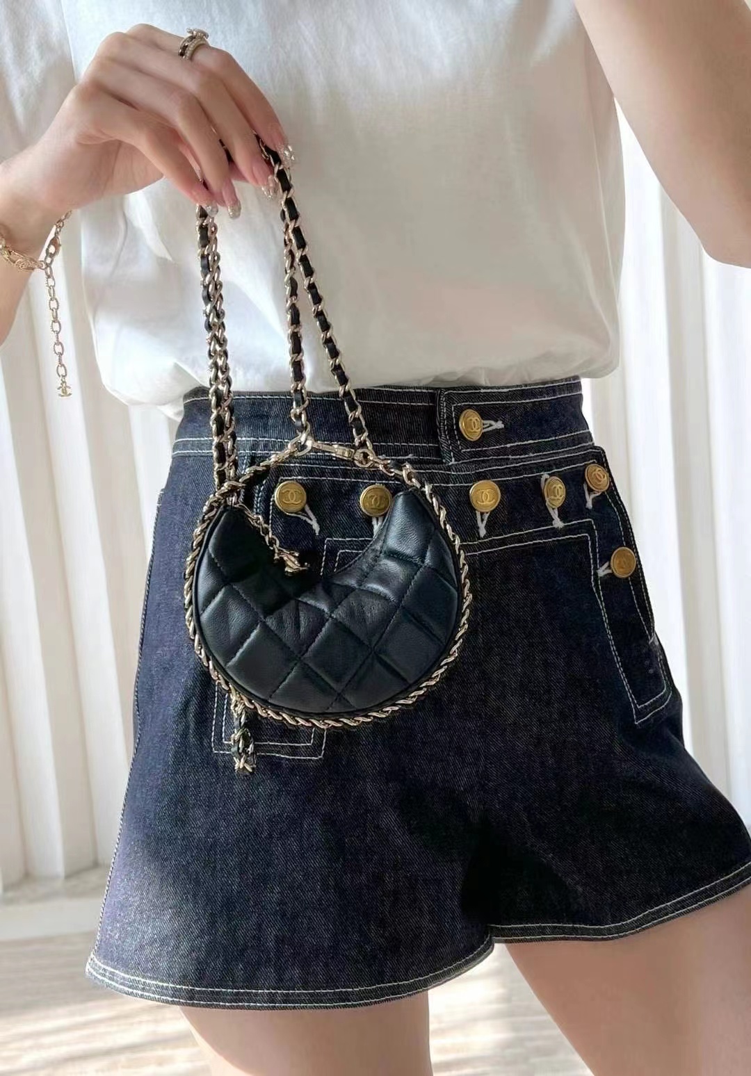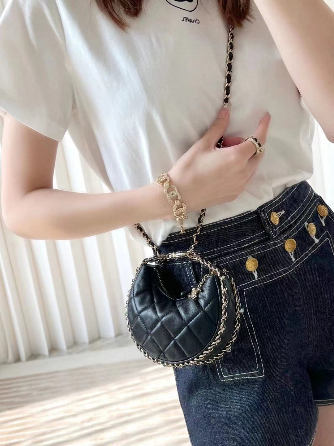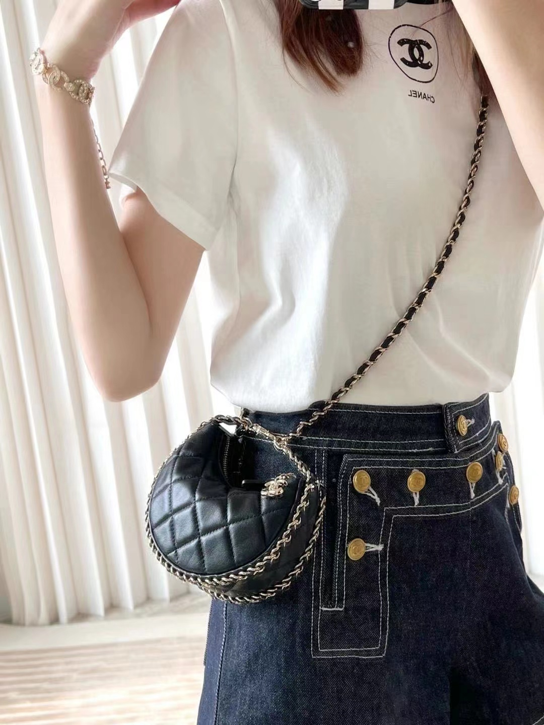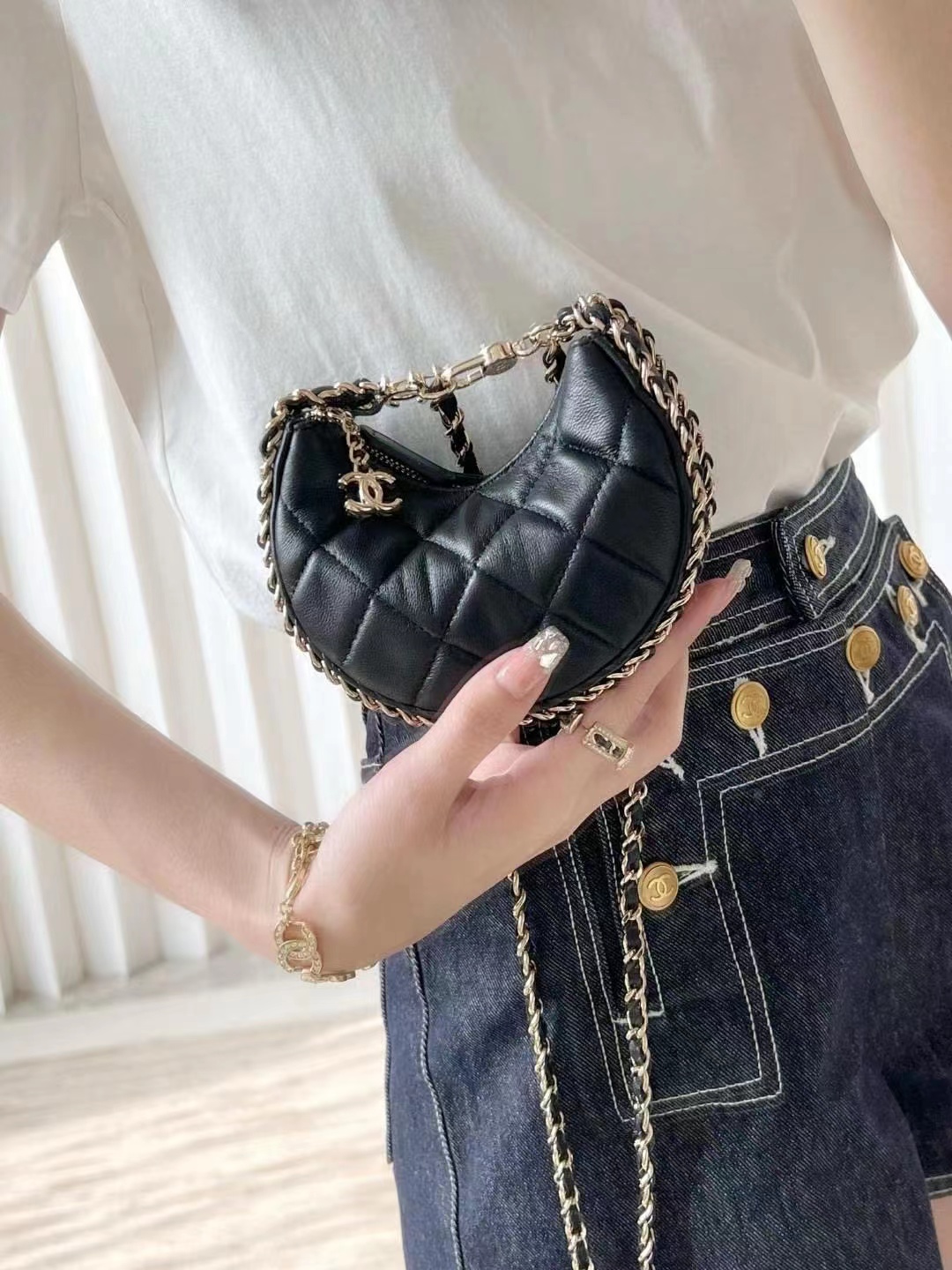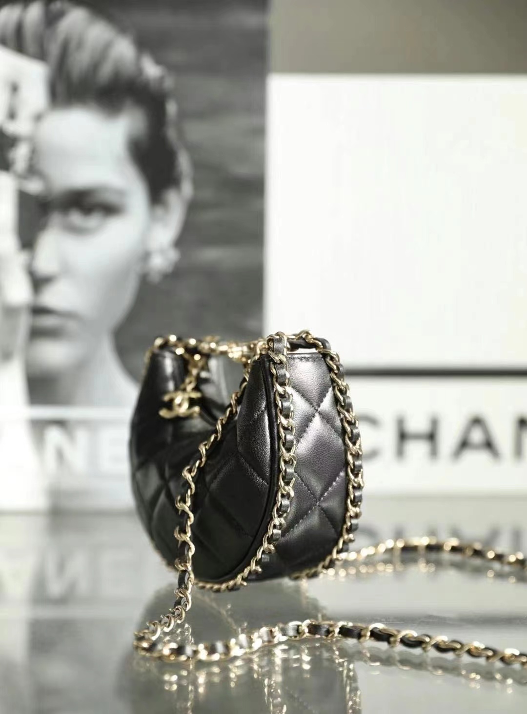 • Chanel Small Hobo Bag Lambskin & Shiny Light Gold Metal black
