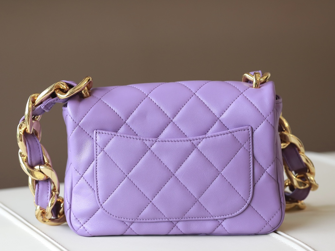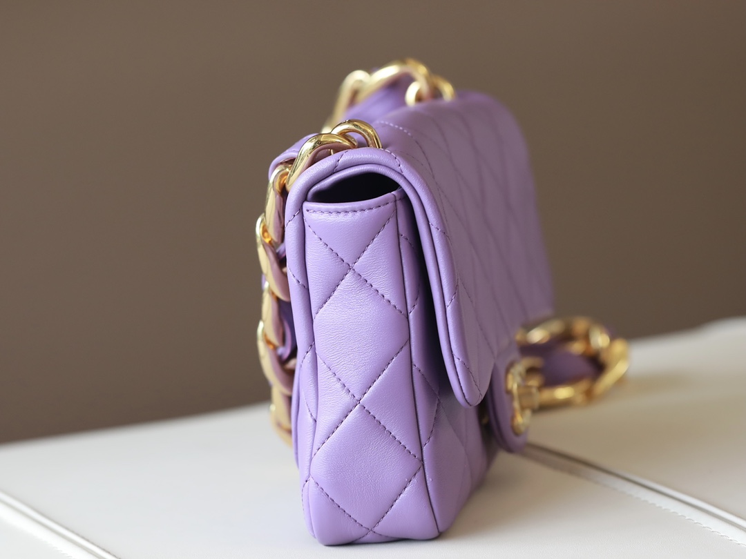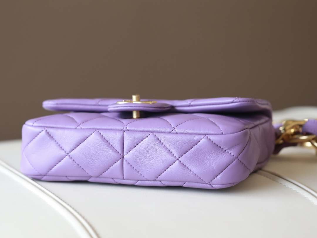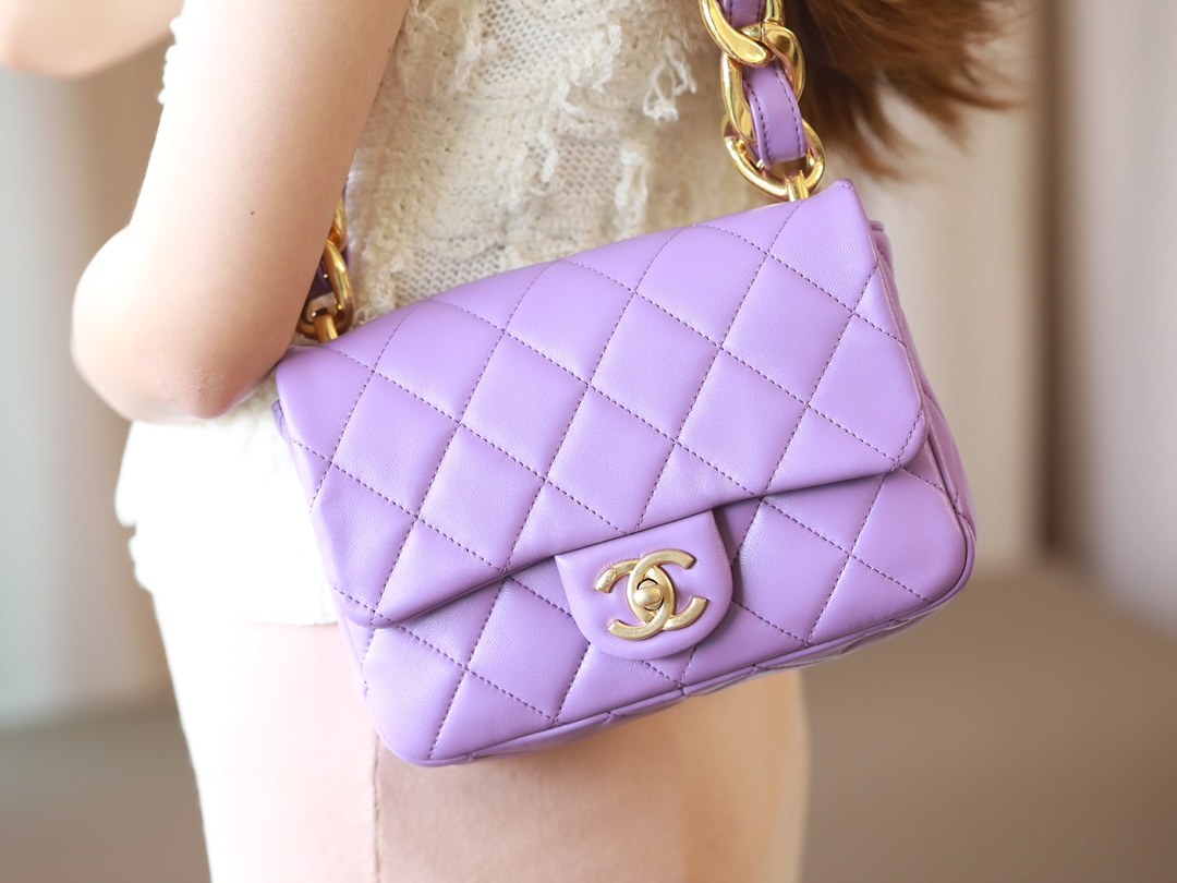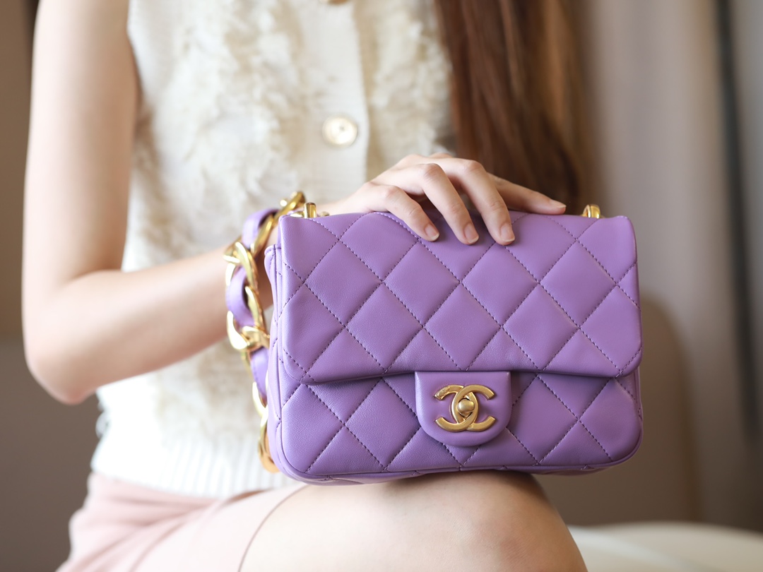 • CHANEL Small large chain retro egg messenger bag Lambskin Purple
