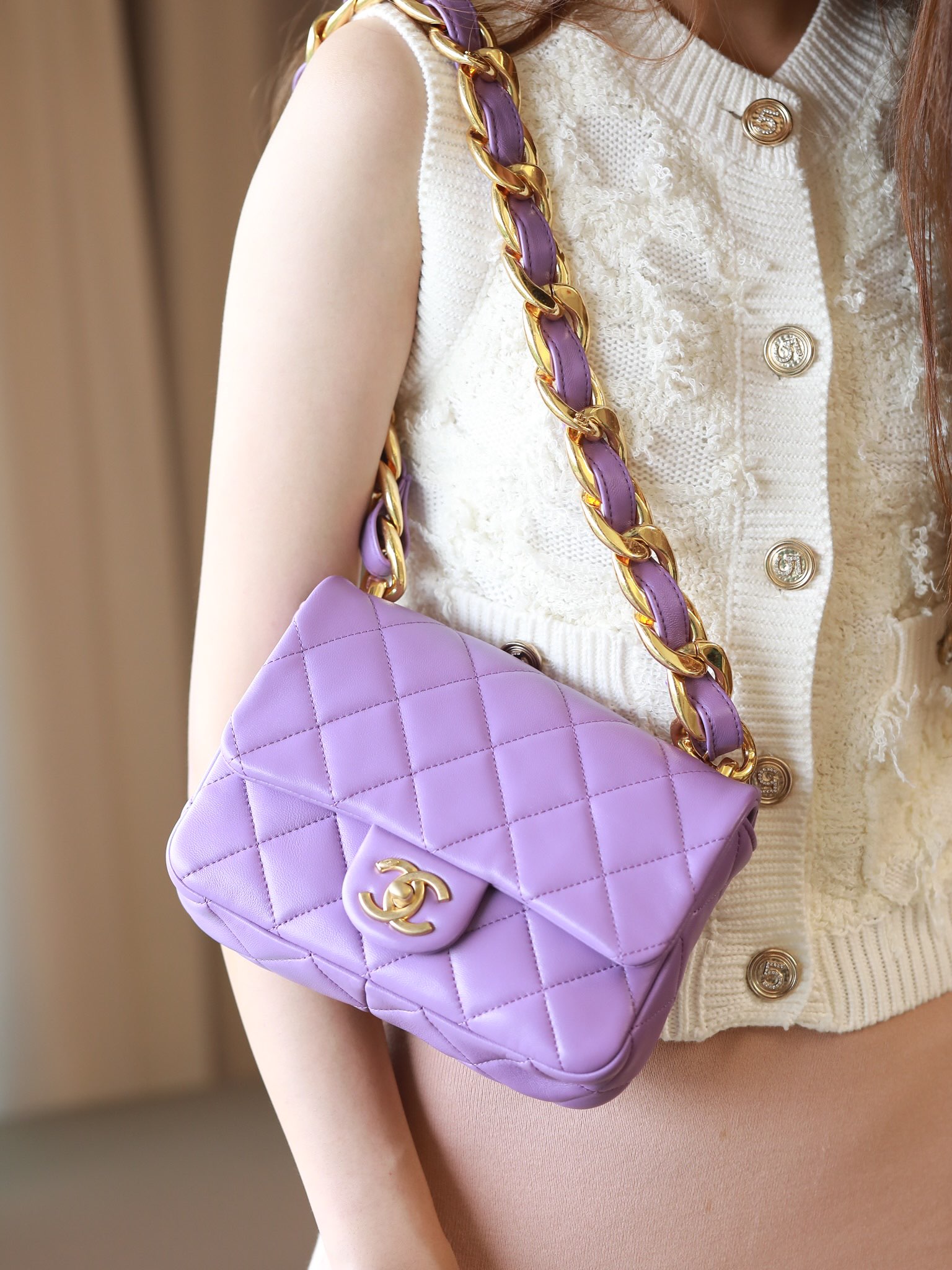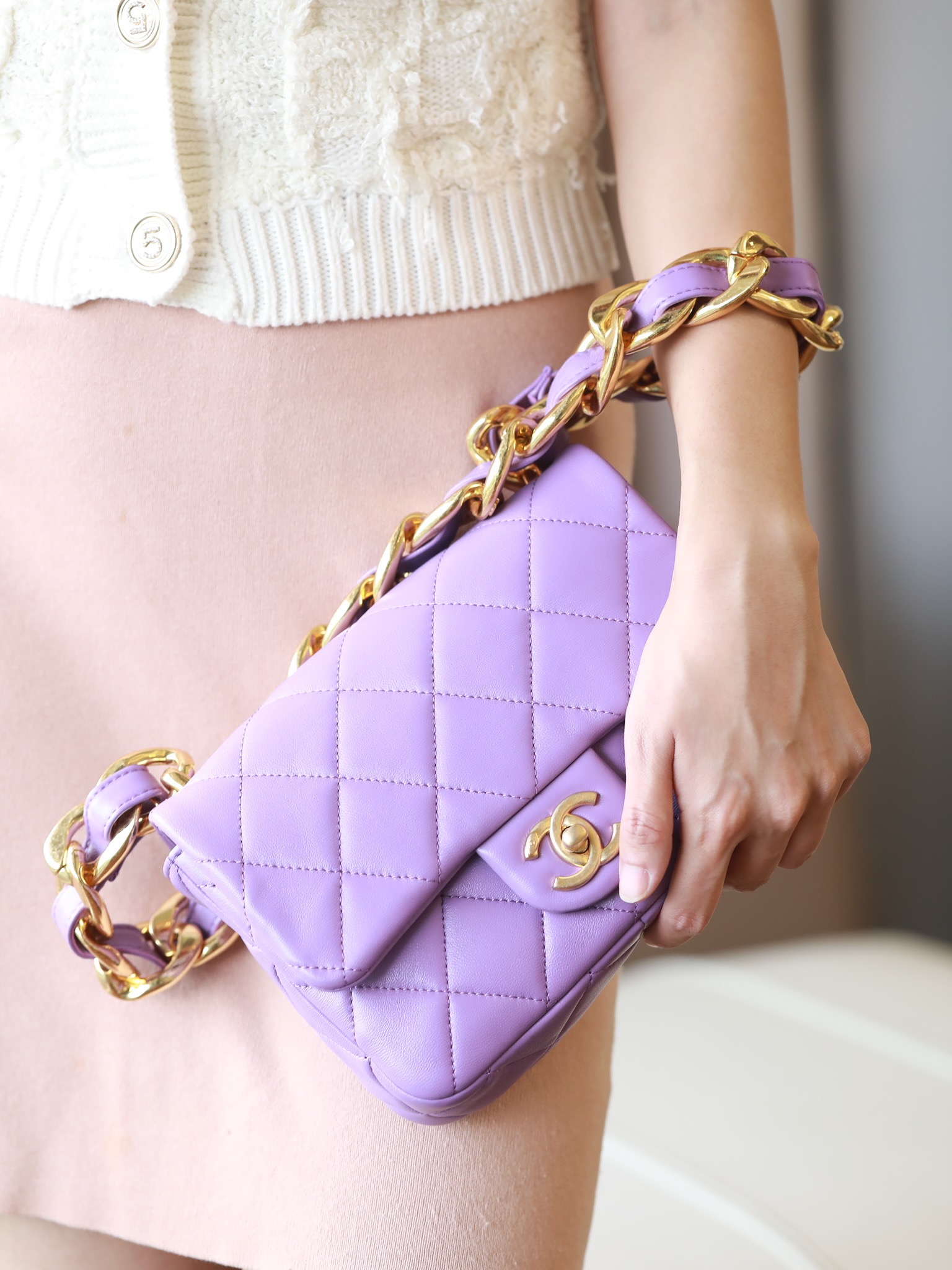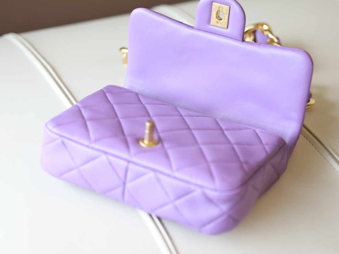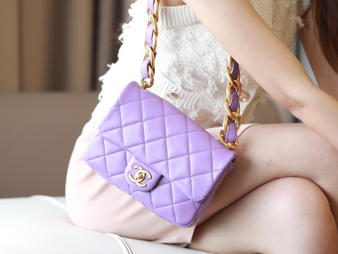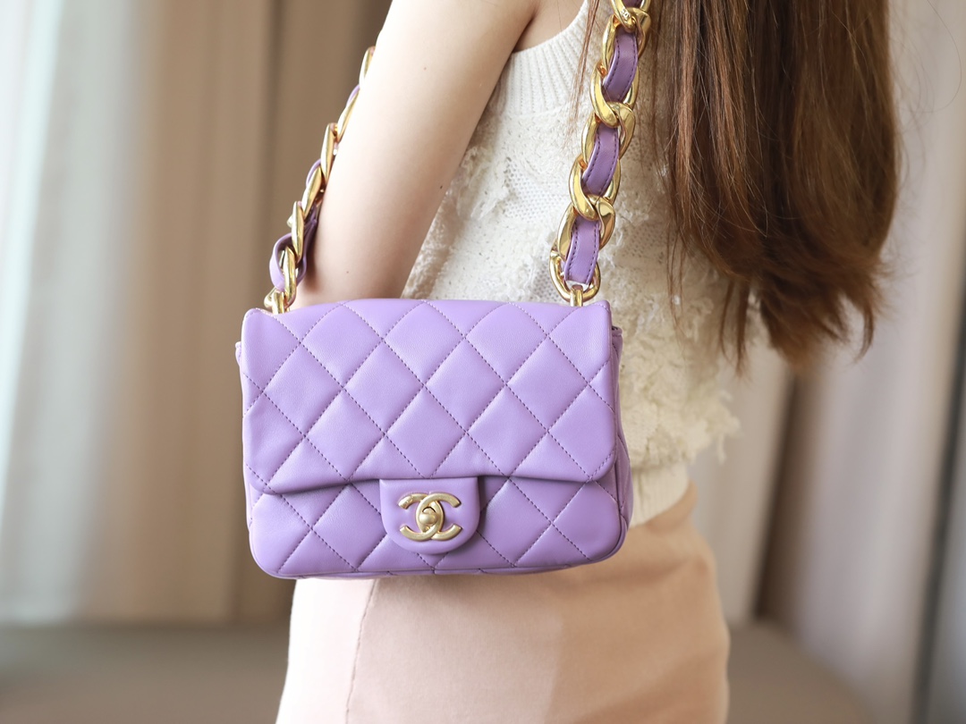 • CHANEL Small large chain retro egg messenger bag Lambskin Purple
