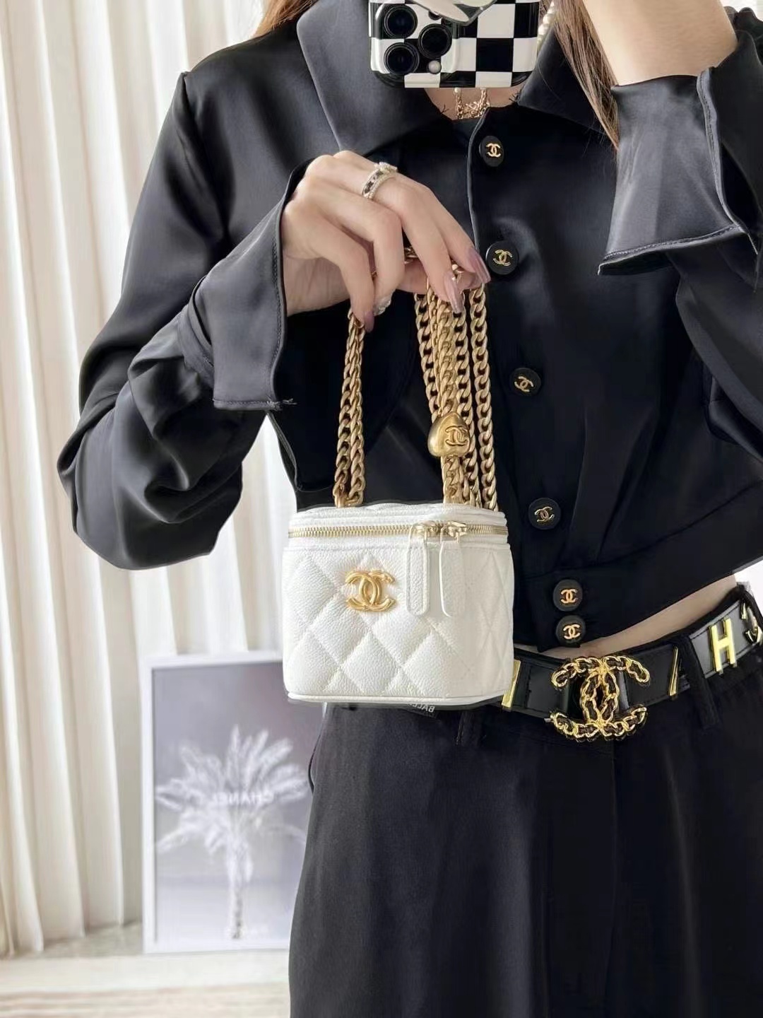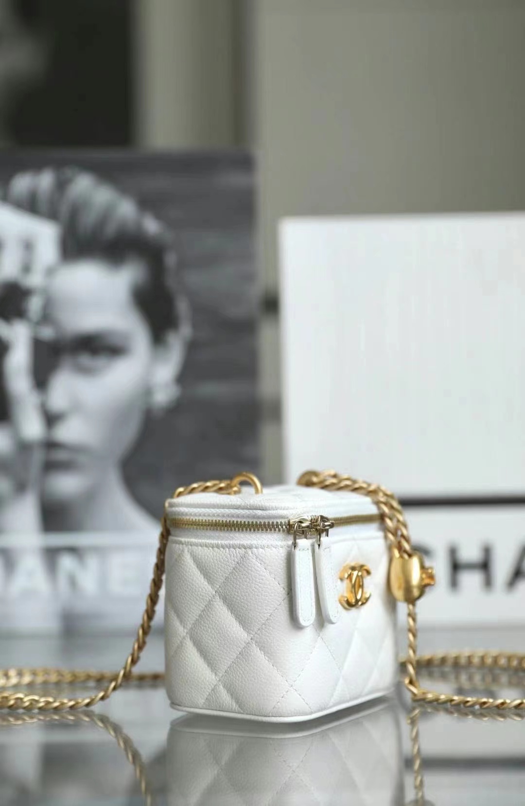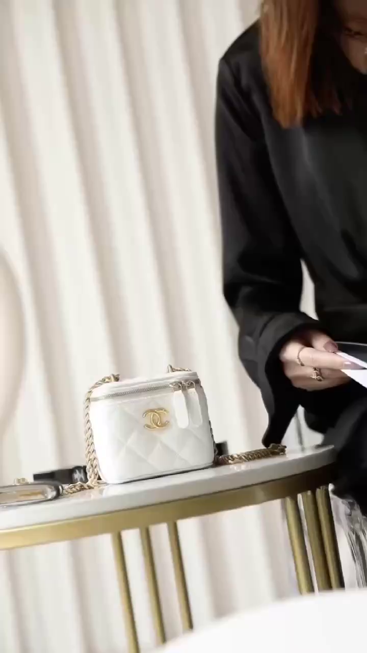 • Chanel Small Vanity Case Lambskin & Gold-Tone Metal Light Blue