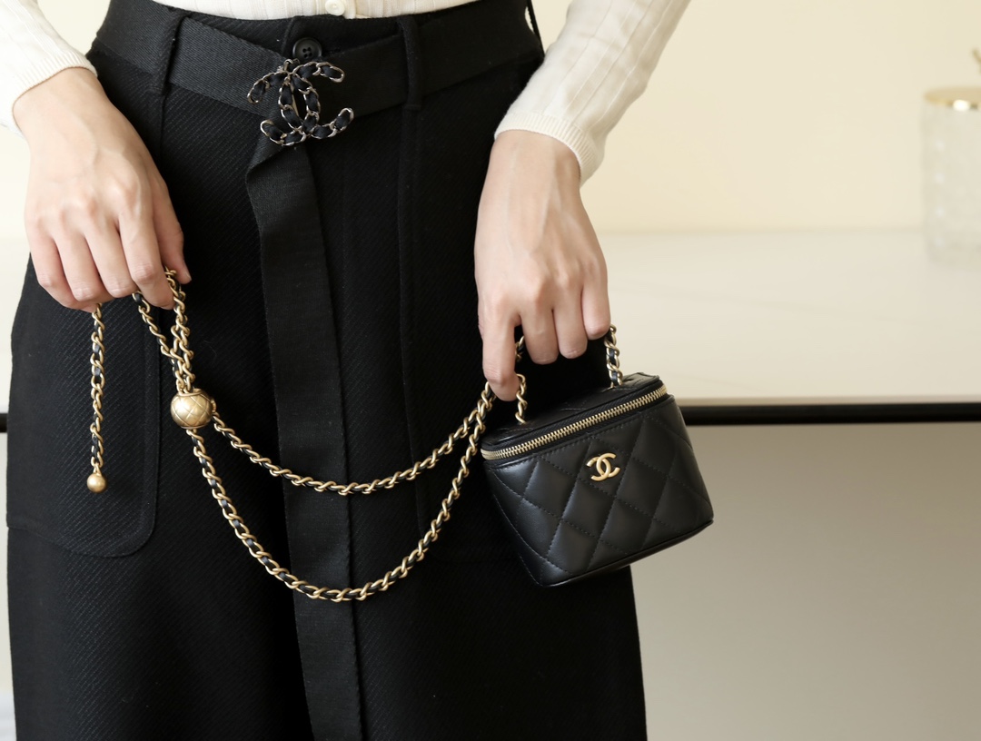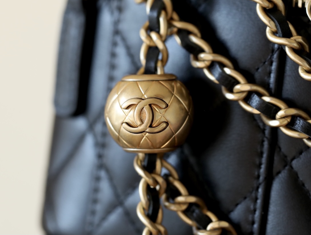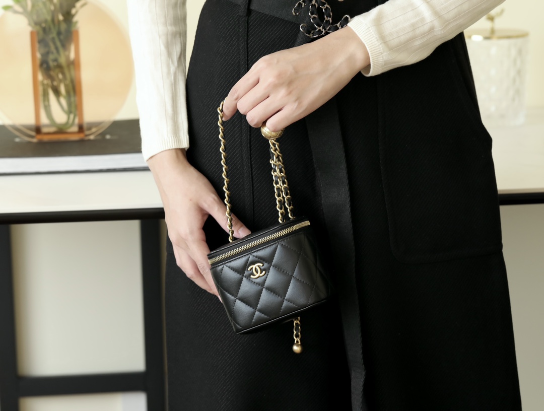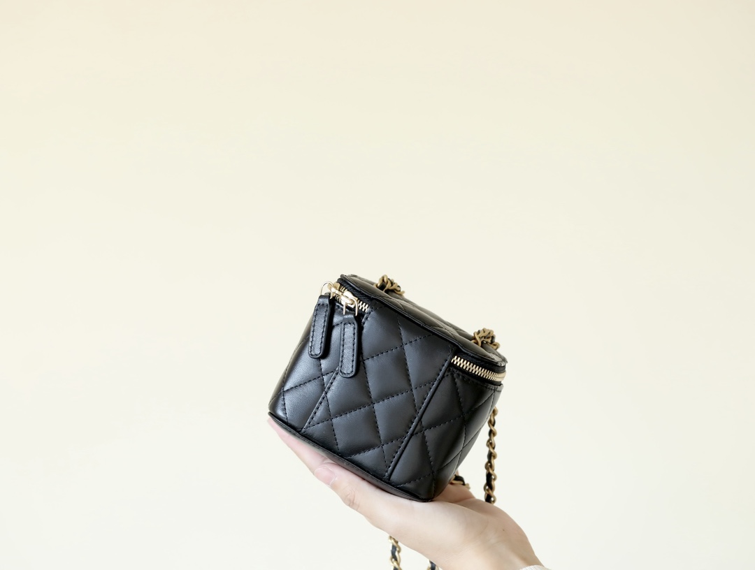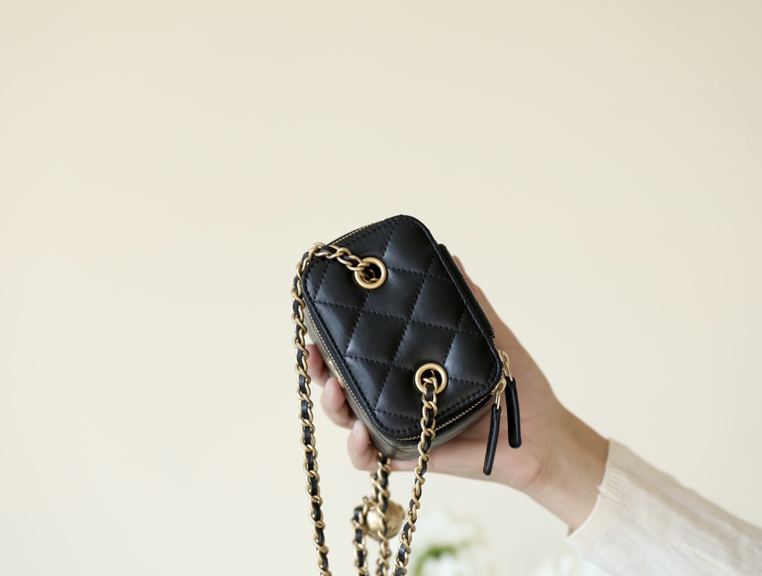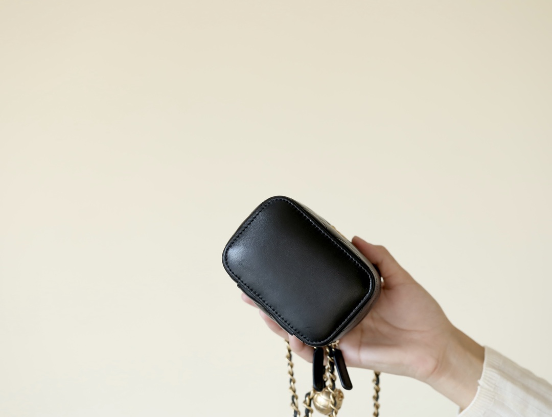 • CHANEL Spring-Summer Mini Classic Box With Gold Ball Lambskin black