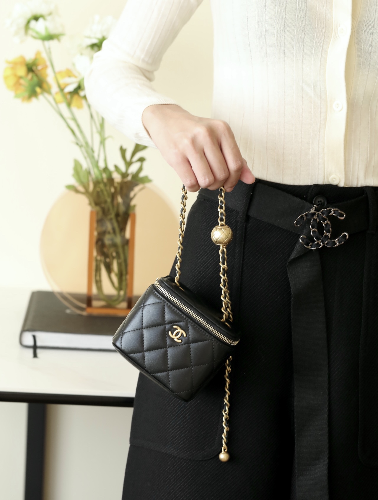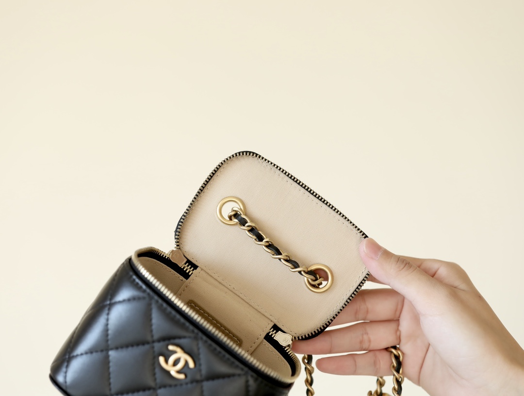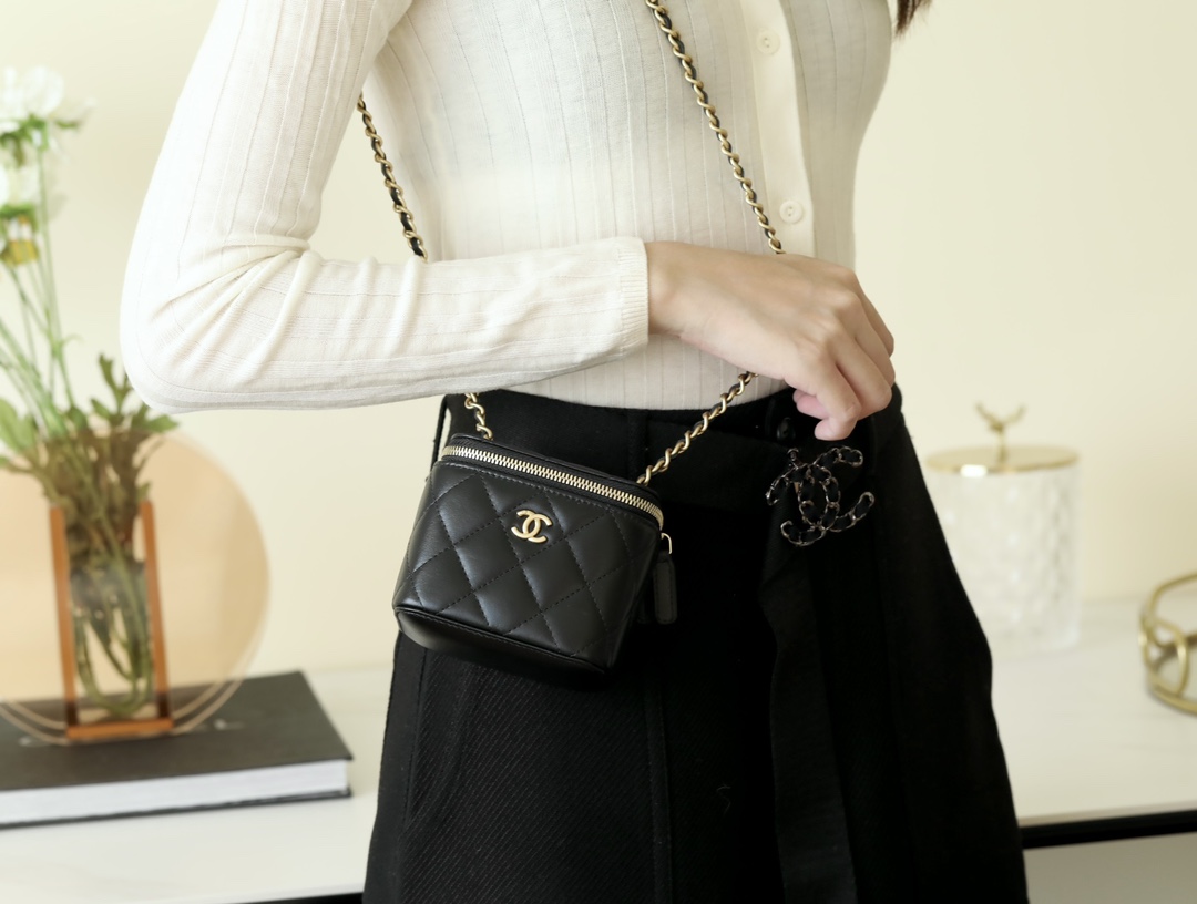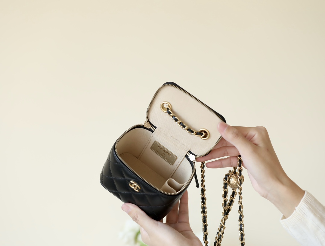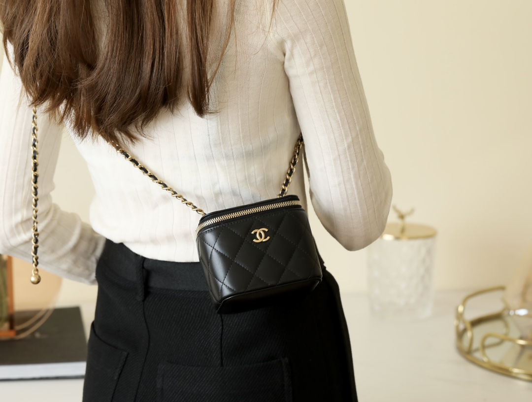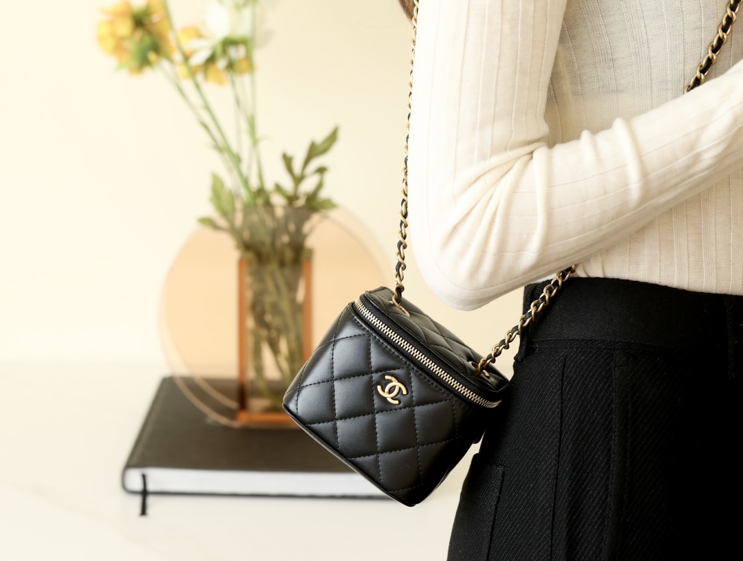 • CHANEL Spring-Summer Mini Classic Box With Gold Ball Lambskin black