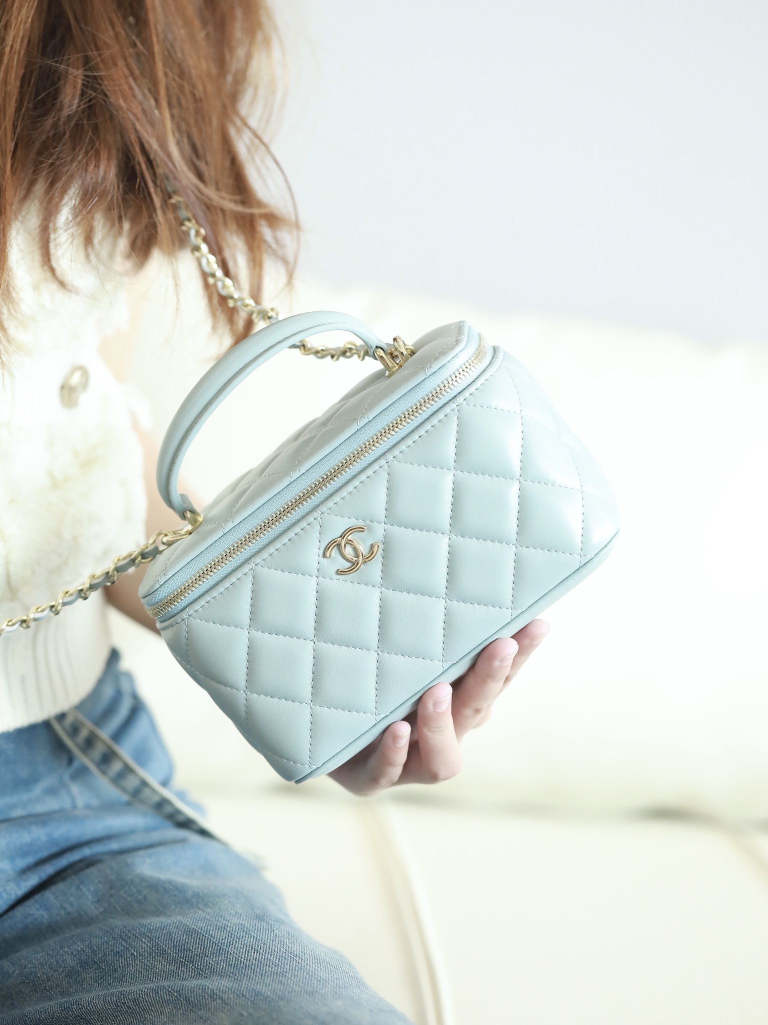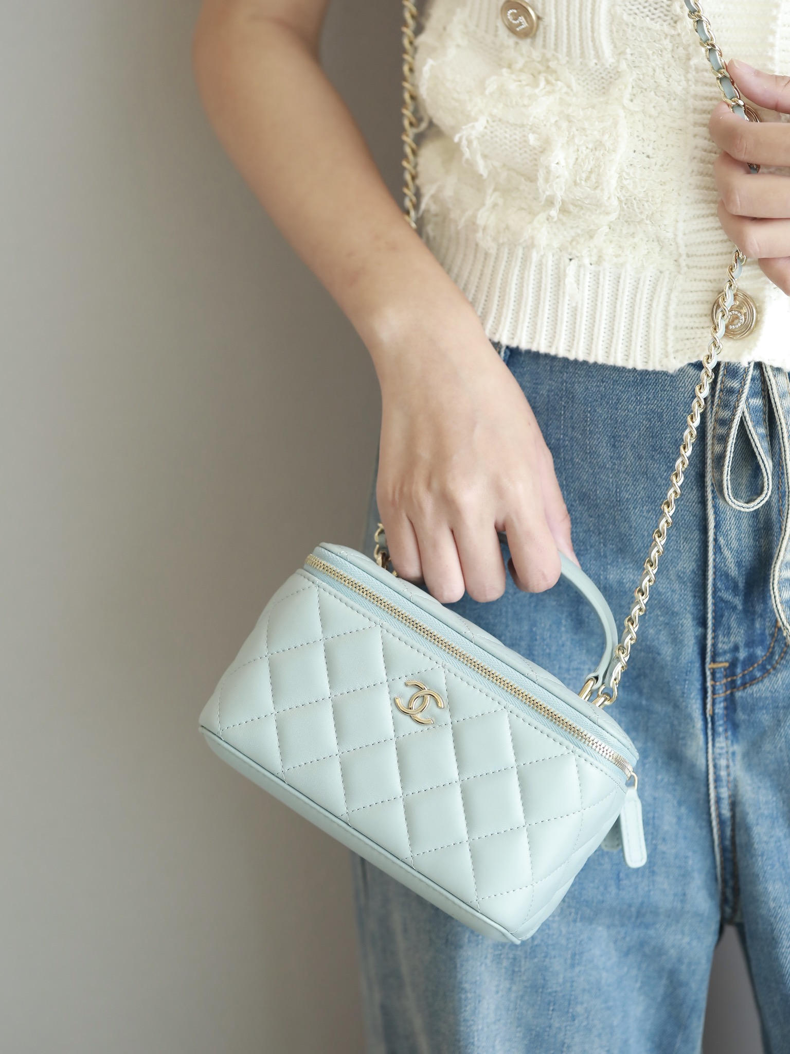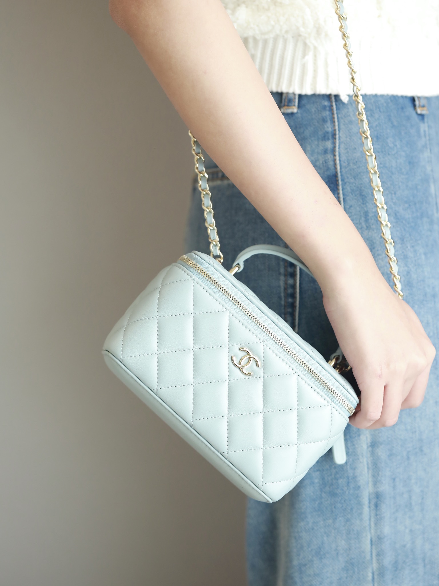 CHANEL Vanity Top Handle Bag Lambskin baby bule