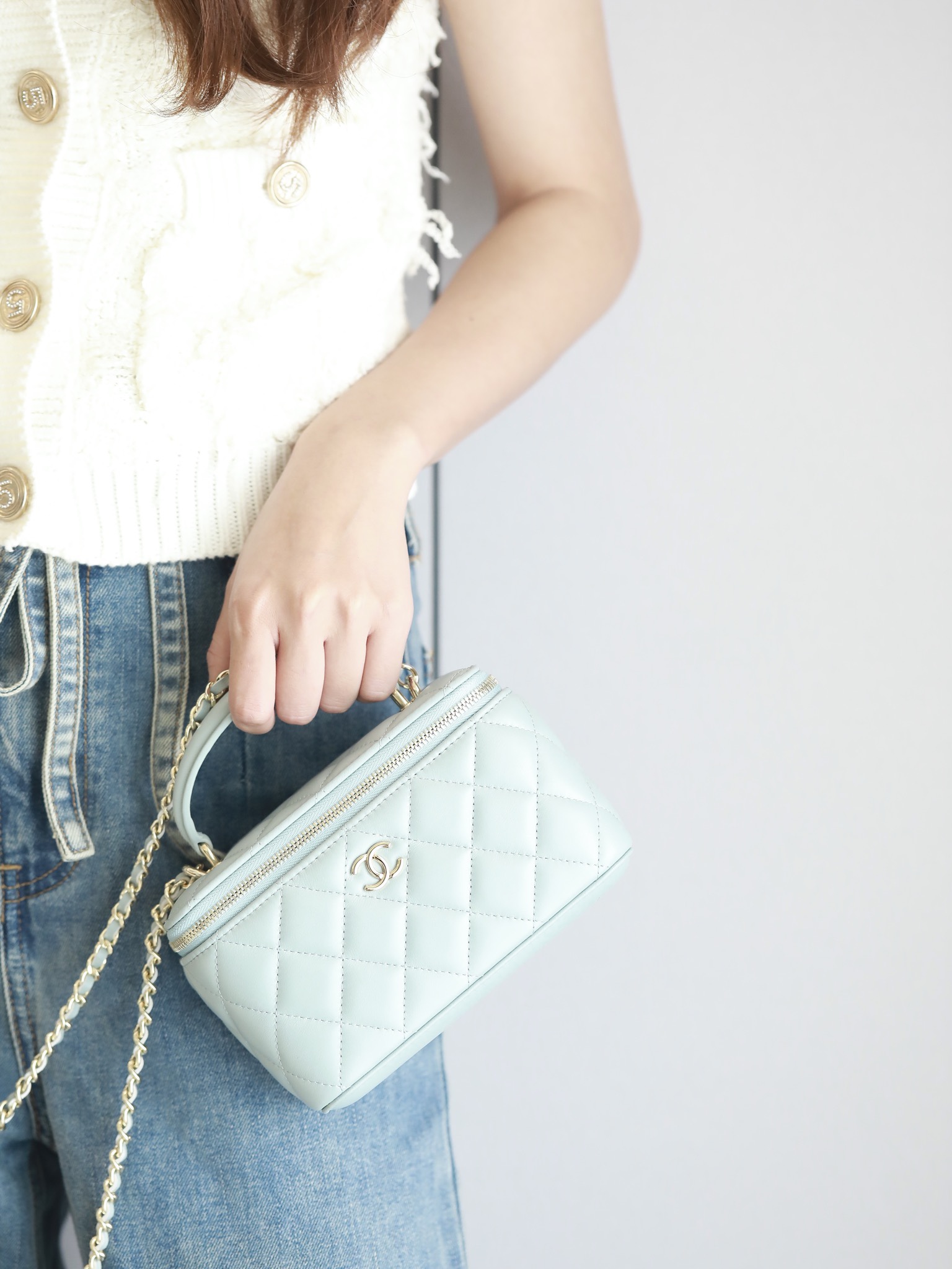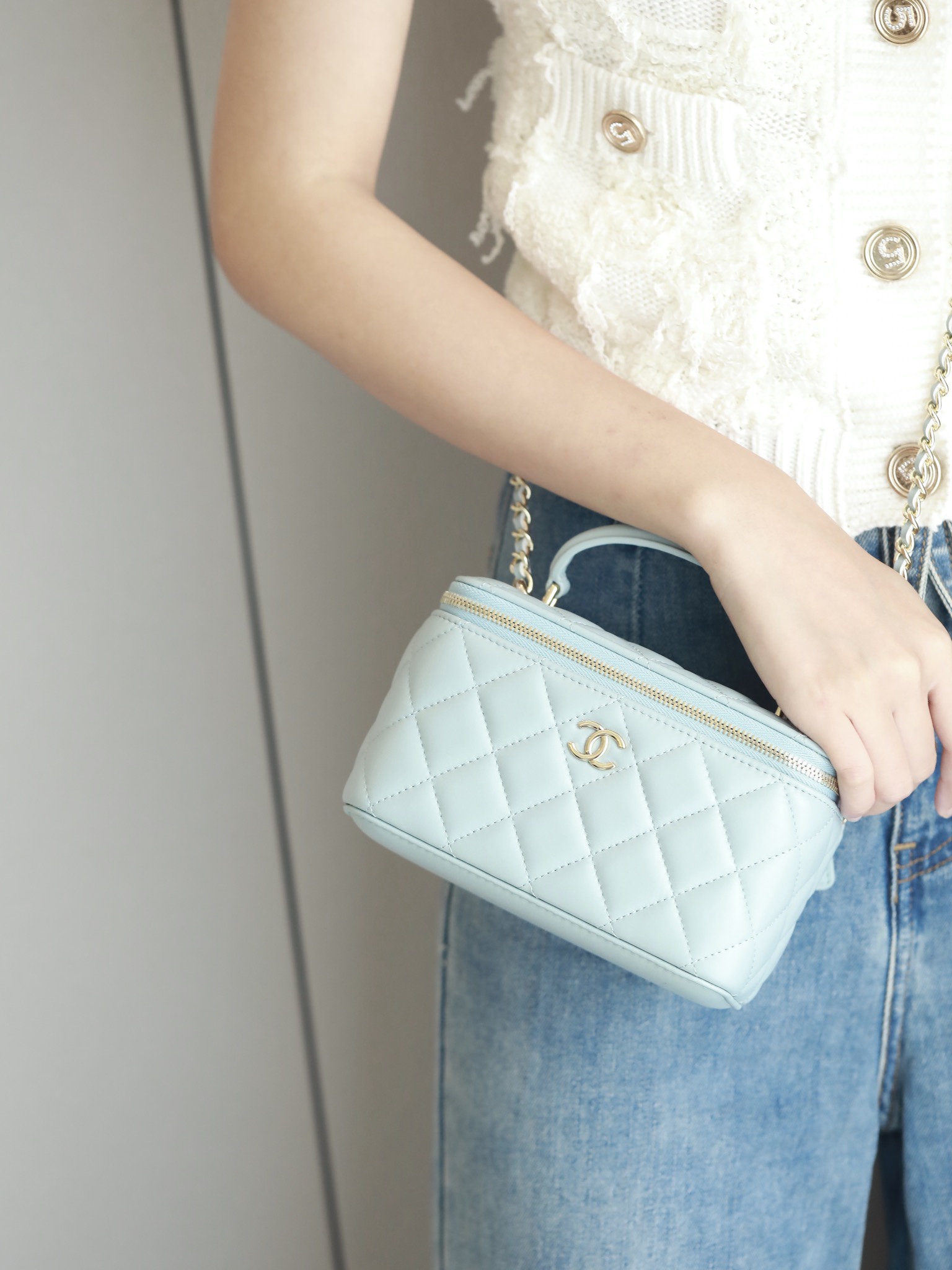 • CHANEL Vanity Top Handle Bag Lambskin baby bule