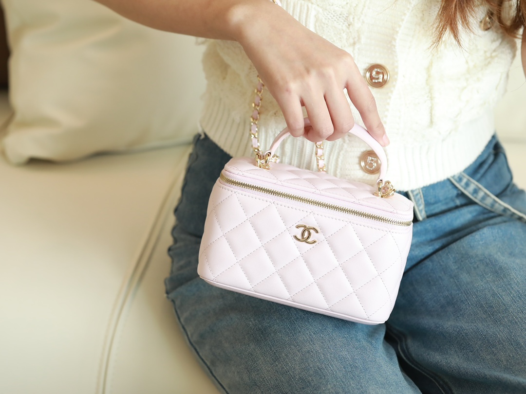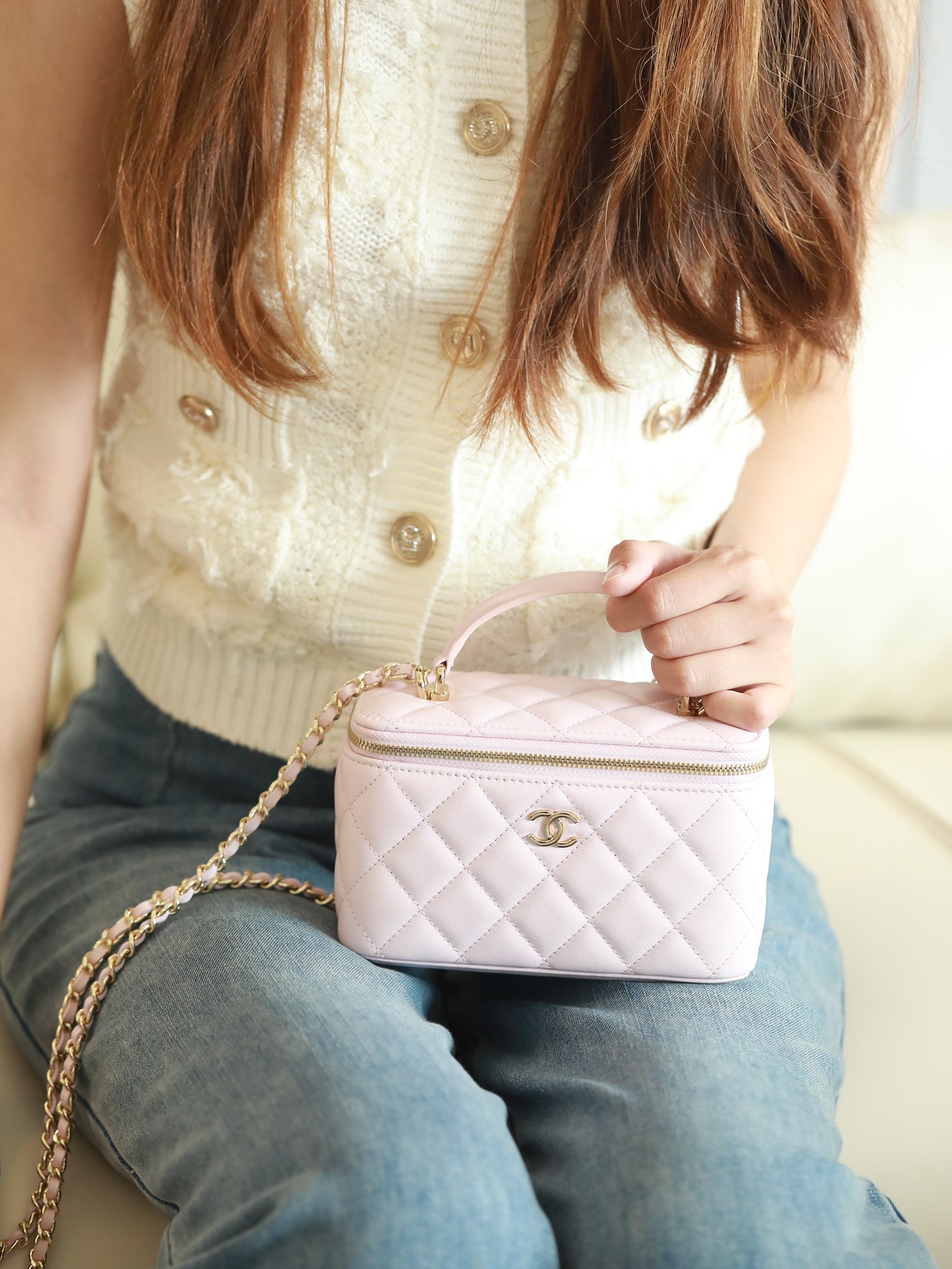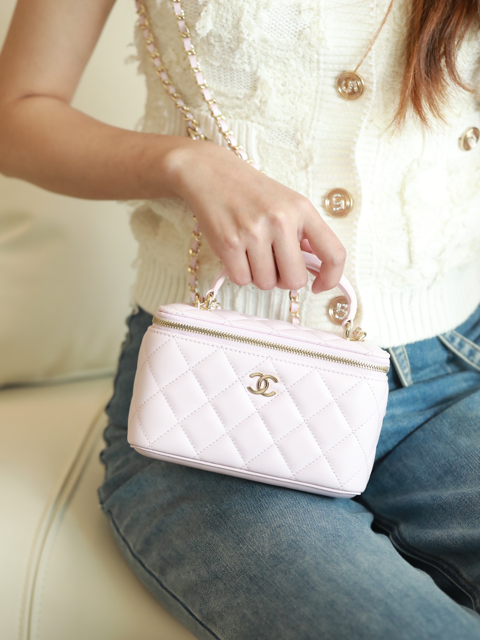 CHANEL Vanity Top Handle Bag Lambskin Pink