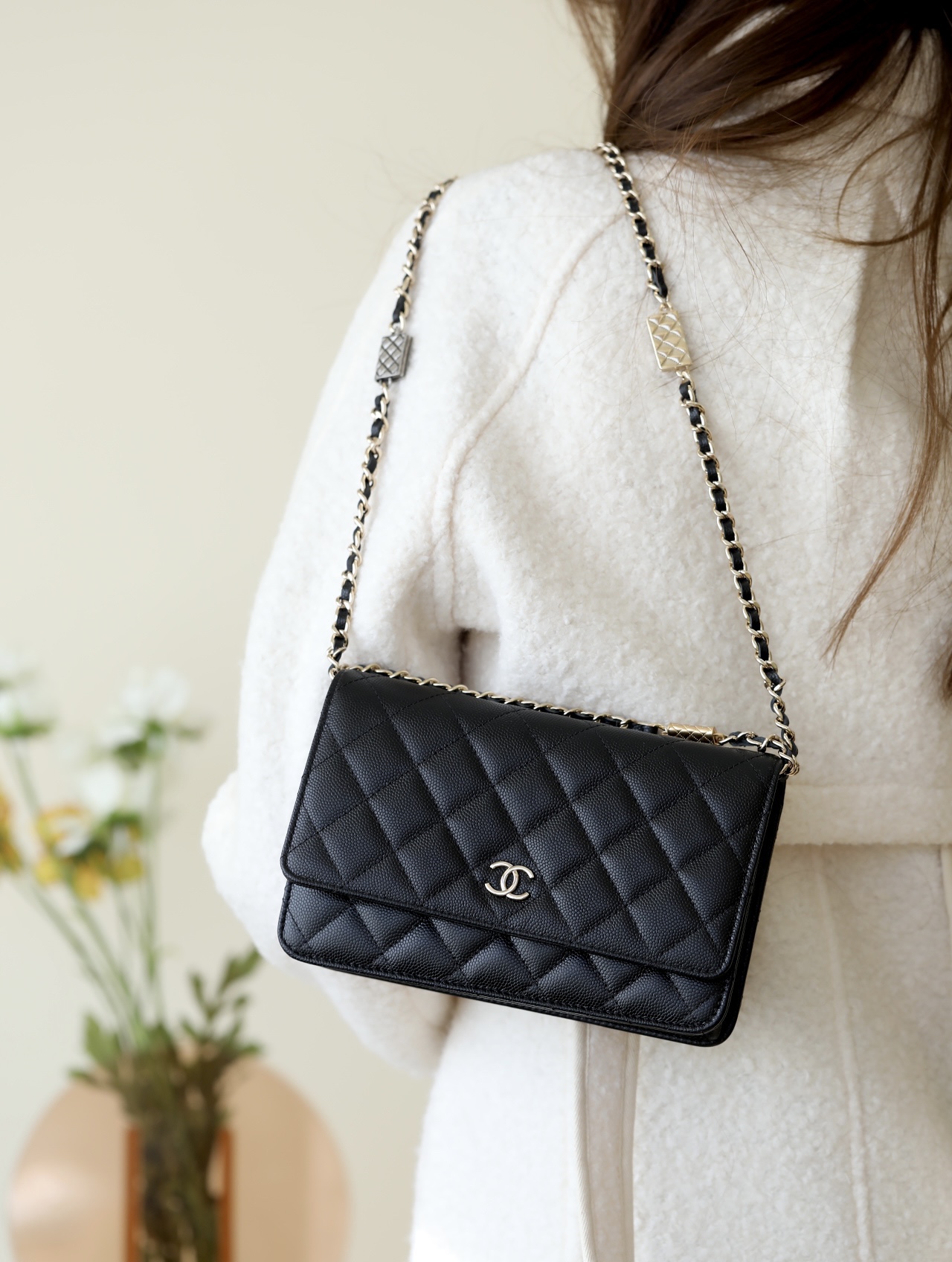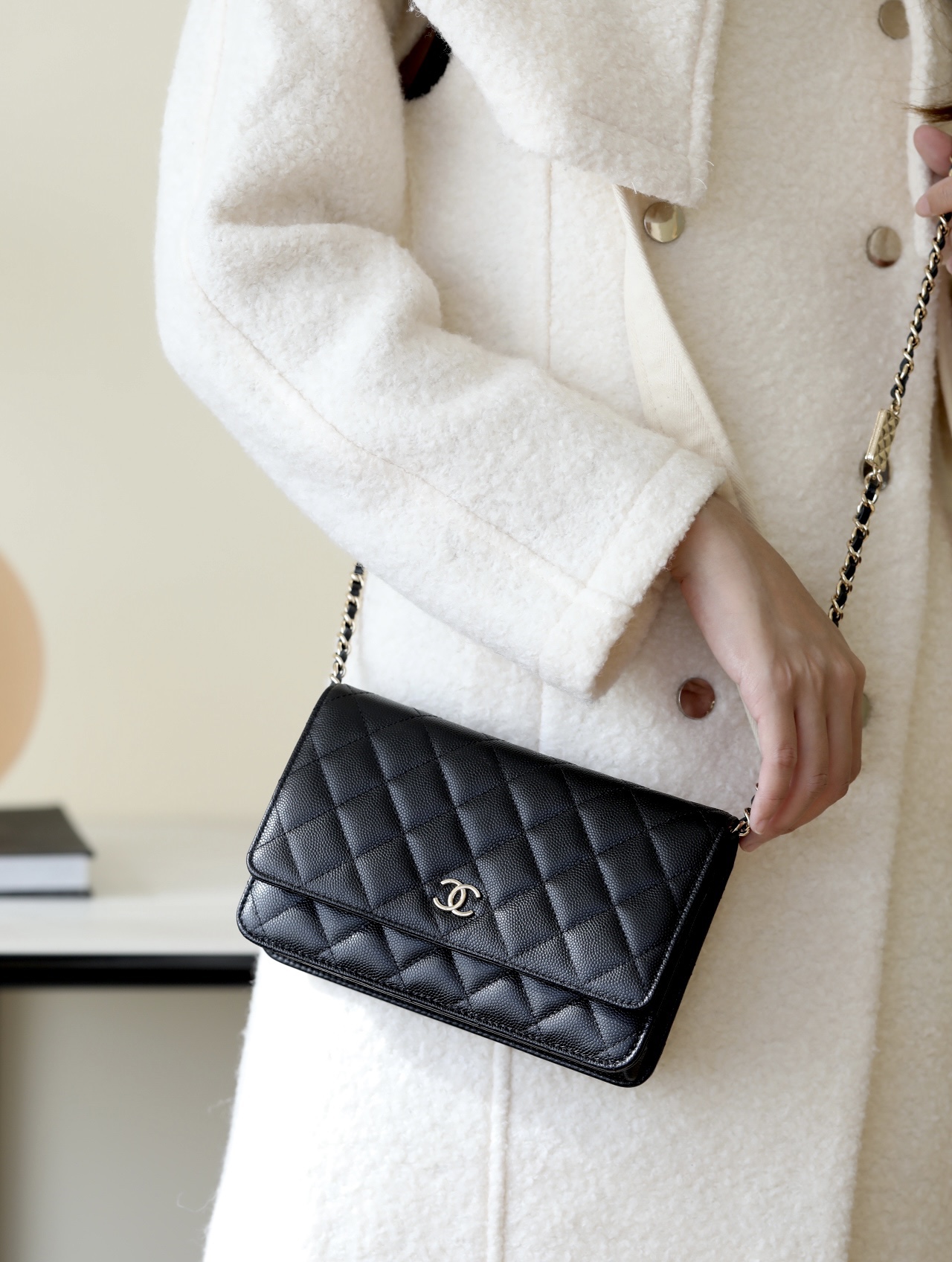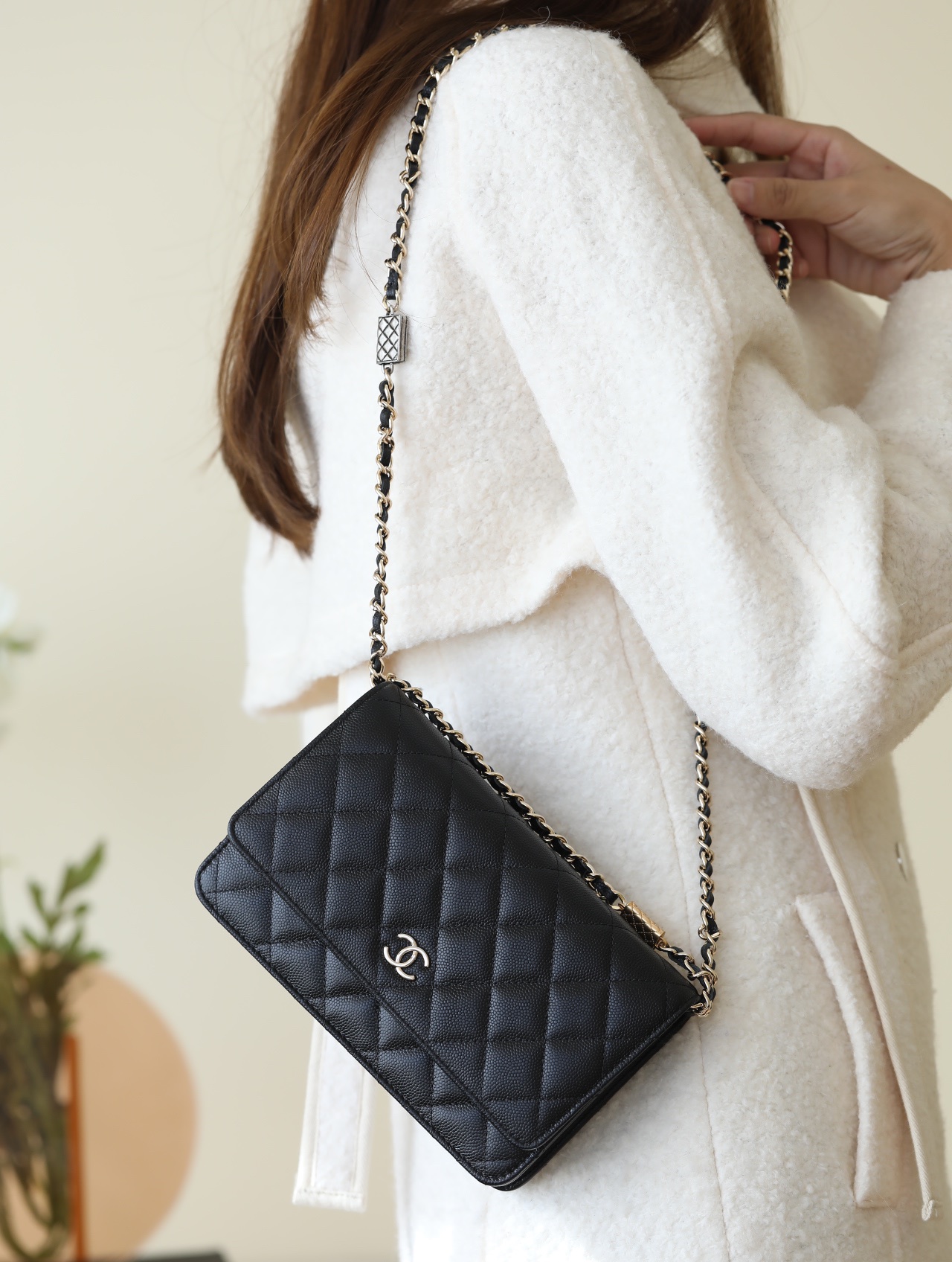 The latest dual-chain WOC is a must-have for travel, featuring an original Hass small ball and rare genuine leather from the factory. Combined with a unique design chain, it gives a refreshing feeling.
