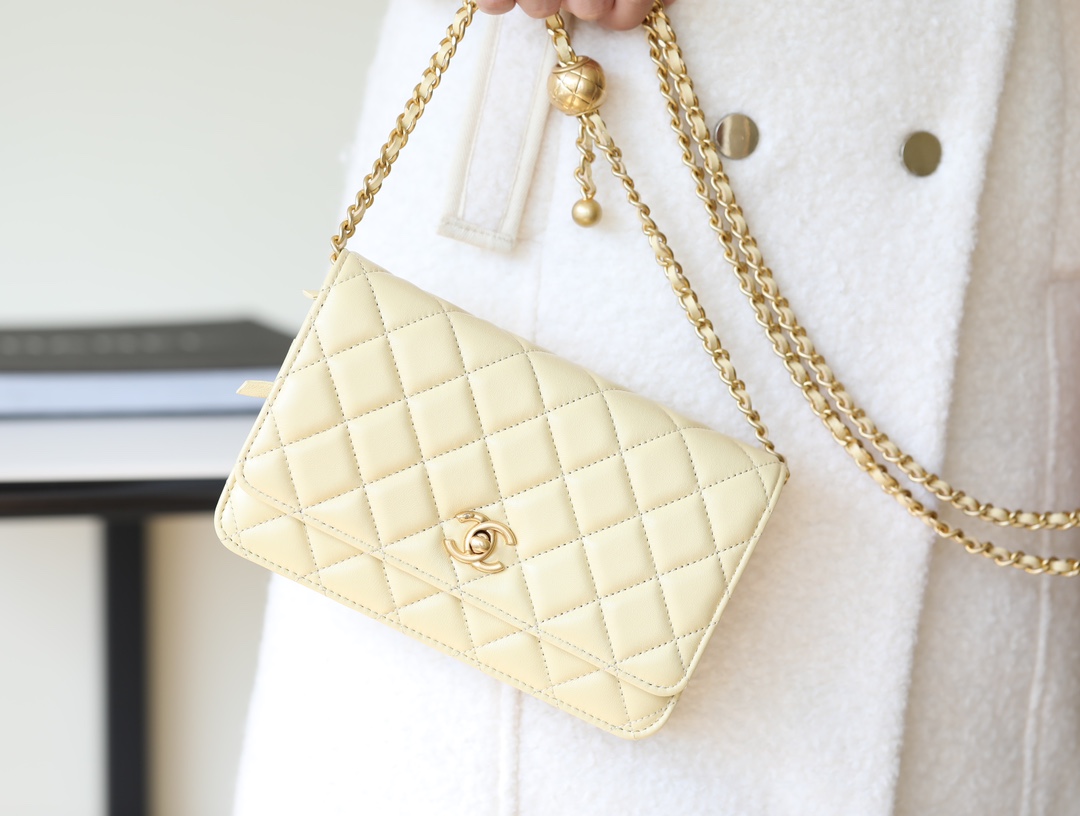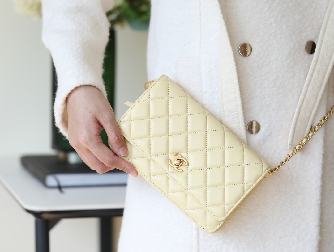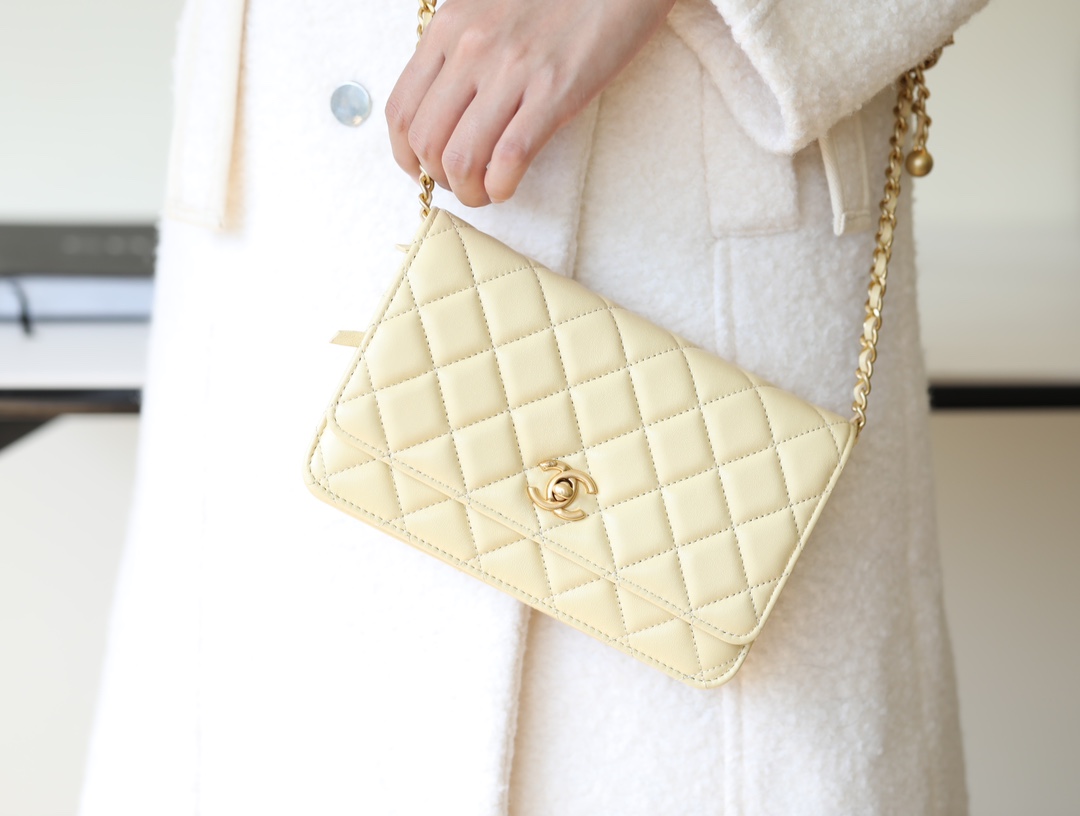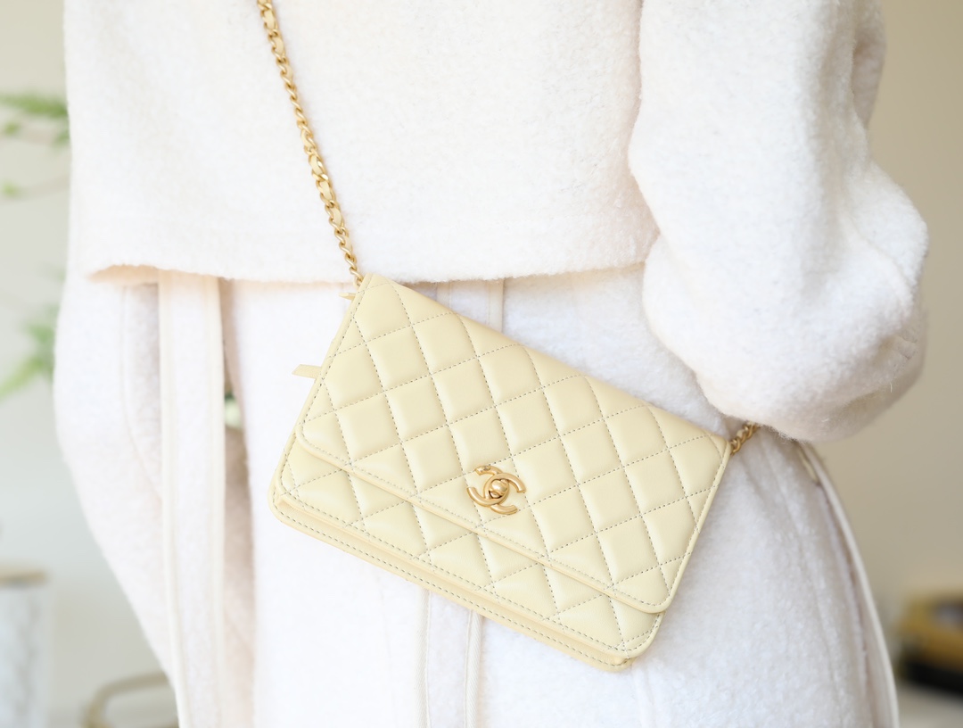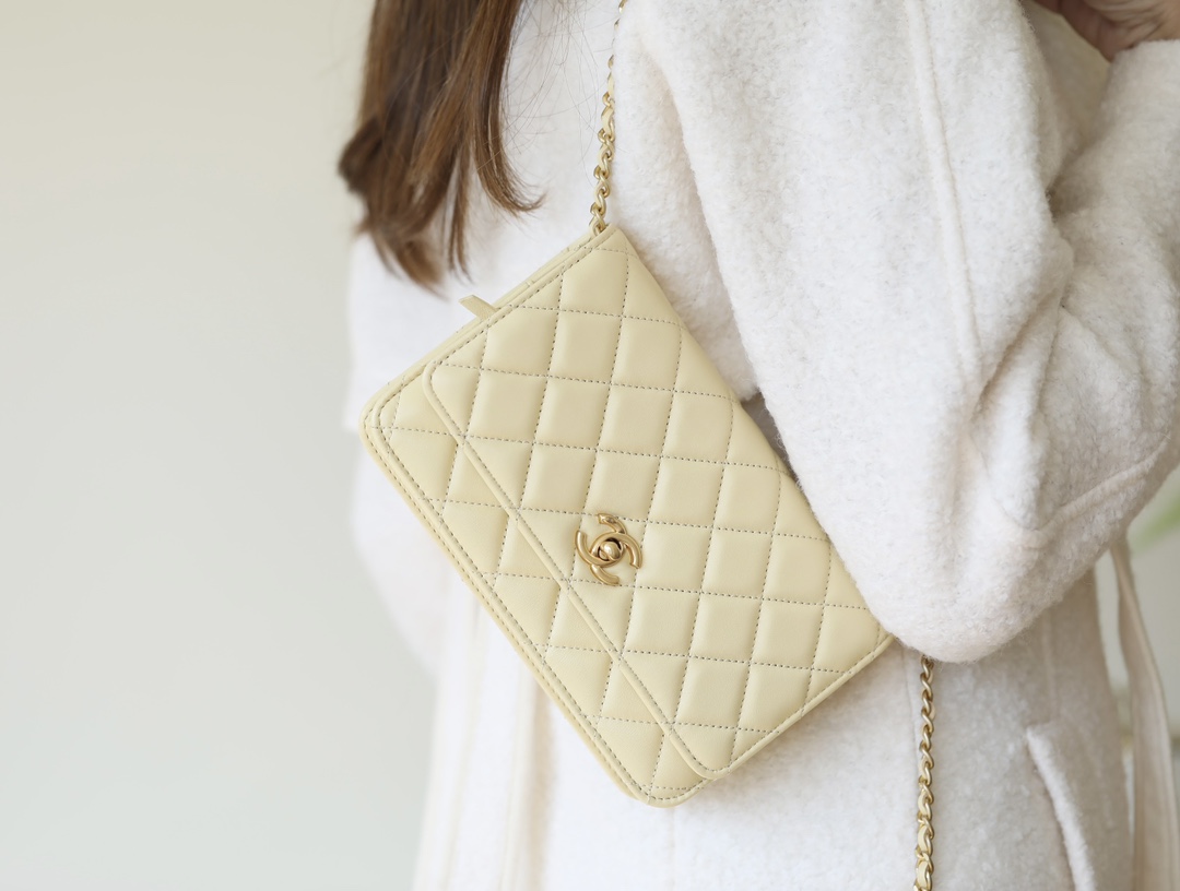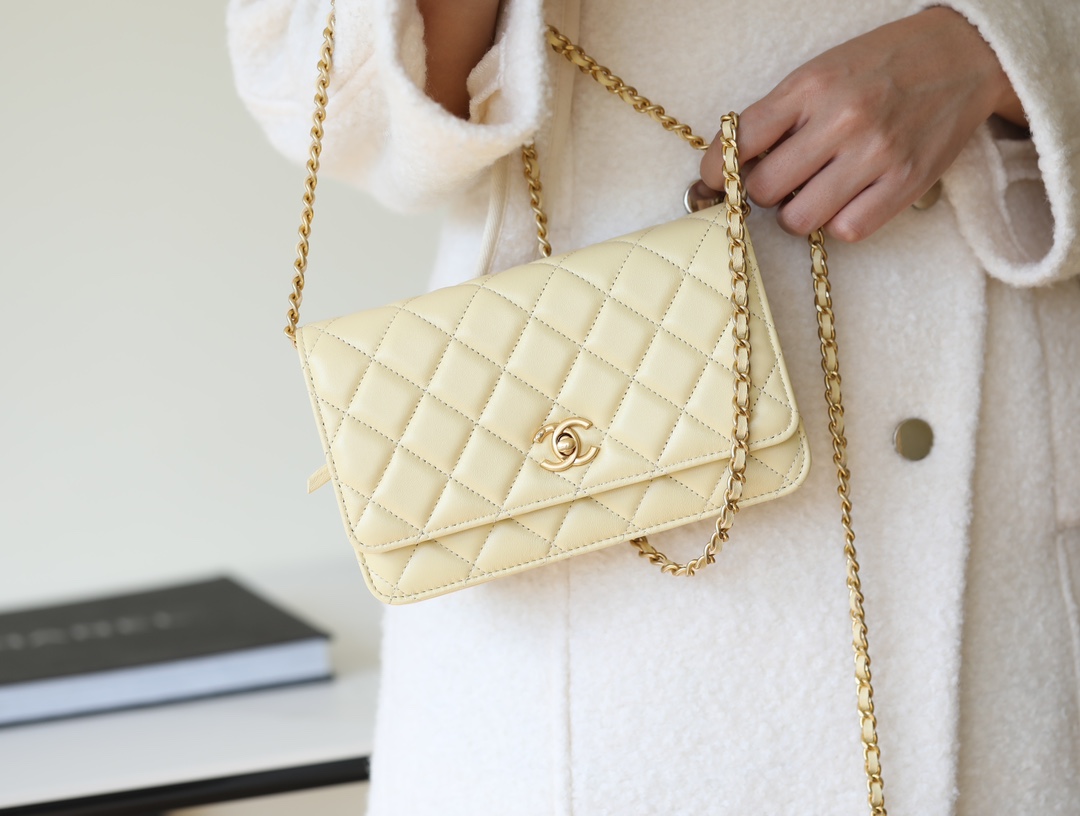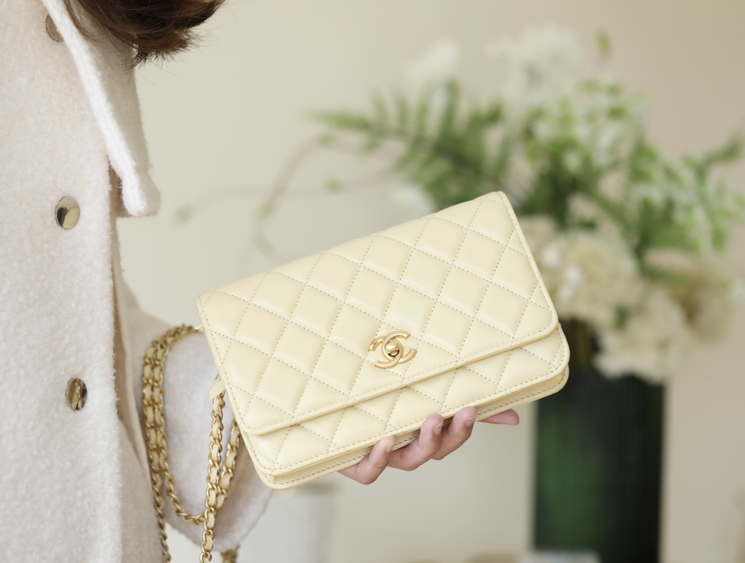 CHANEL Wallet On Chain WOC Lambskin chicken yellow