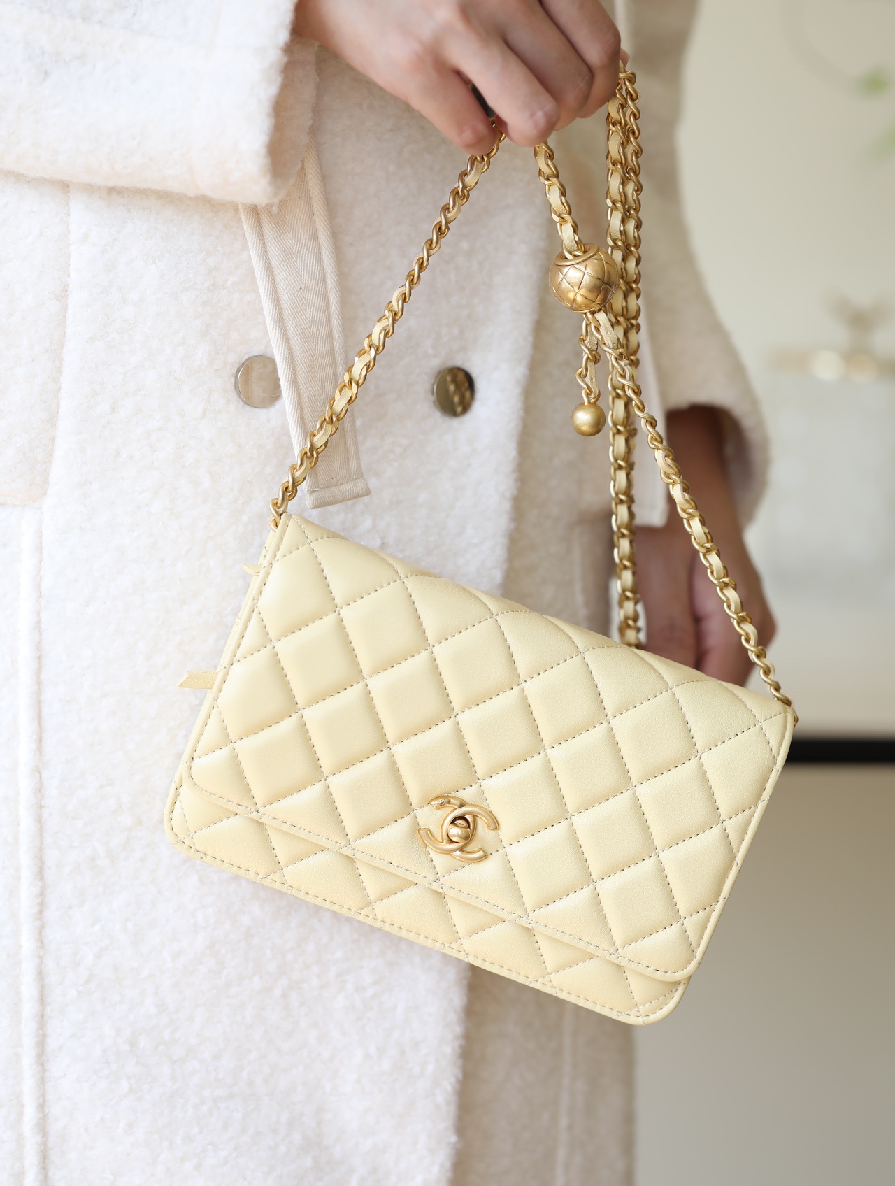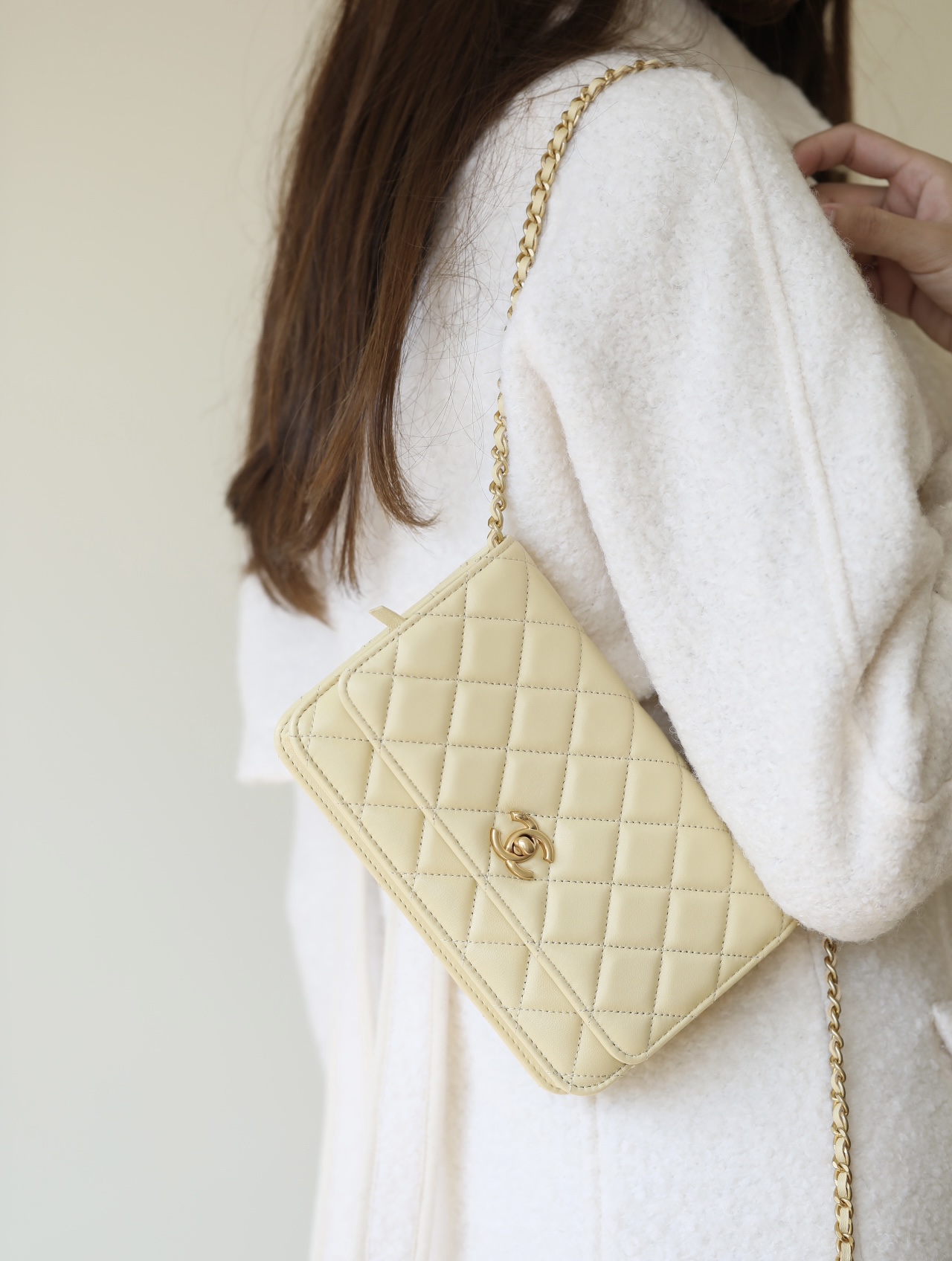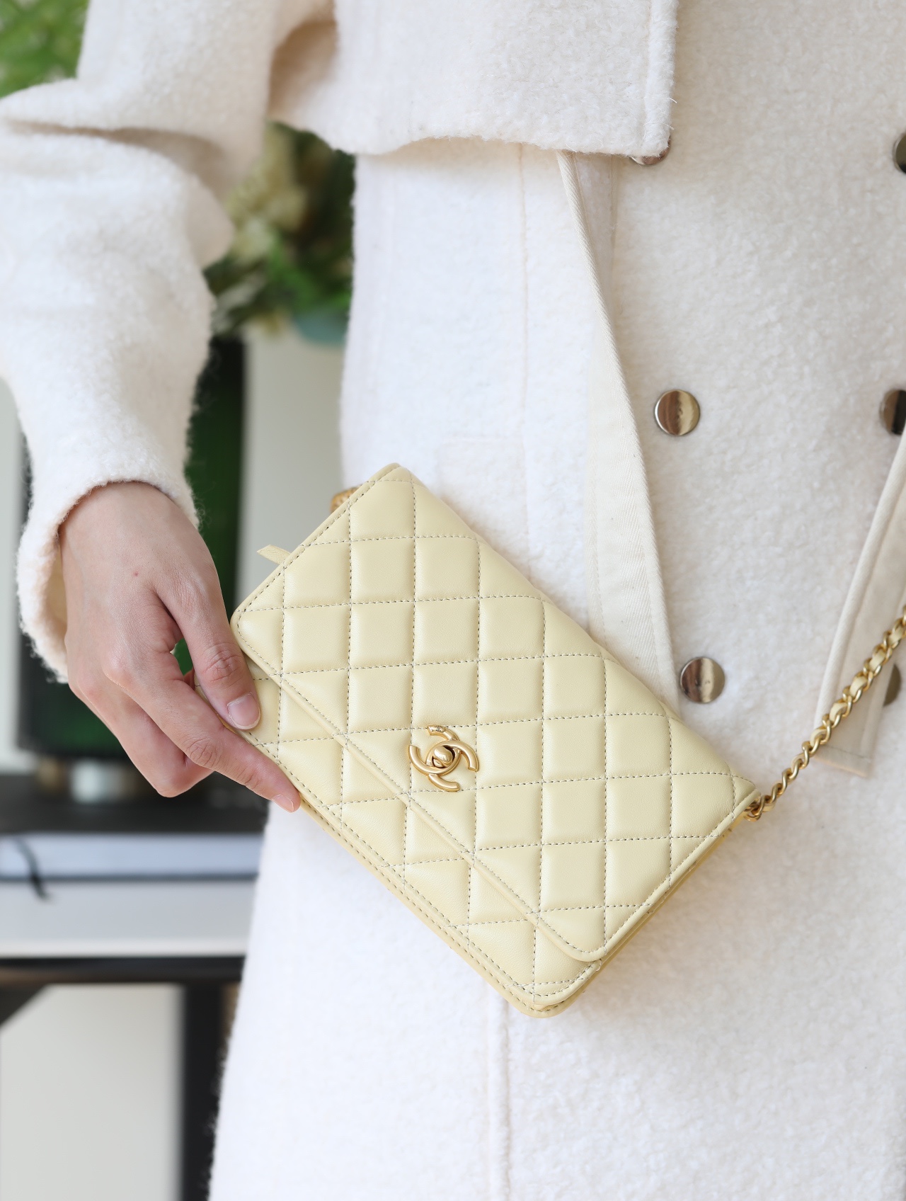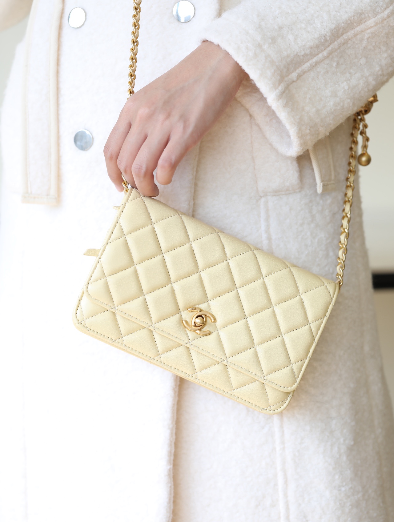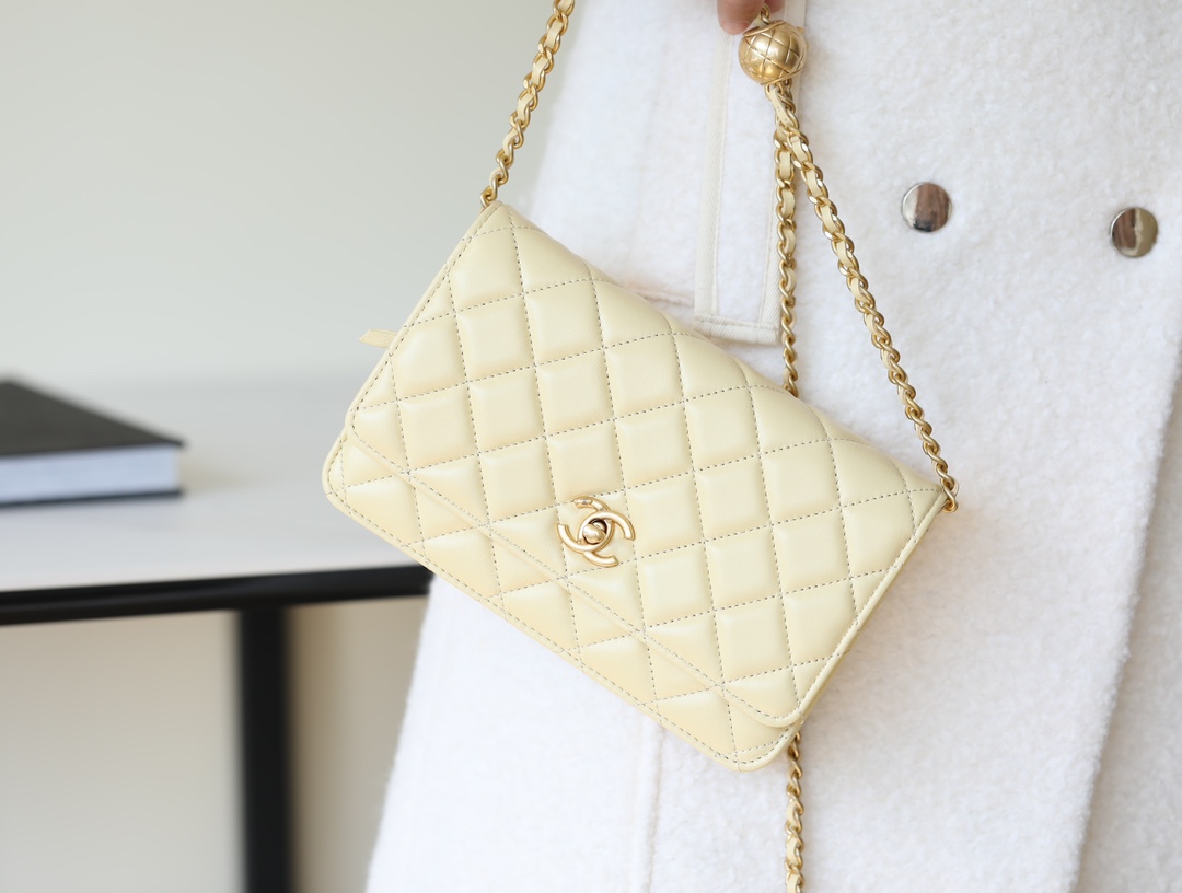 CHANEL Wallet On Chain WOC Lambskin chicken yellow