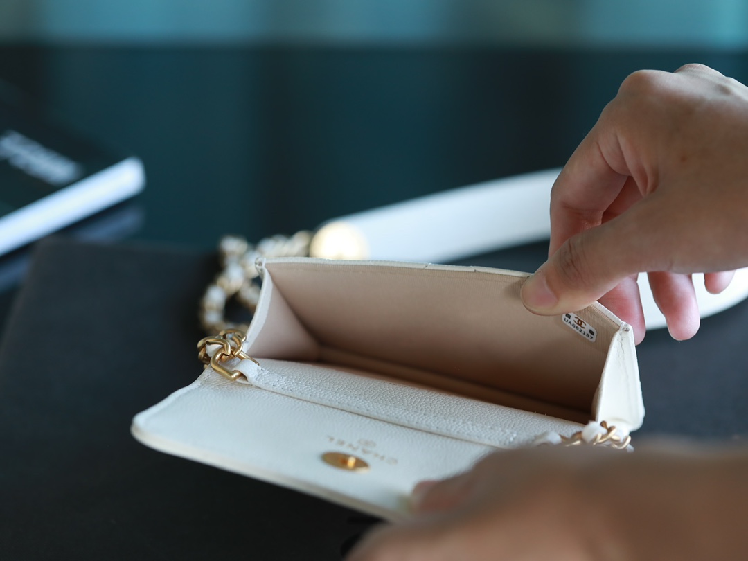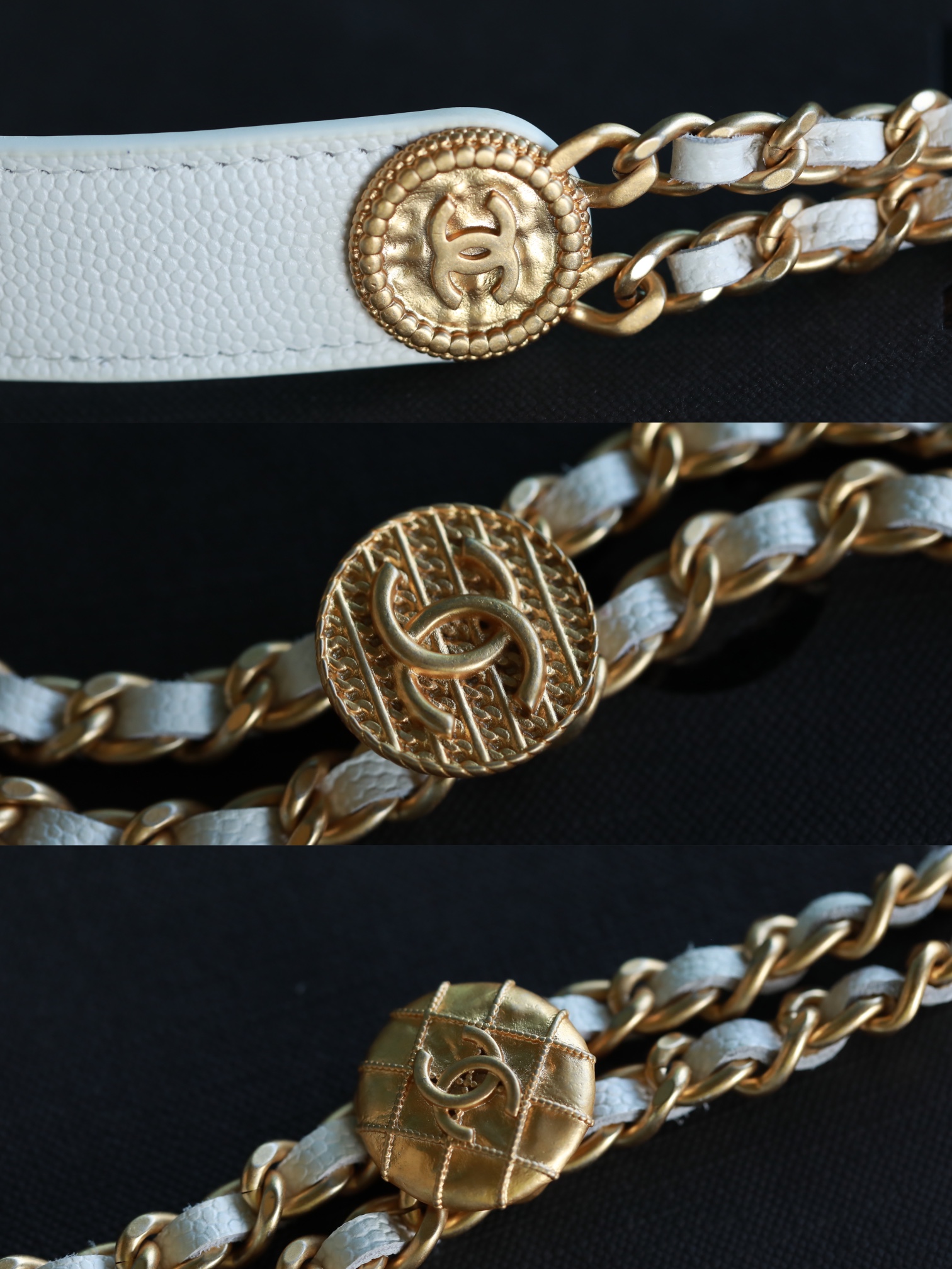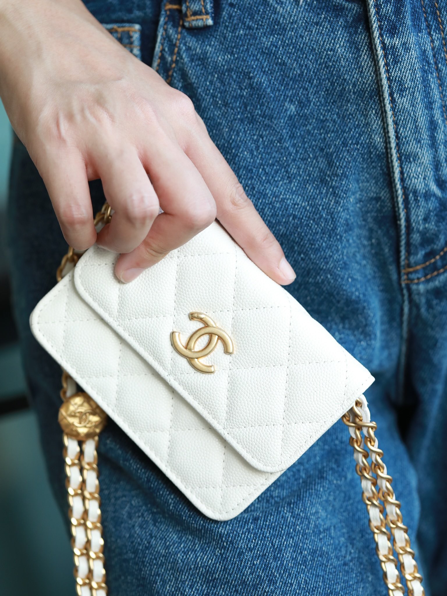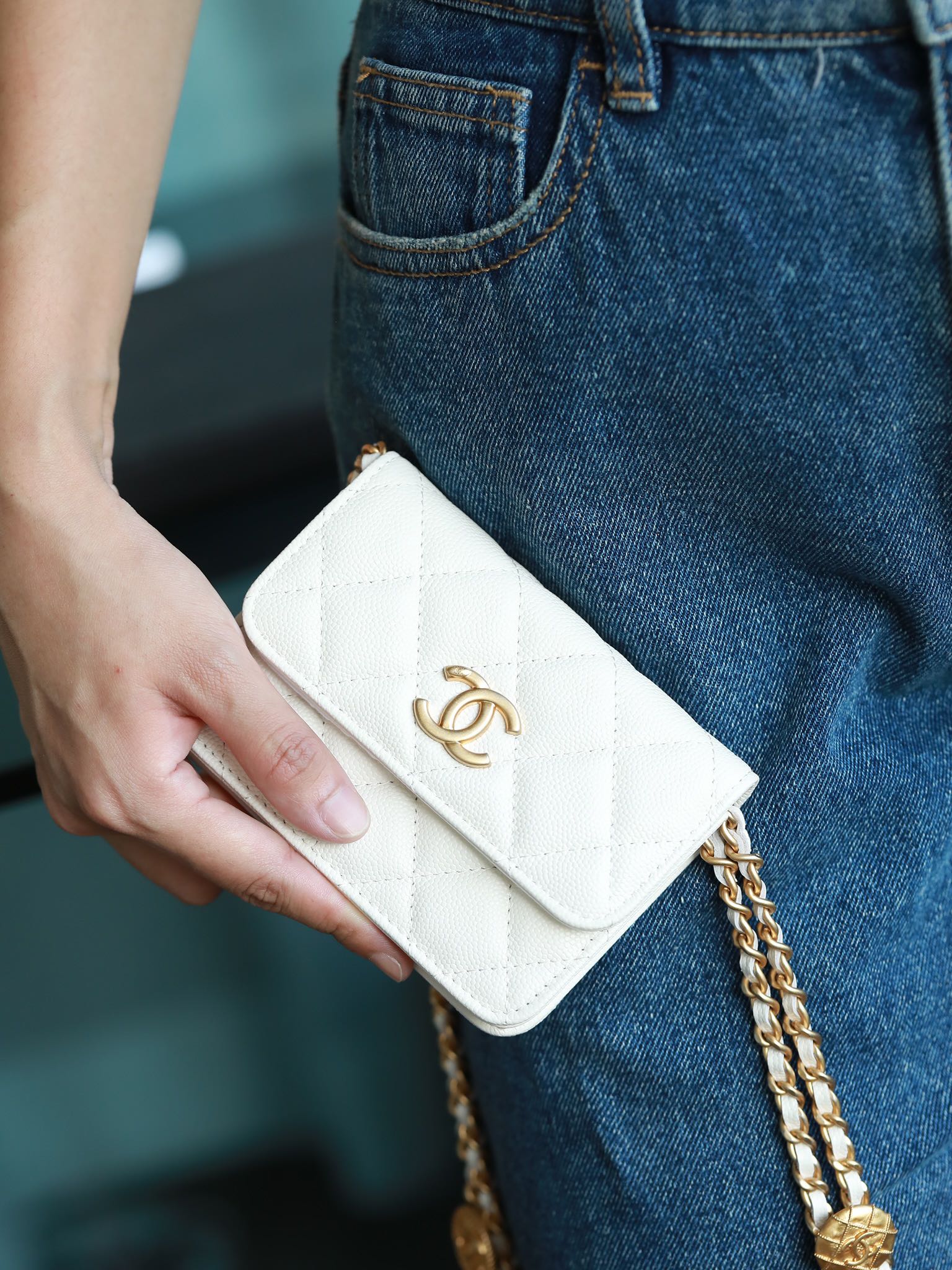 • CHANEL White Quilted Caviar Belt Bag Aged Gold Hardware