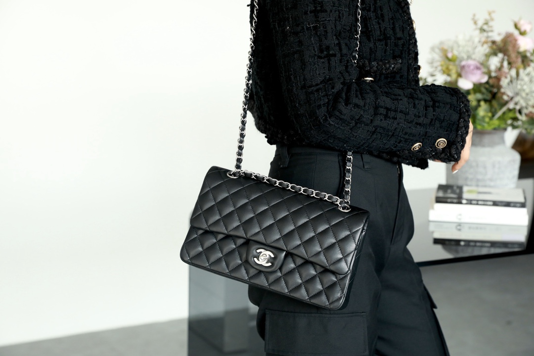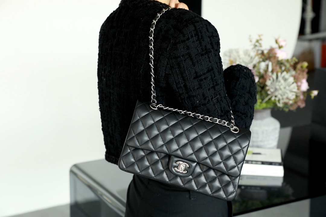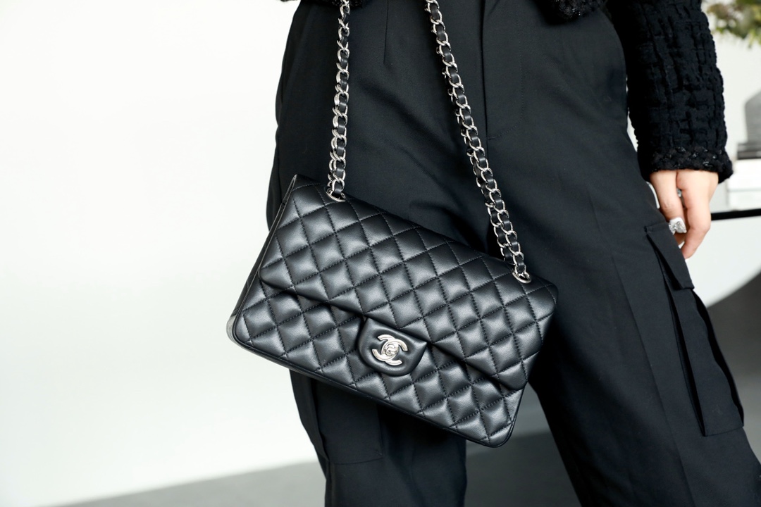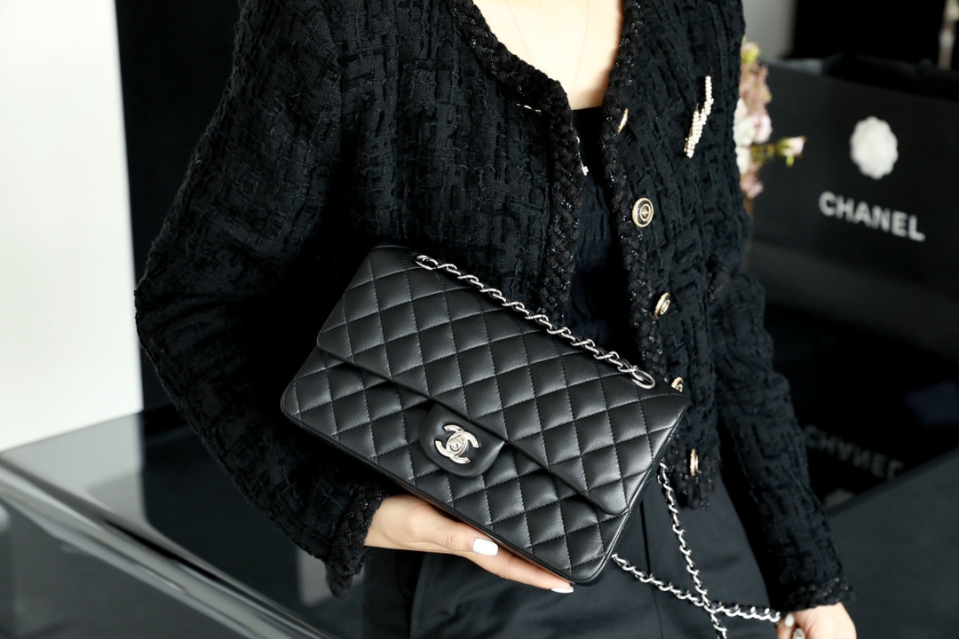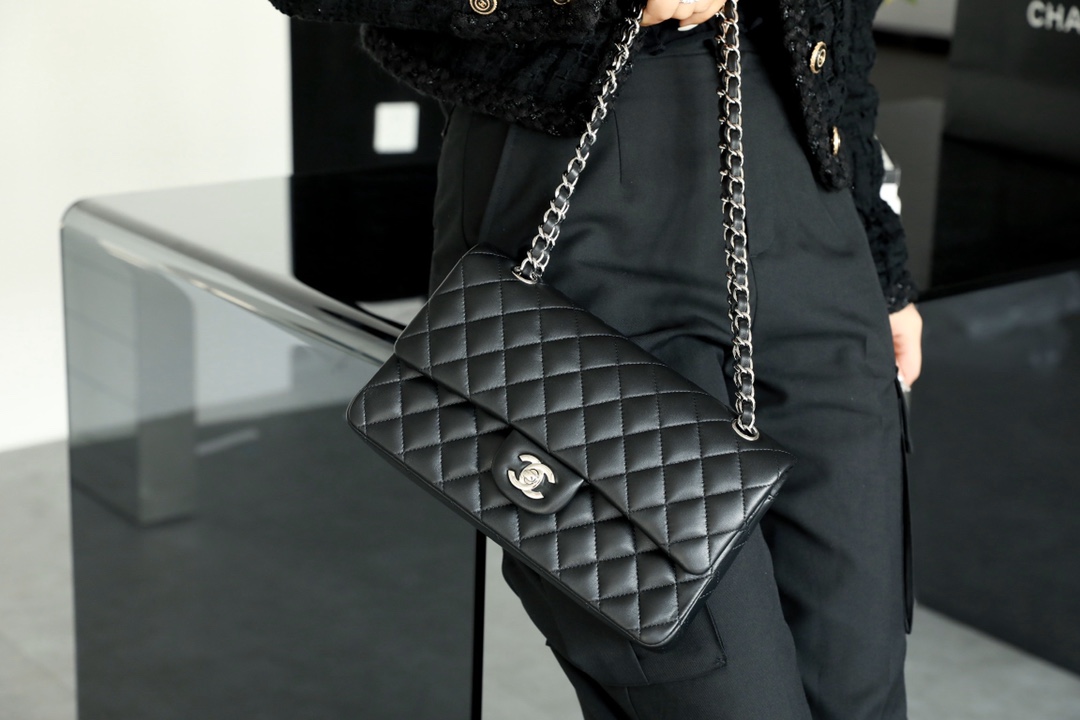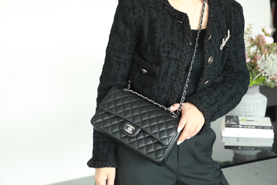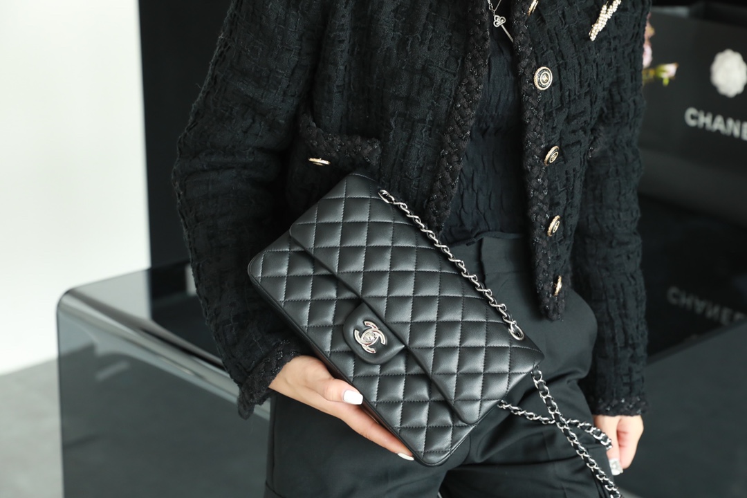 CHANEL Classic Handbag Lambskin & silver buckle Metal Black
