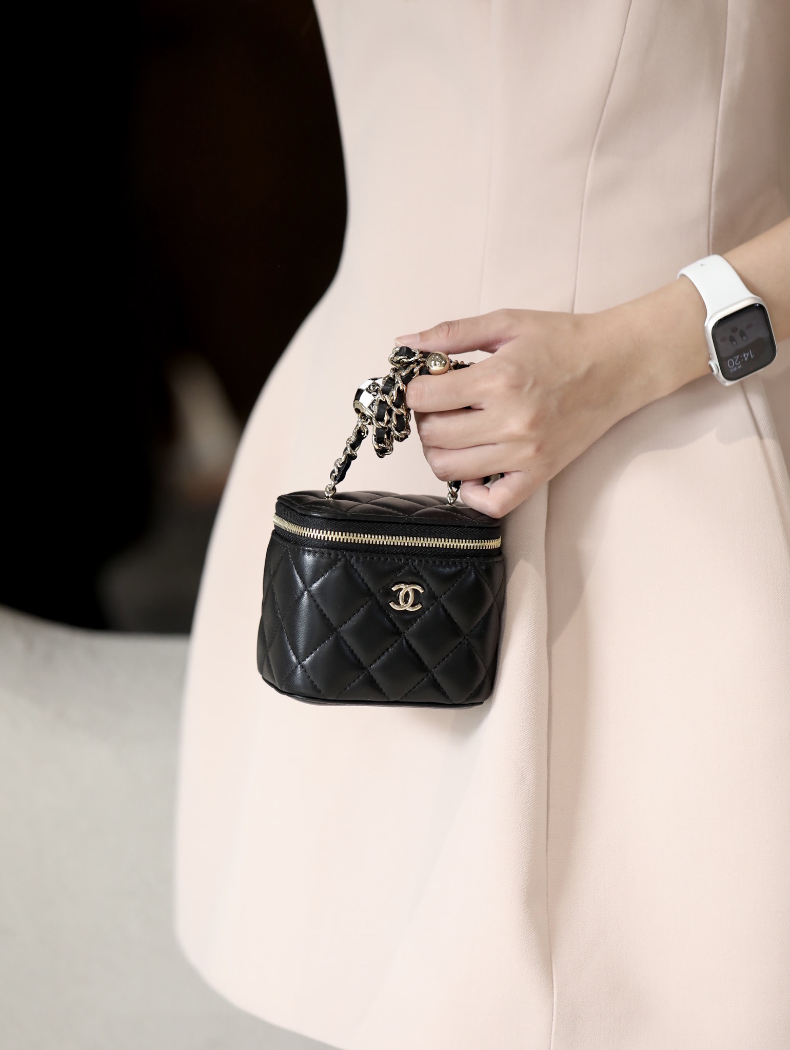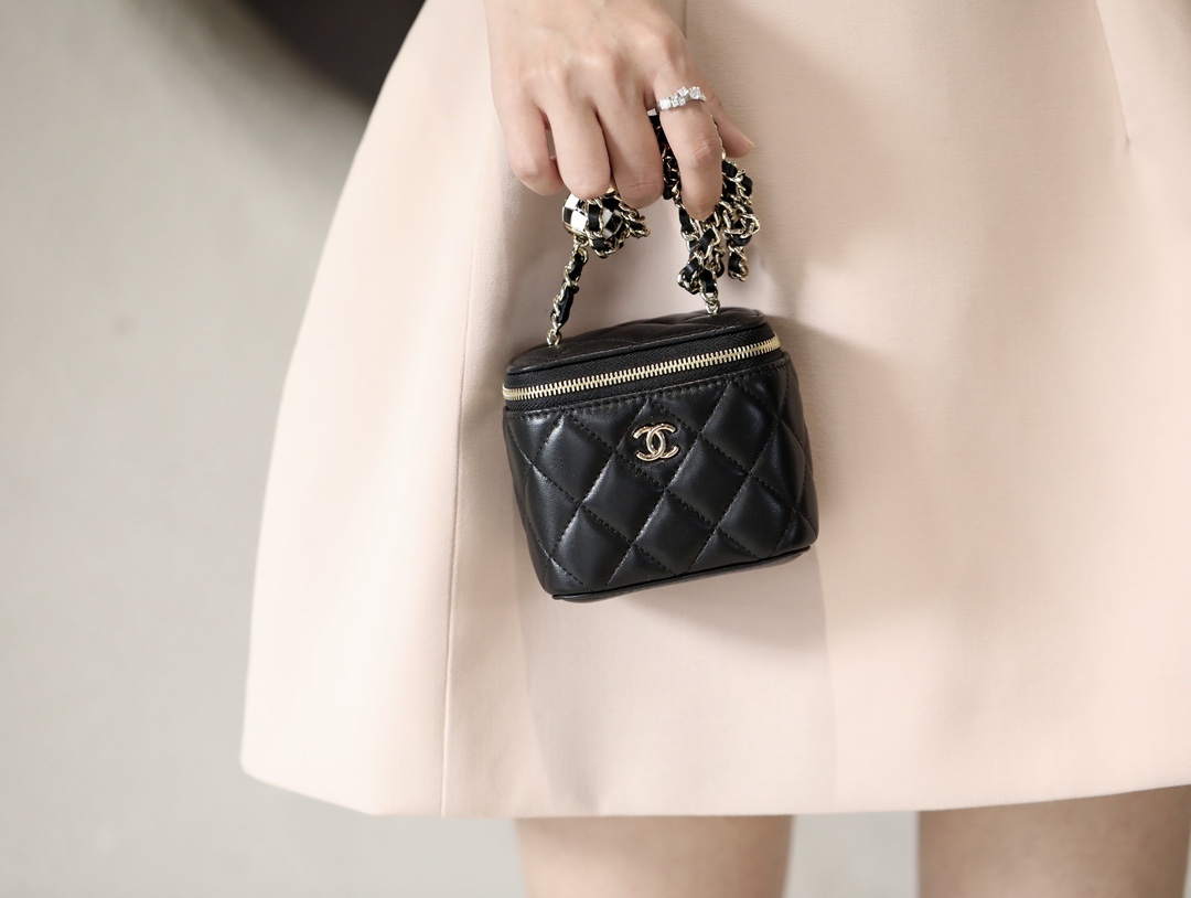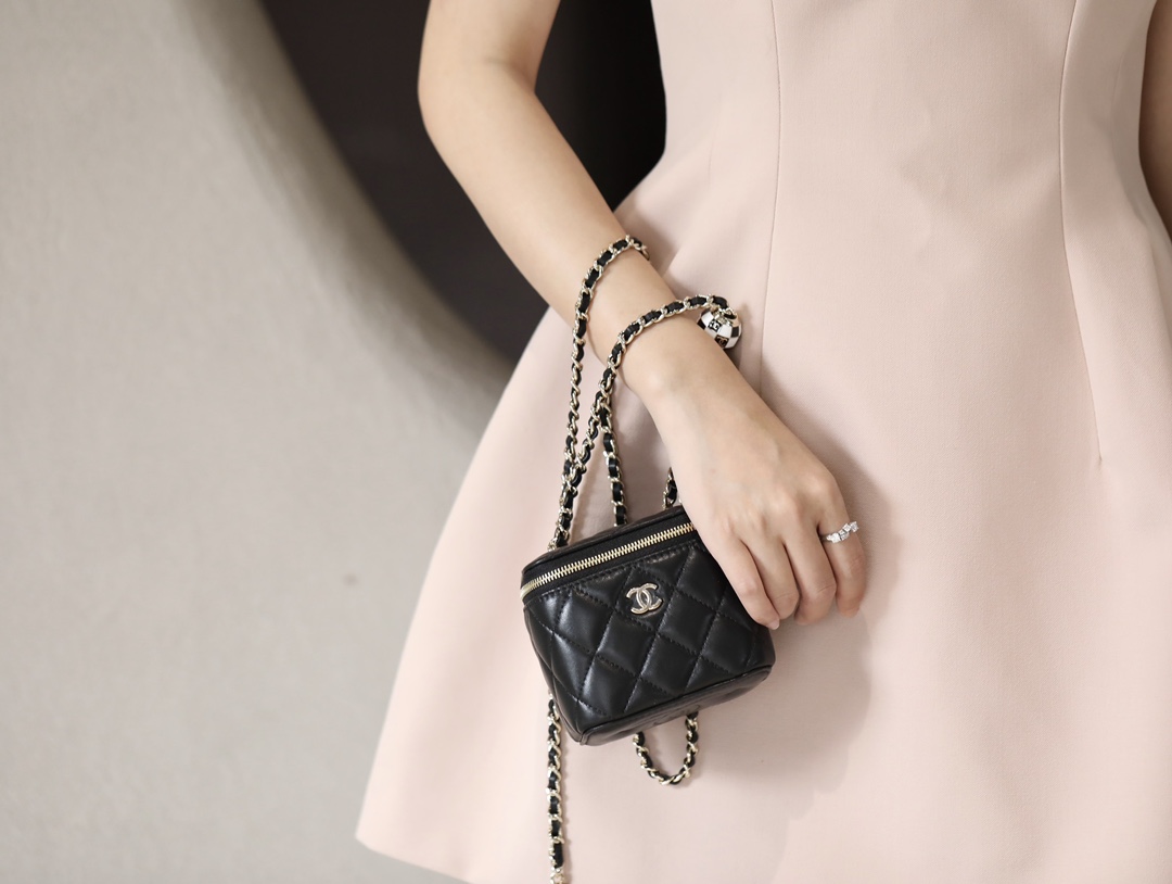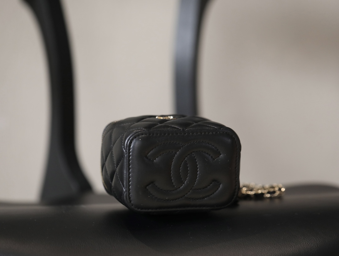 • CHANEL Clutch with Chain Lambskin, Varnished Metal & Gold-Tone Metal Black