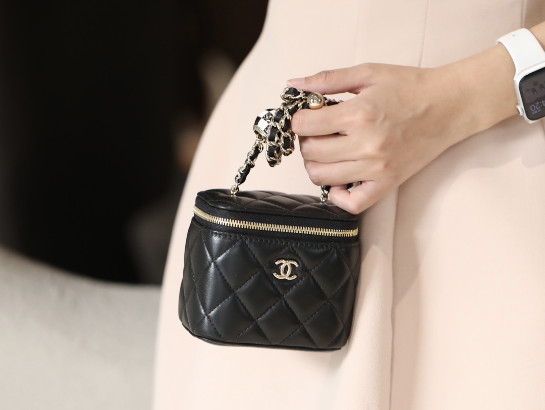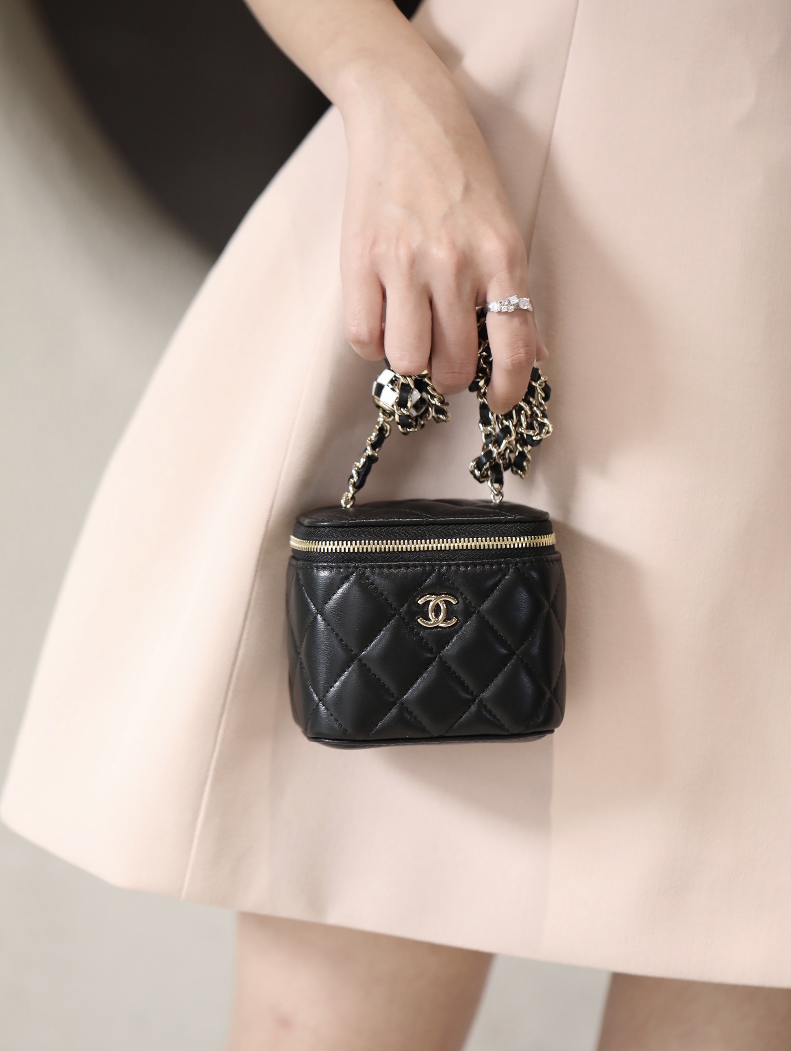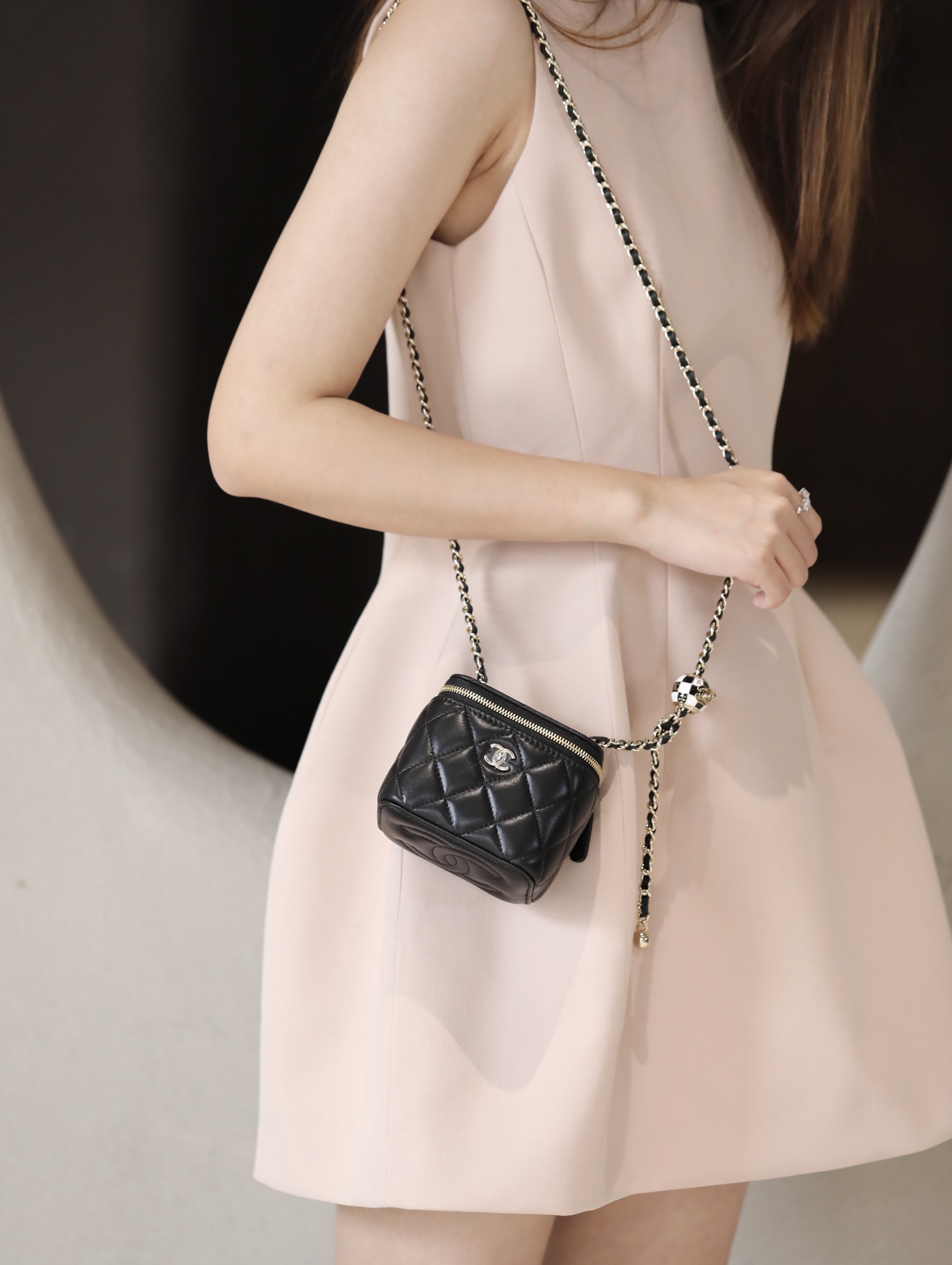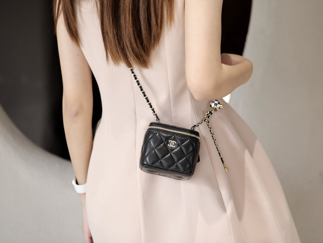 • CHANEL Clutch with Chain Lambskin, Varnished Metal & Gold-Tone Metal Black