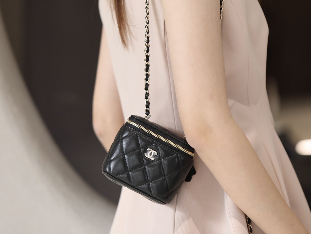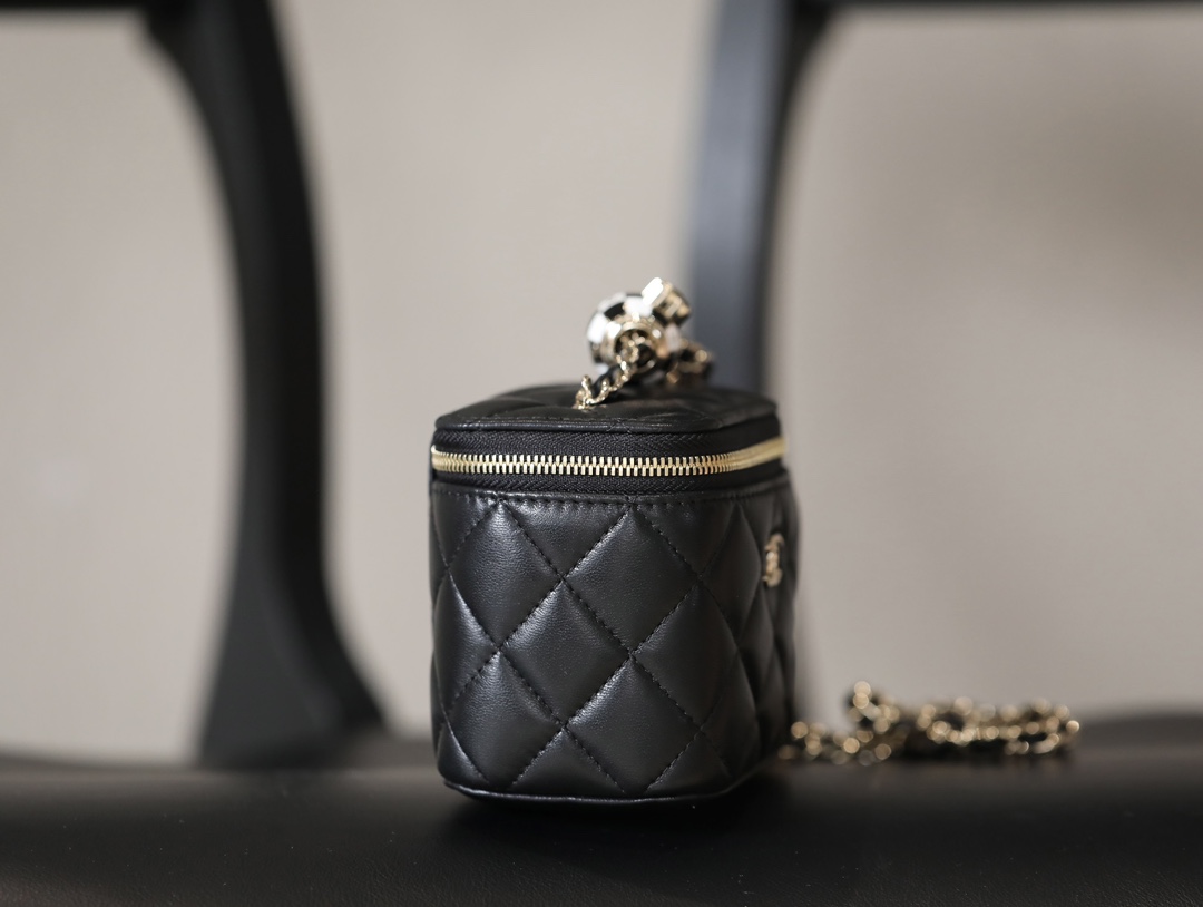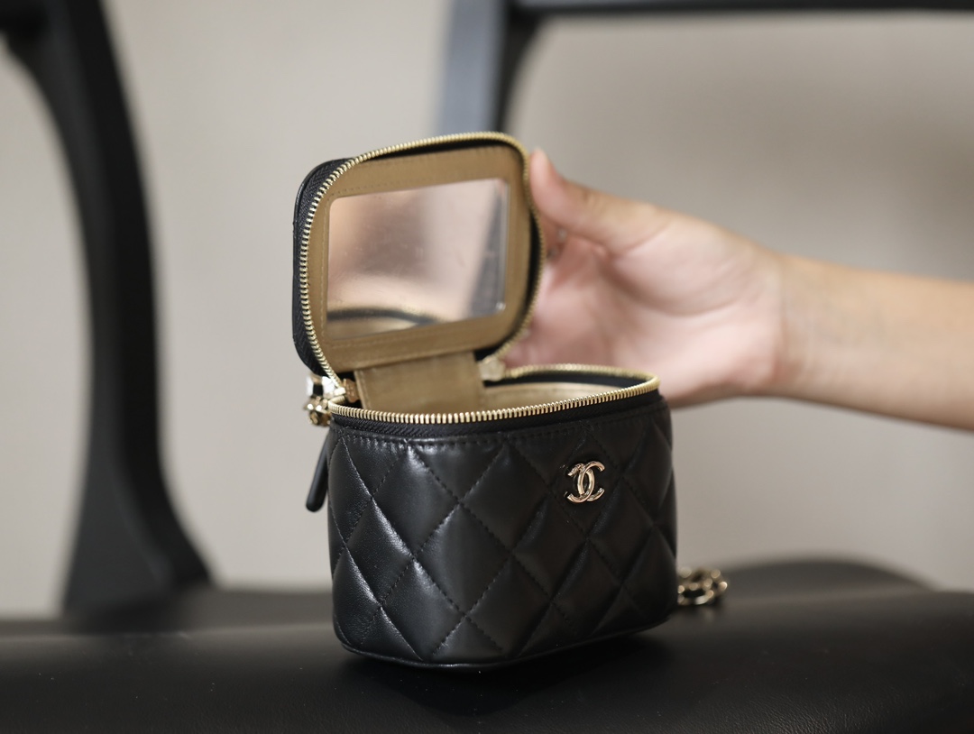 CHANEL Clutch with Chain Lambskin, Varnished Metal & Gold-Tone Metal Black