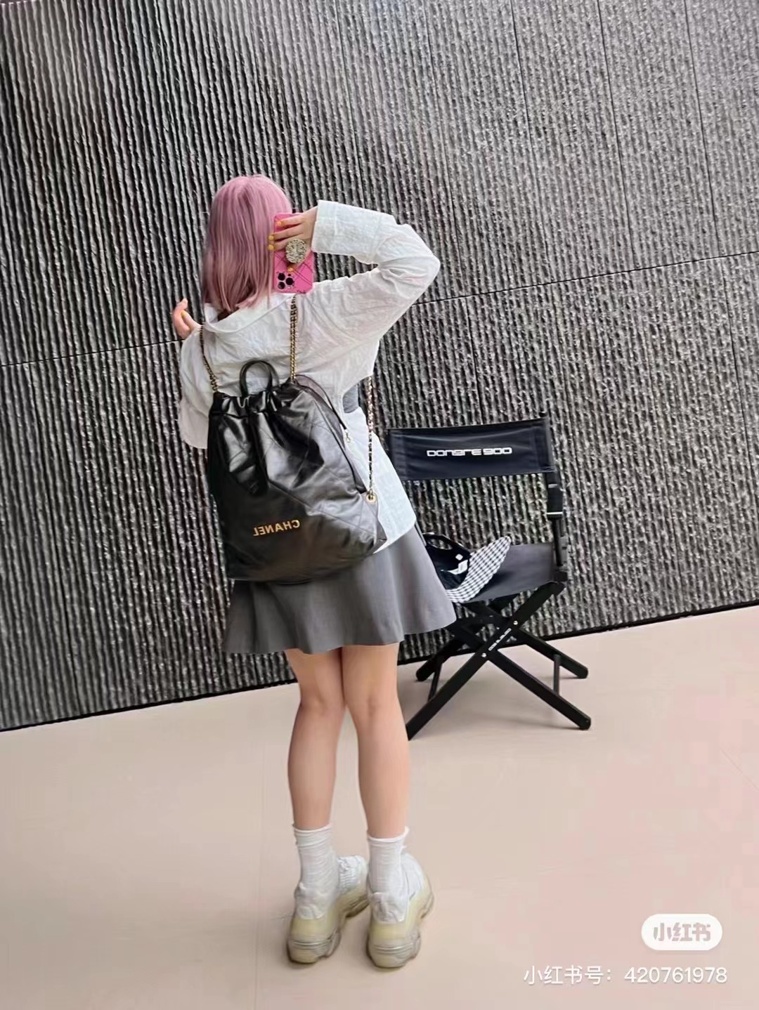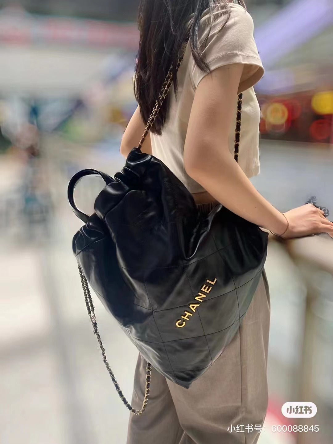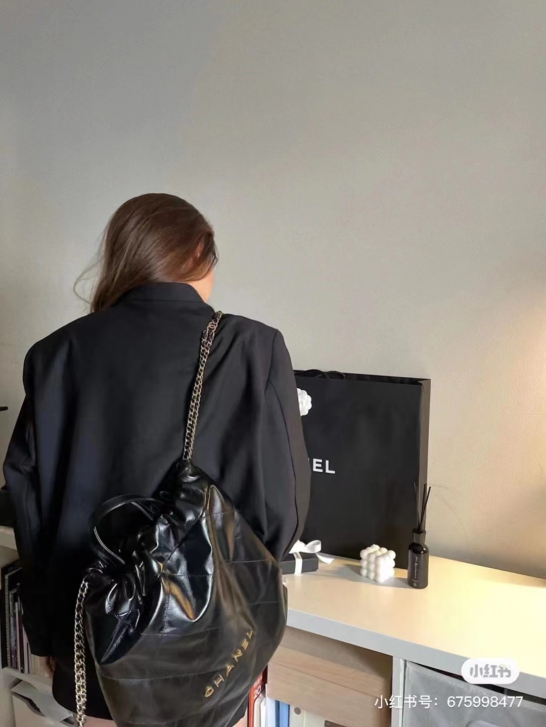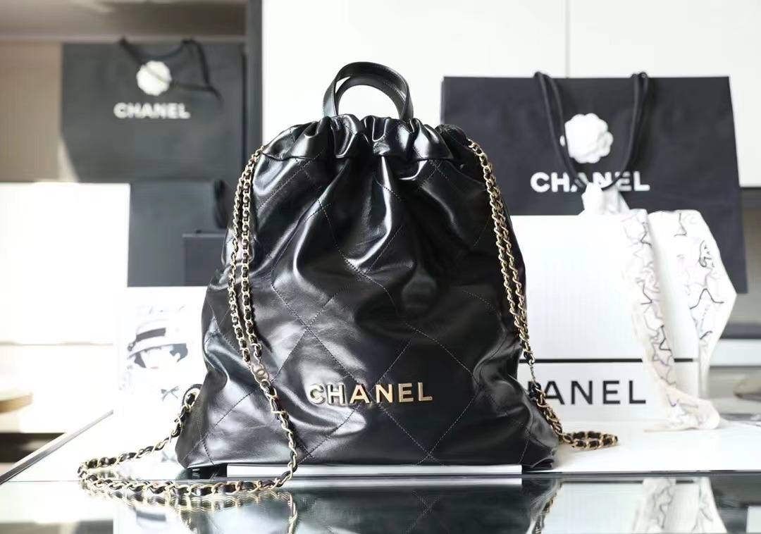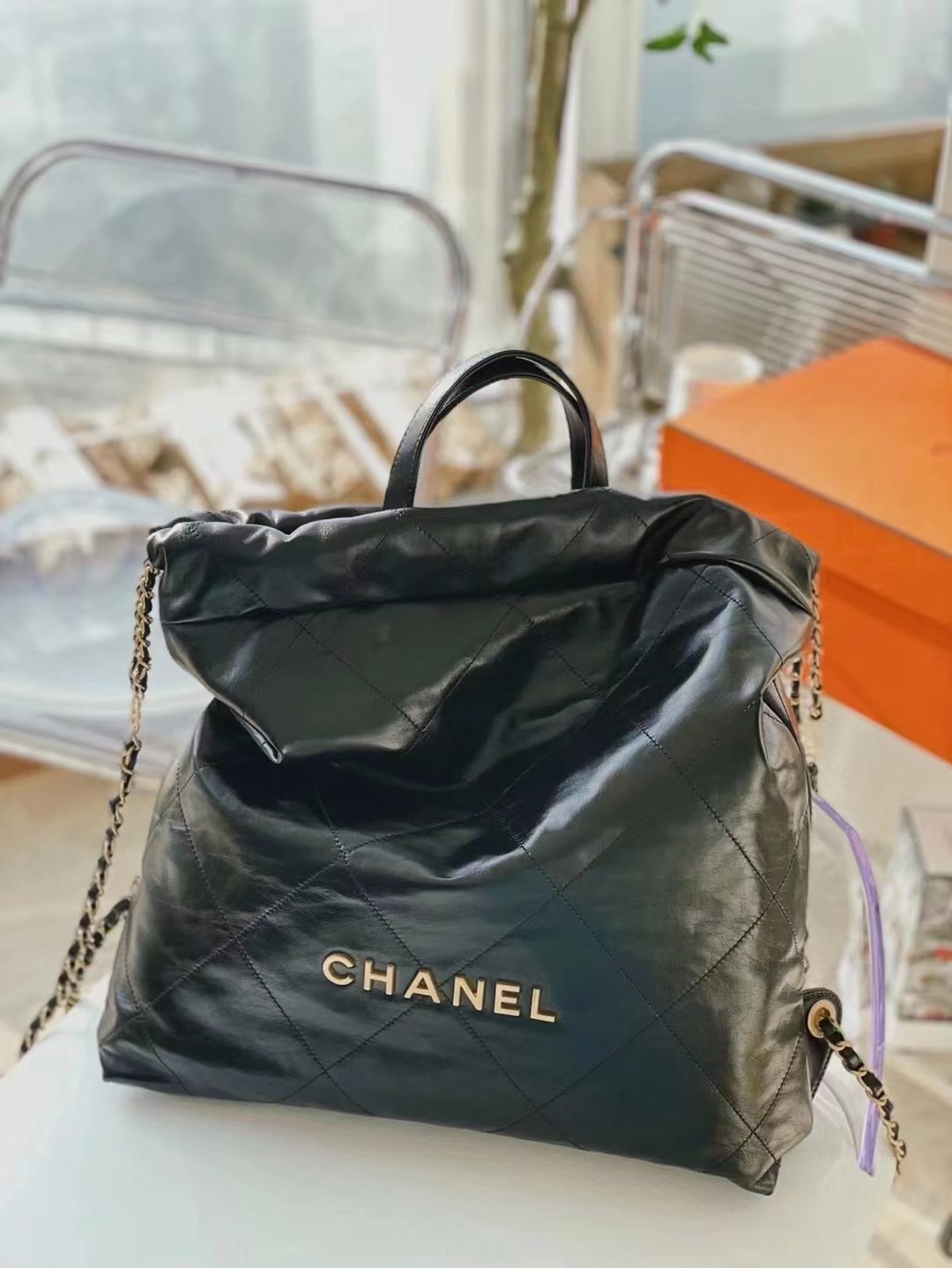 Large Back Pack CHANEL 22 bag Shiny Calfskin & Gold-Tone Metal black
