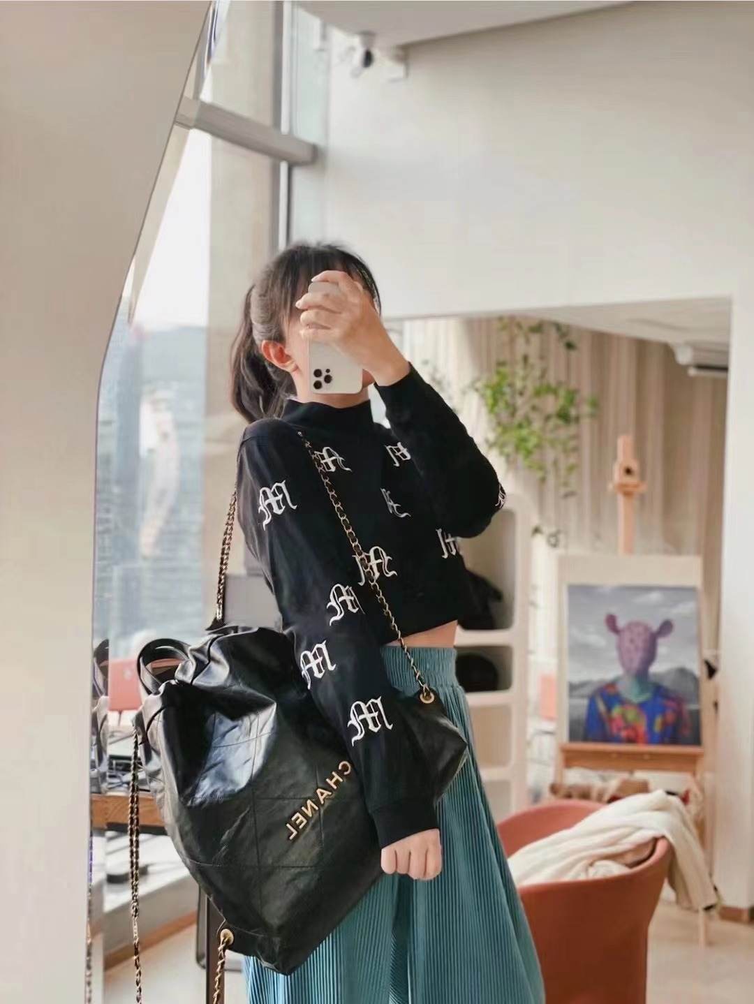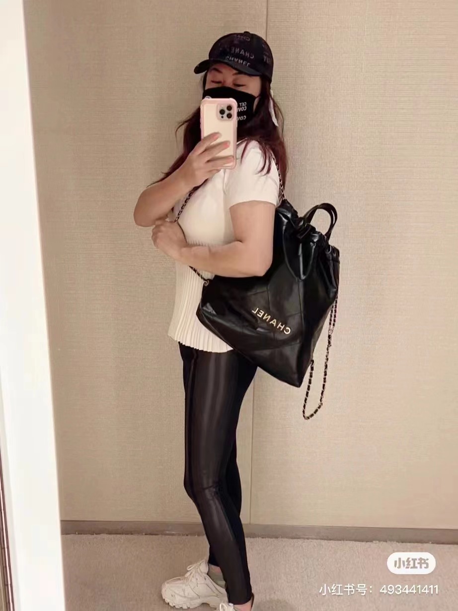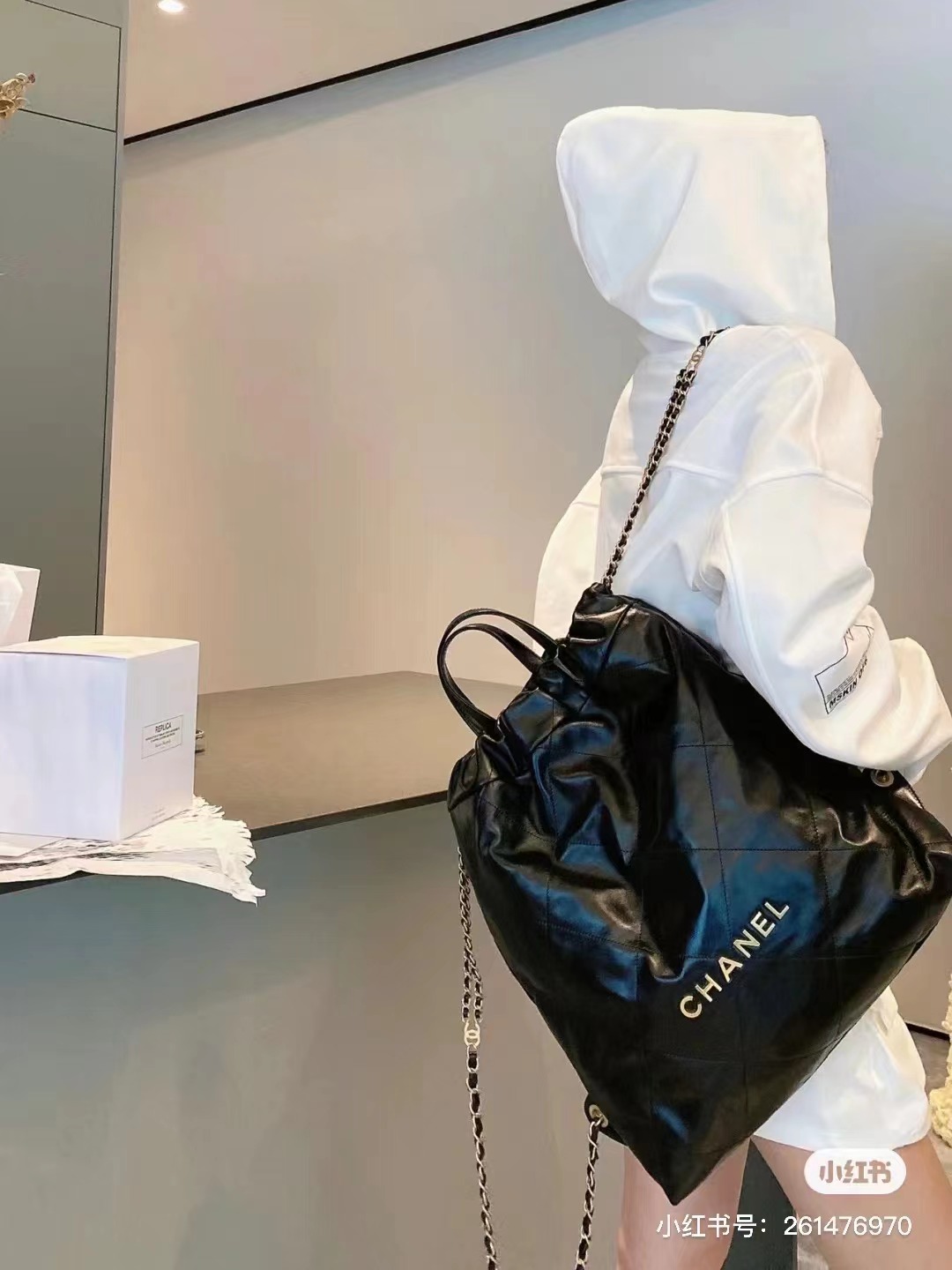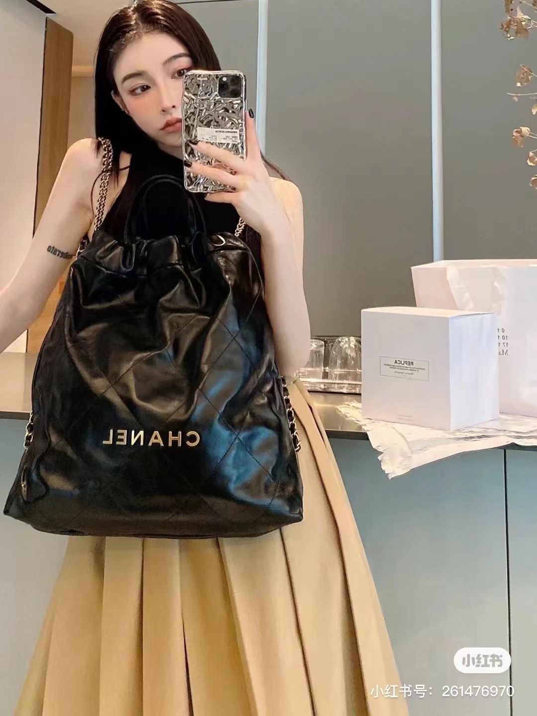 Large Back Pack CHANEL 22 bag Shiny Calfskin & Gold-Tone Metal black