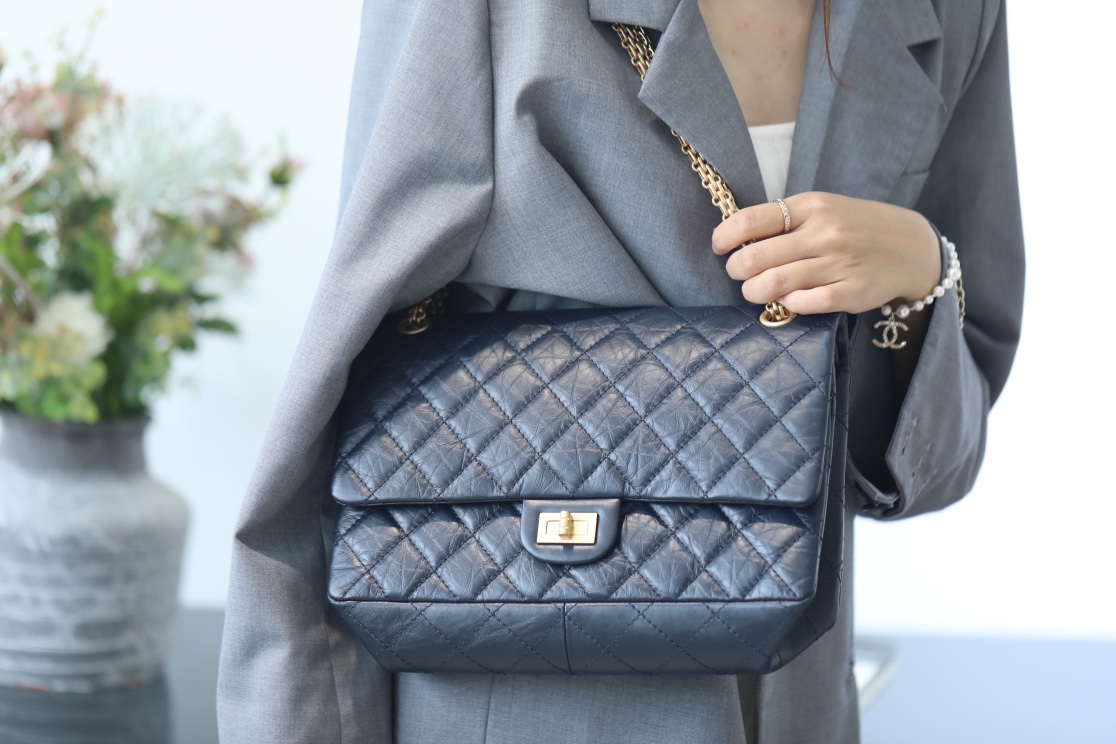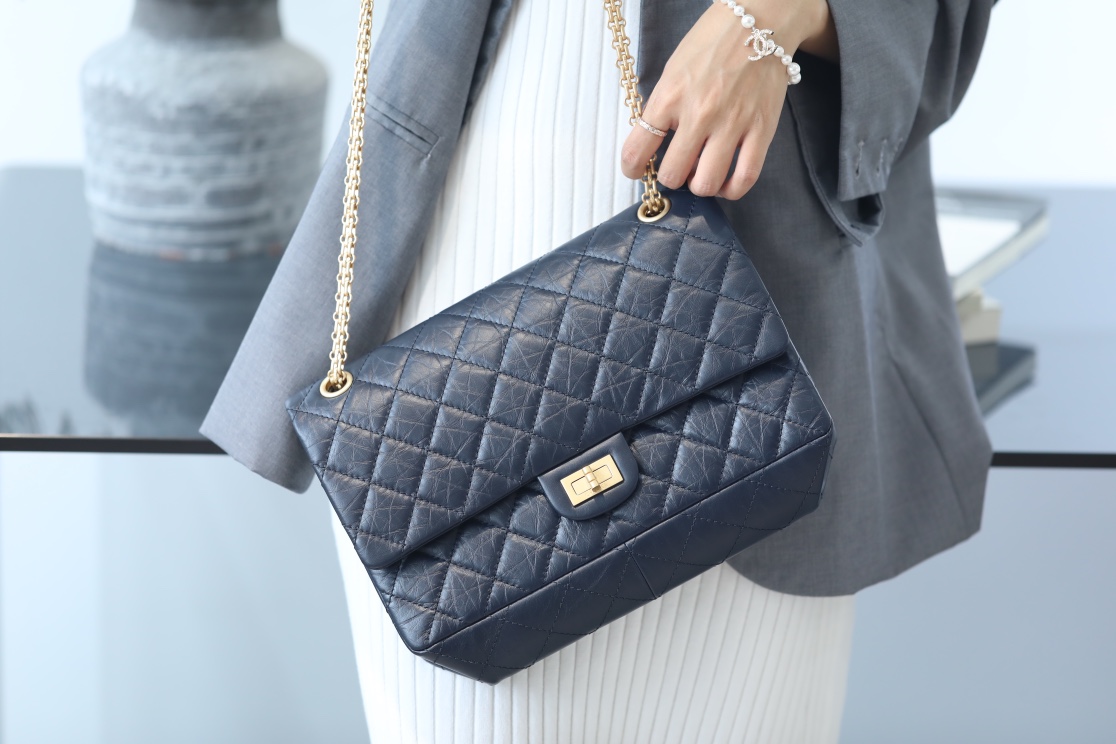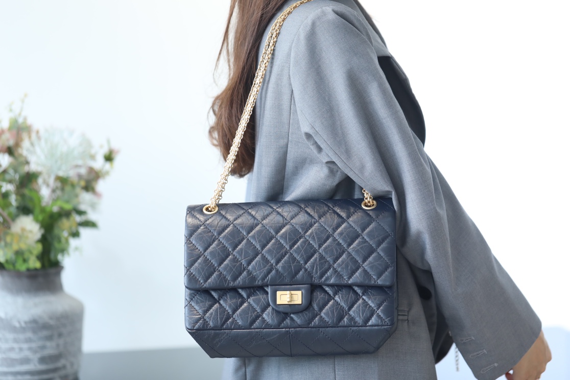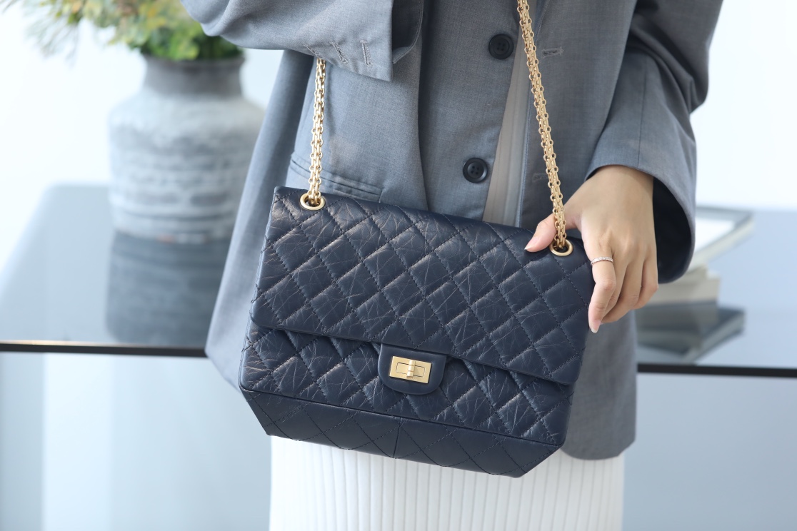 • Large CHANEL 2.55 Handbag Aged Calfskin & Gold-Tone Metal Starry sky blue