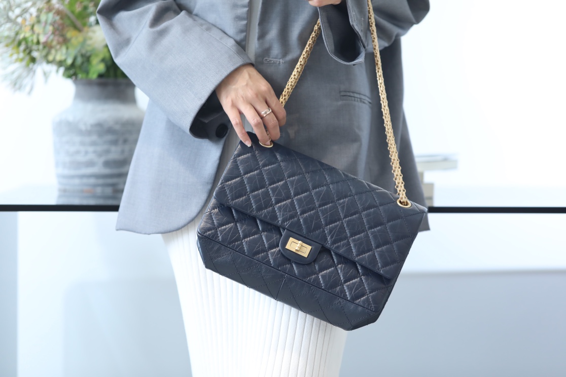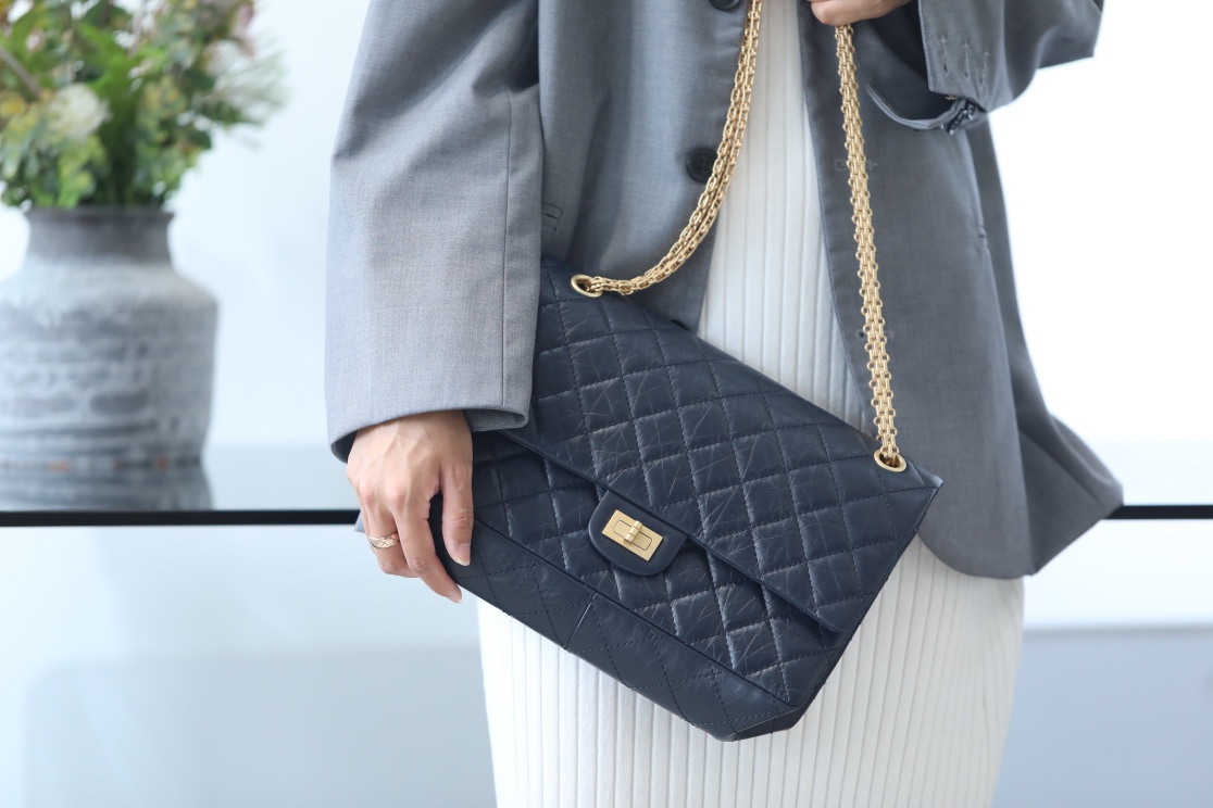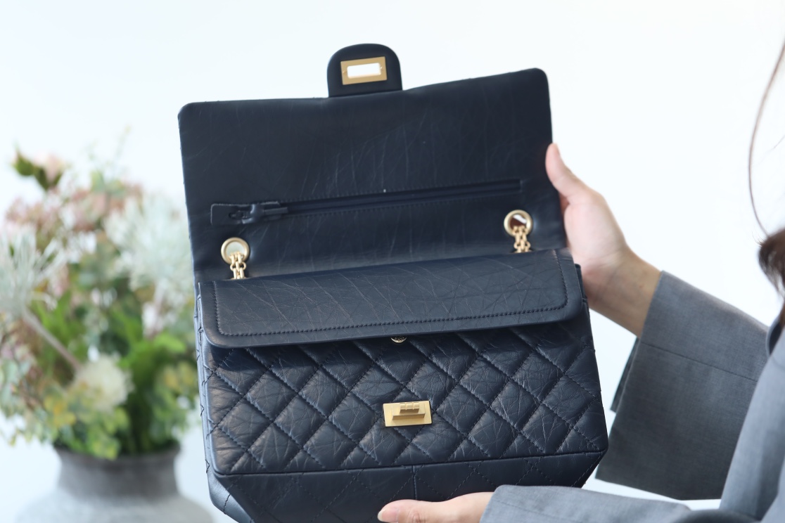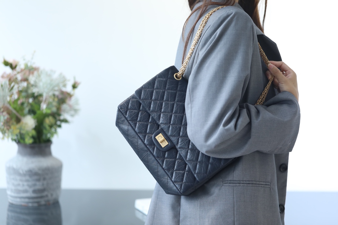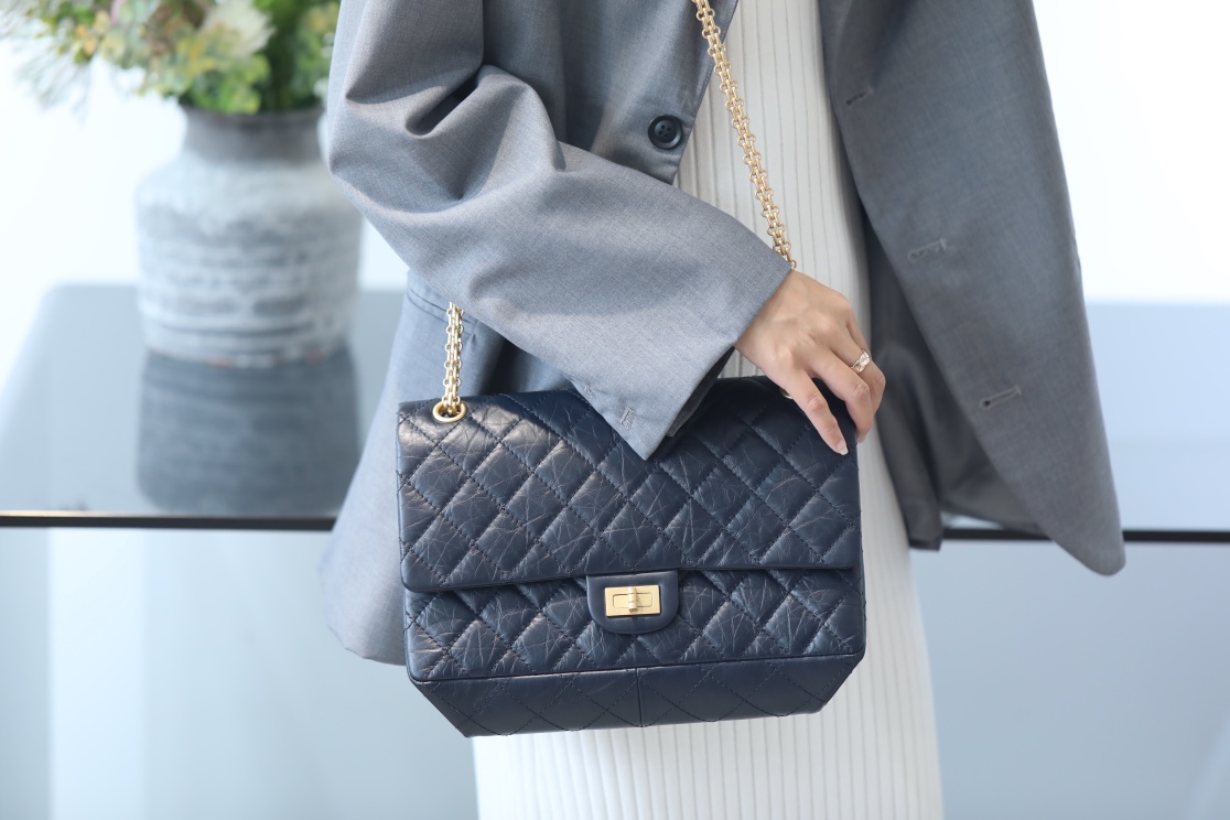 • Large CHANEL 2.55 Handbag Aged Calfskin & Gold-Tone Metal Starry sky blue
