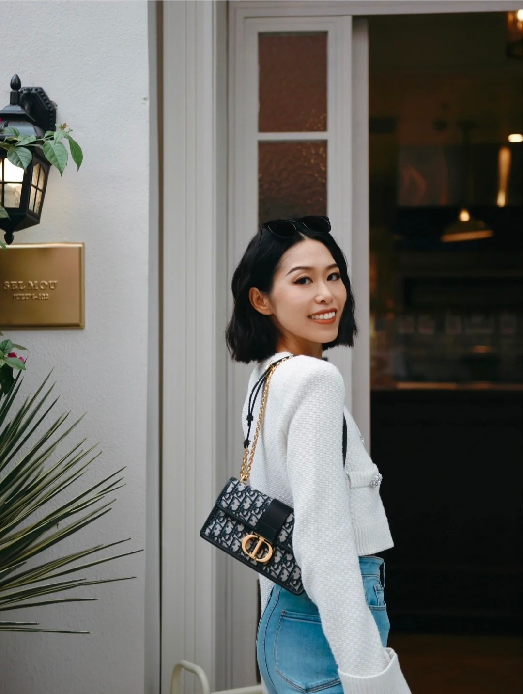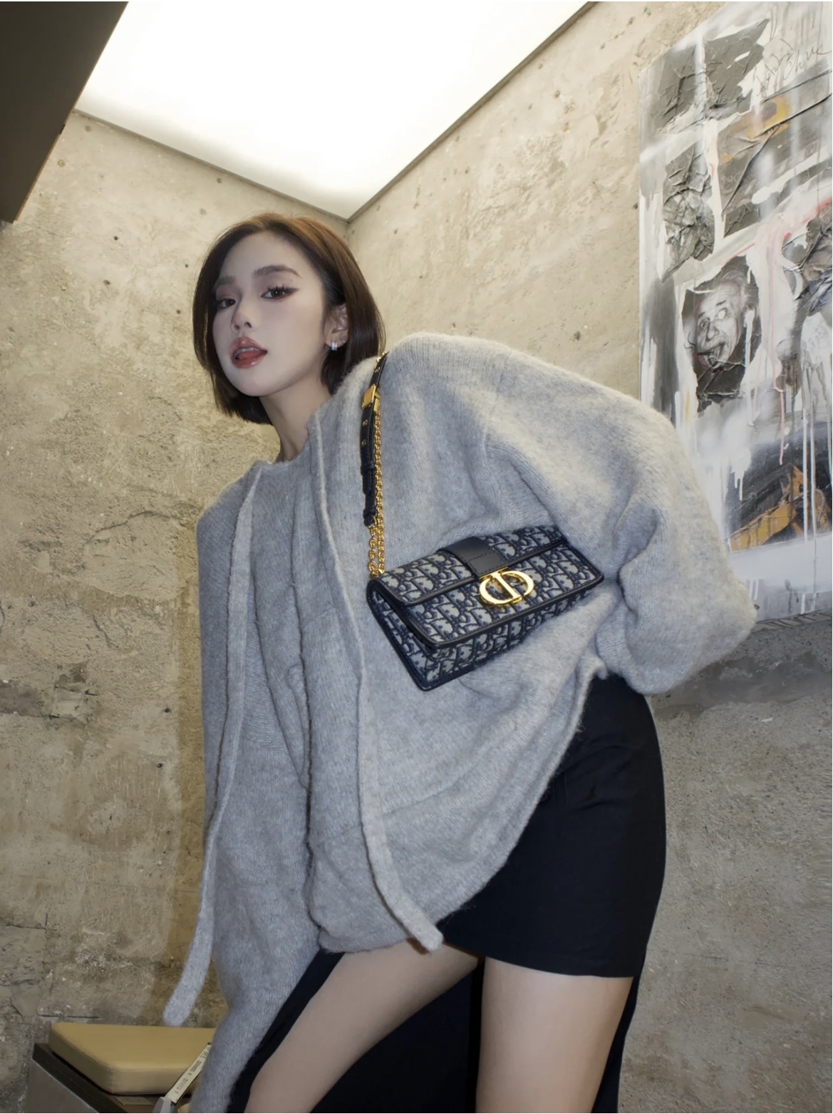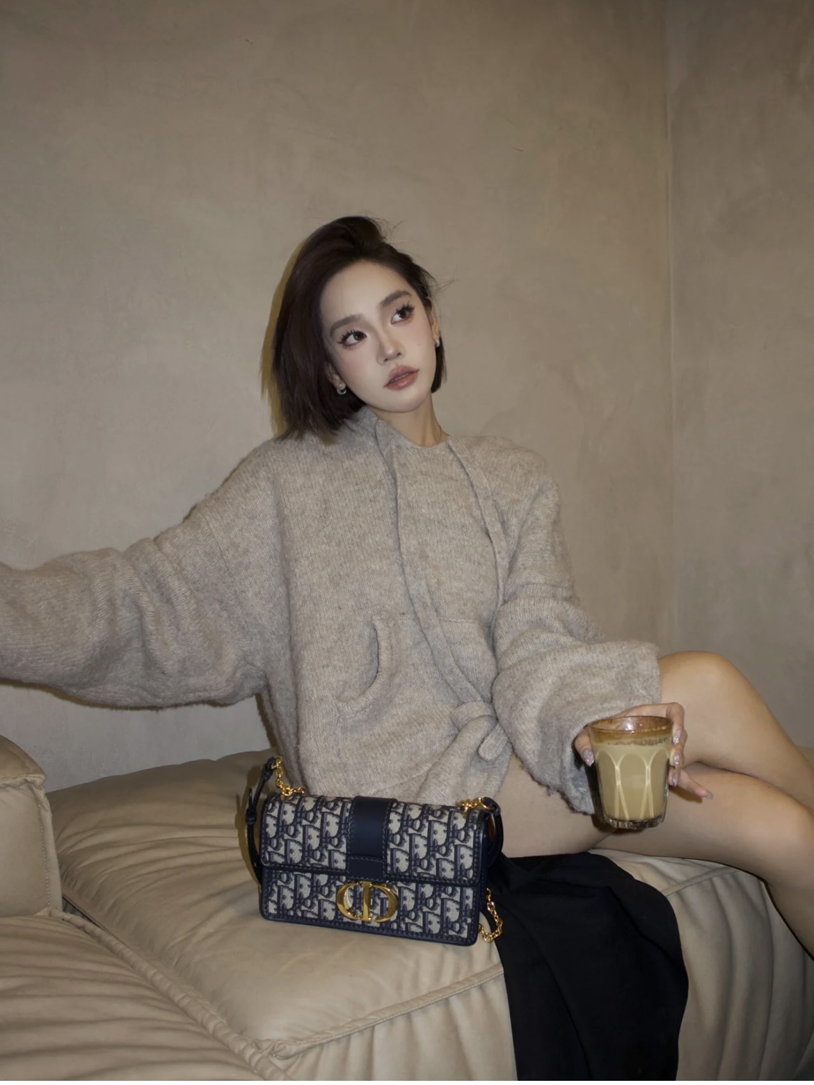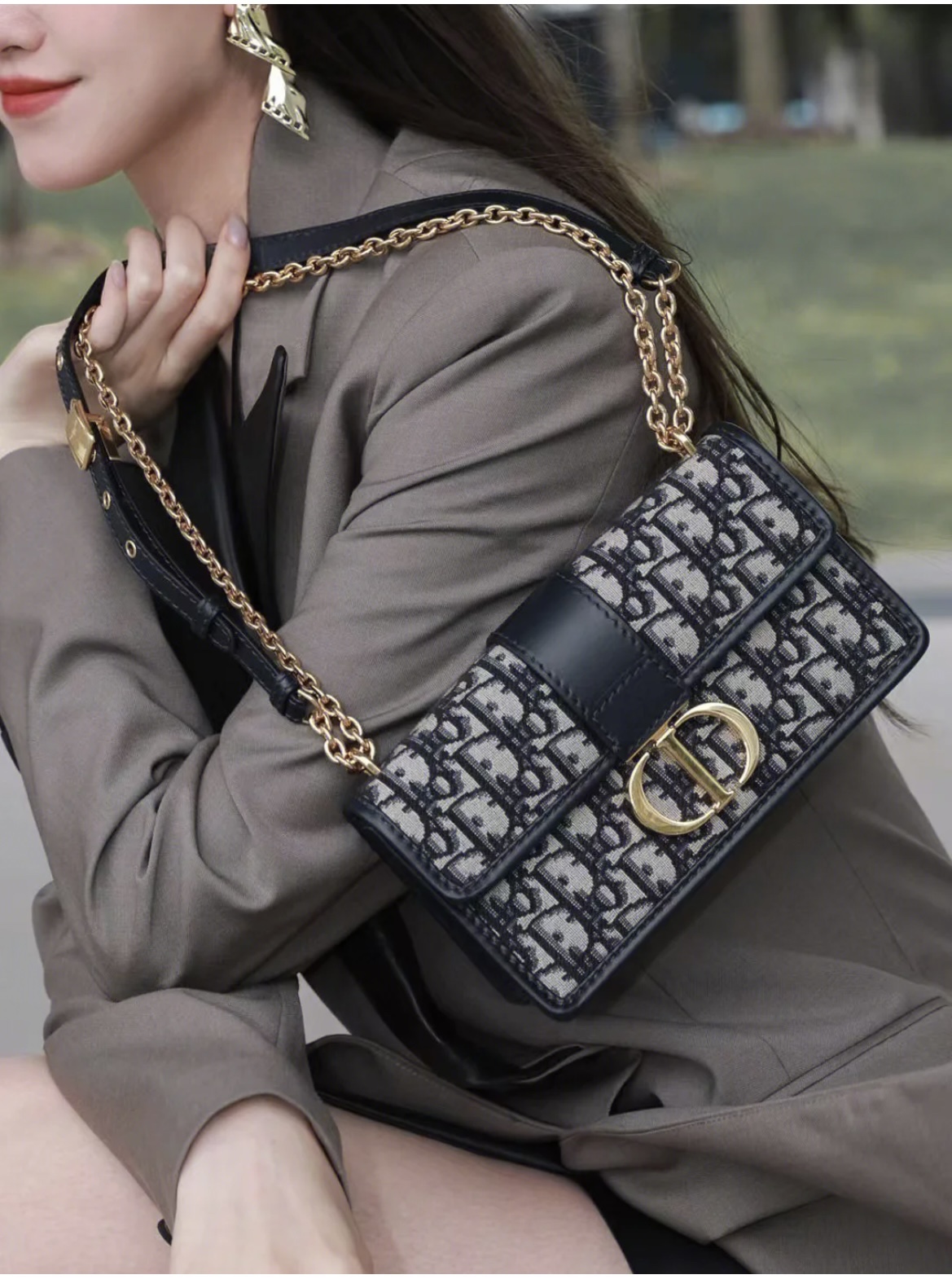 • 30 Montaigne East-West Bag with Chain Blue Dior Oblique Jacquard