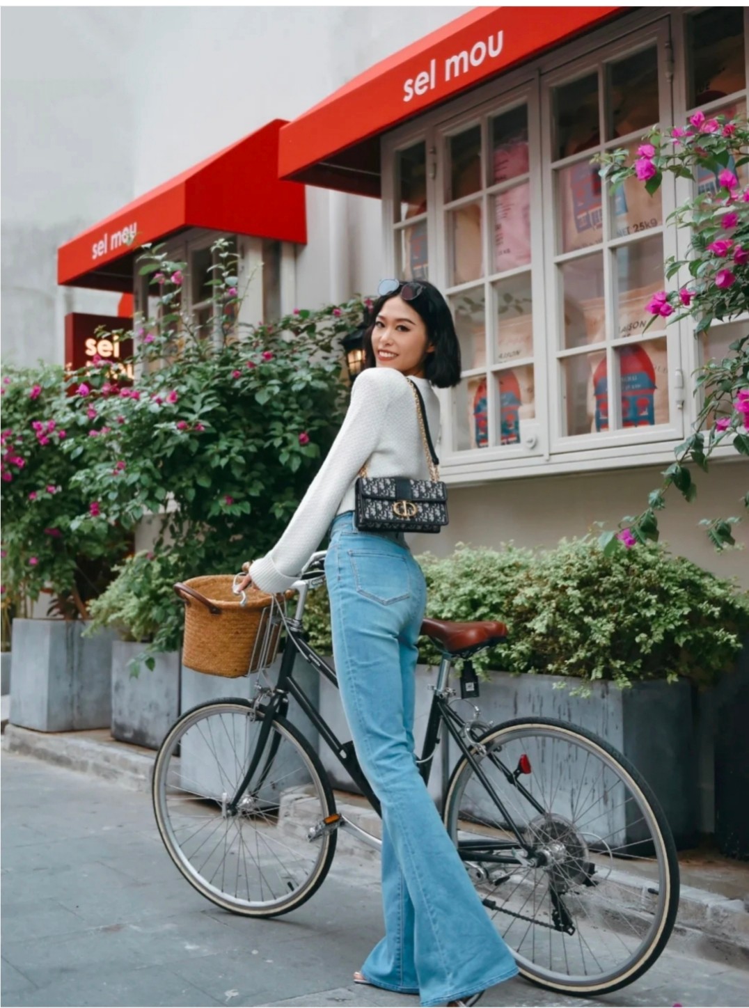 30 Montaigne East-West Bag with Chain Blue Dior Oblique Jacquard