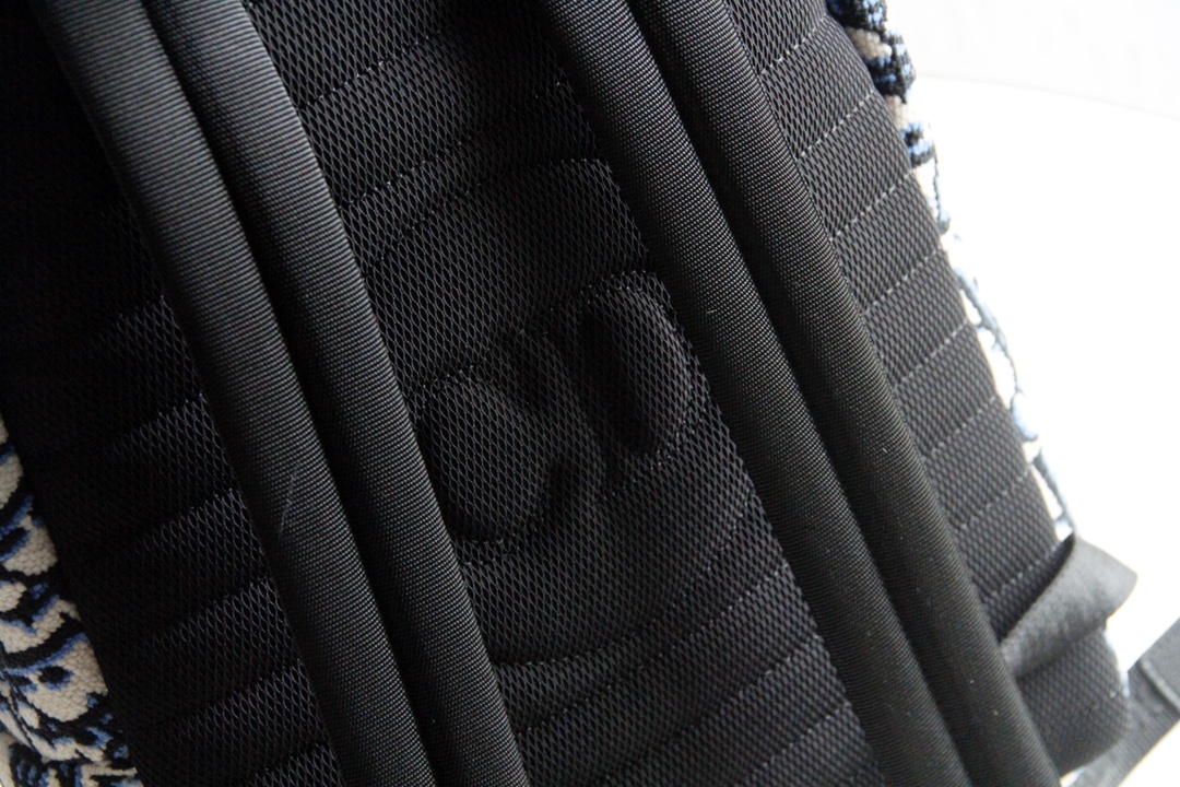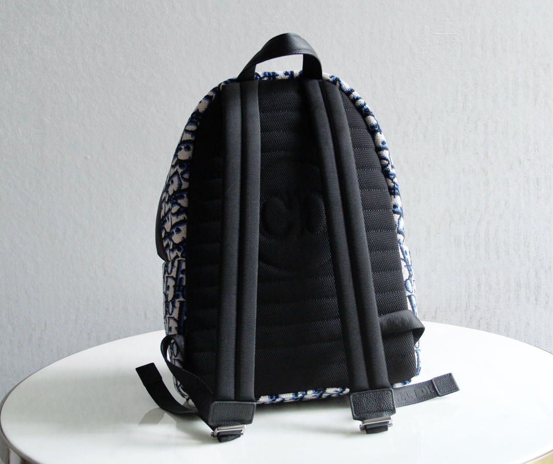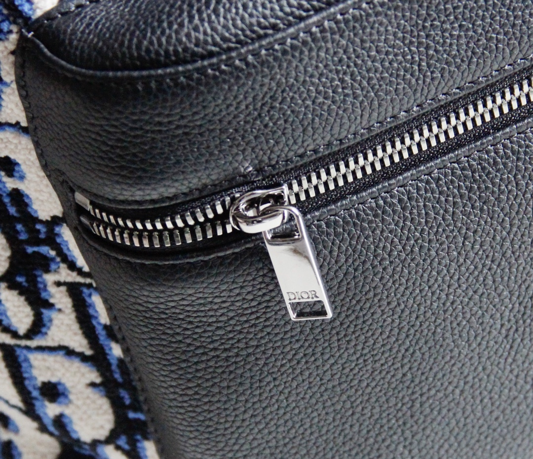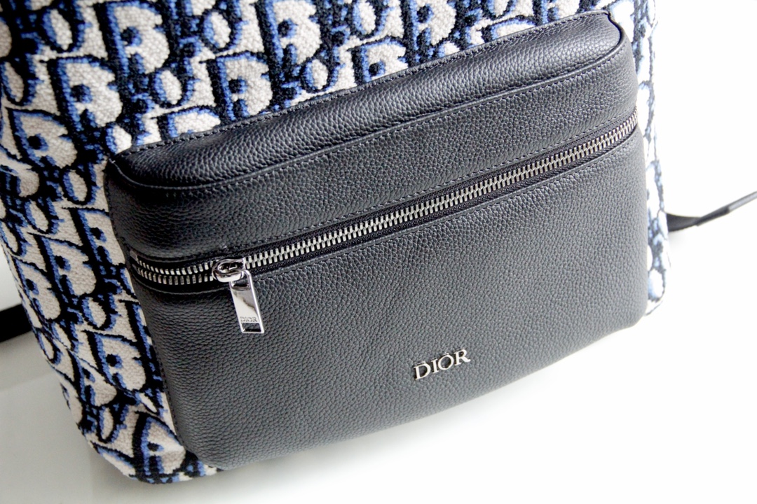 It can be easily paired with various casual items and matching sneakers to create a coordinated look. The bag features a two-way zipper opening, adjustable padded nylon shoulder straps, a top leather handle, and reinforced back panel with a mesh fabric and "CD" logo. There is also a front black grained leather zipper pocket for hand-carrying or shoulder-carrying convenience.