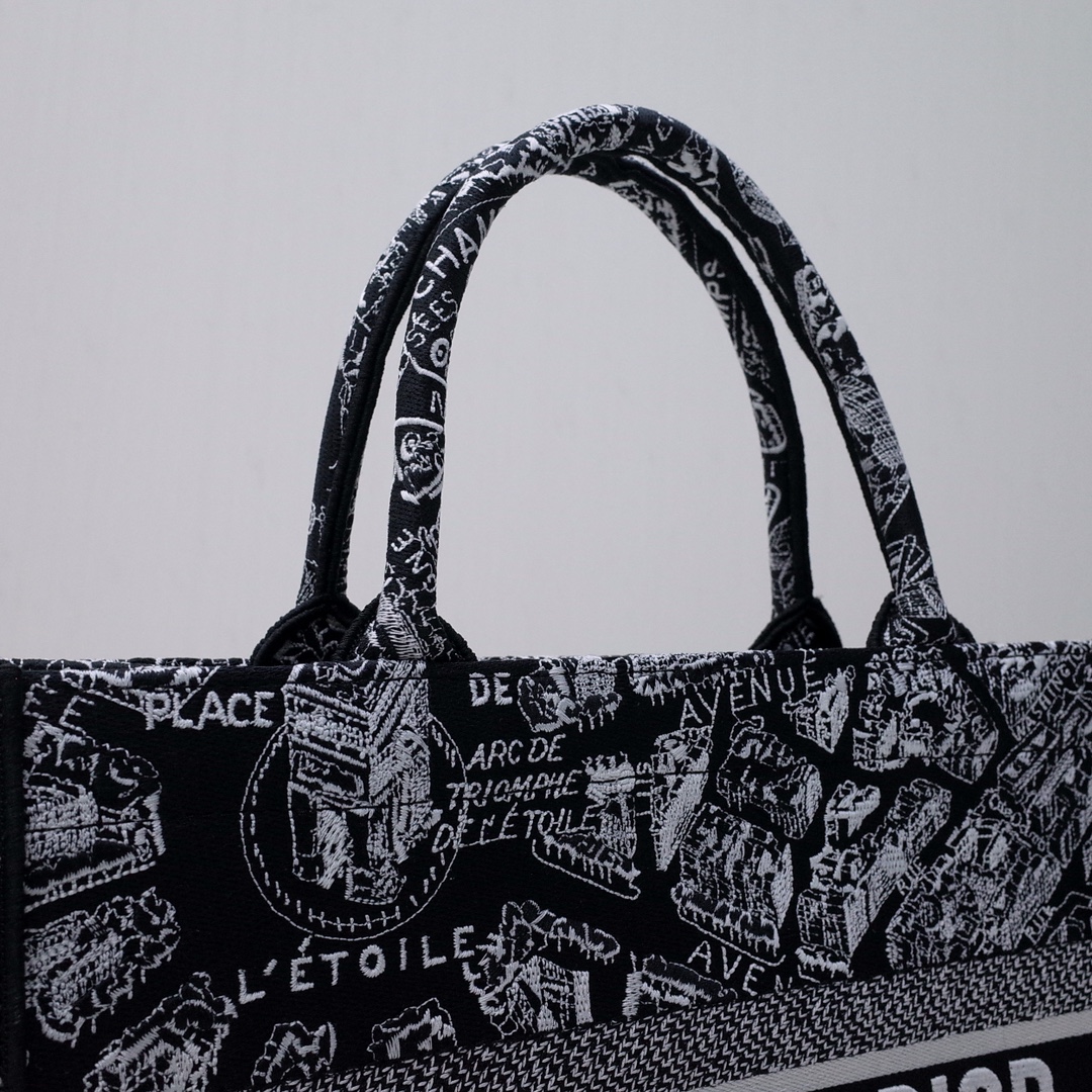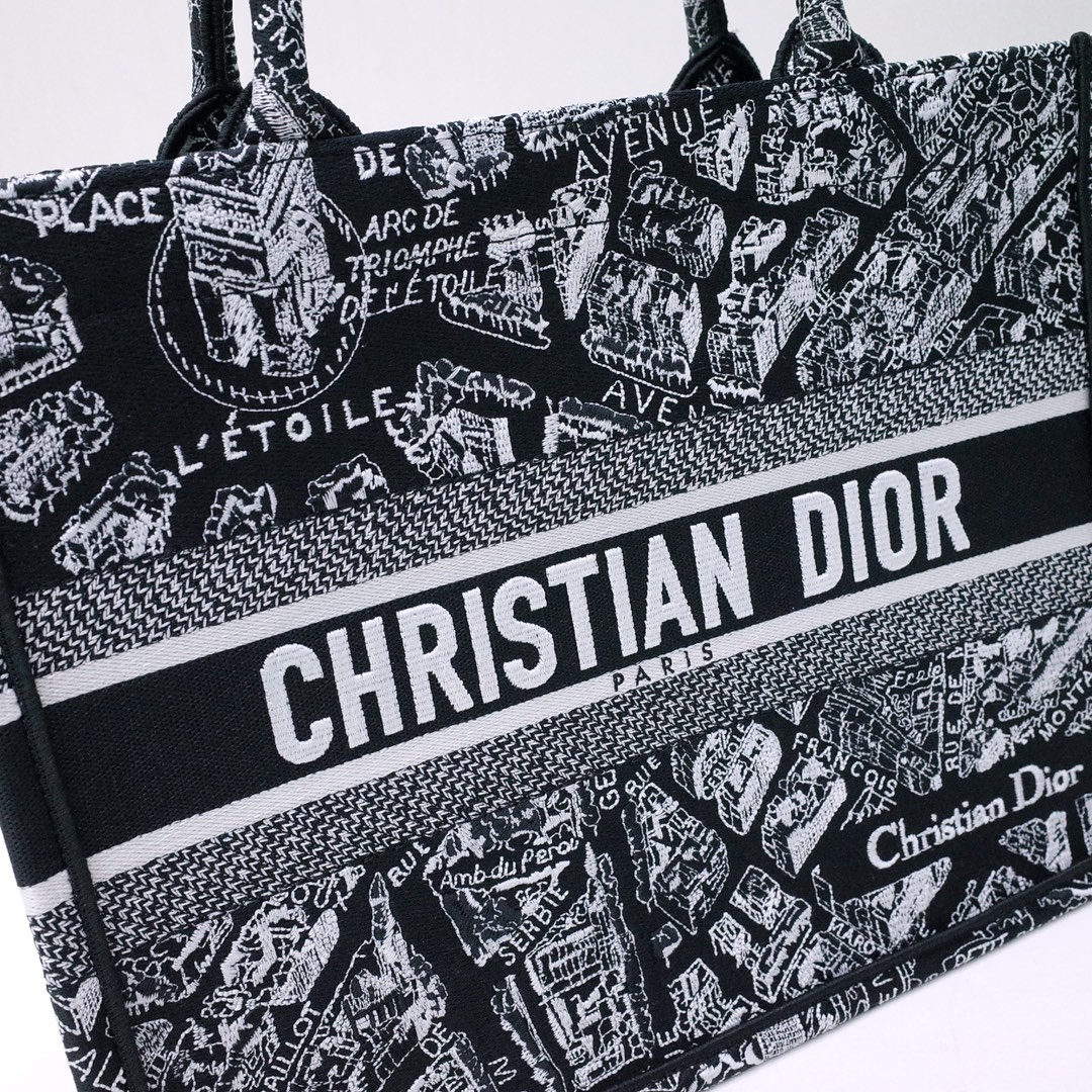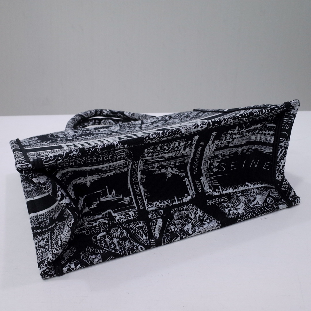 • Dior Book Tote Black and White Plan de Paris Embroidery
