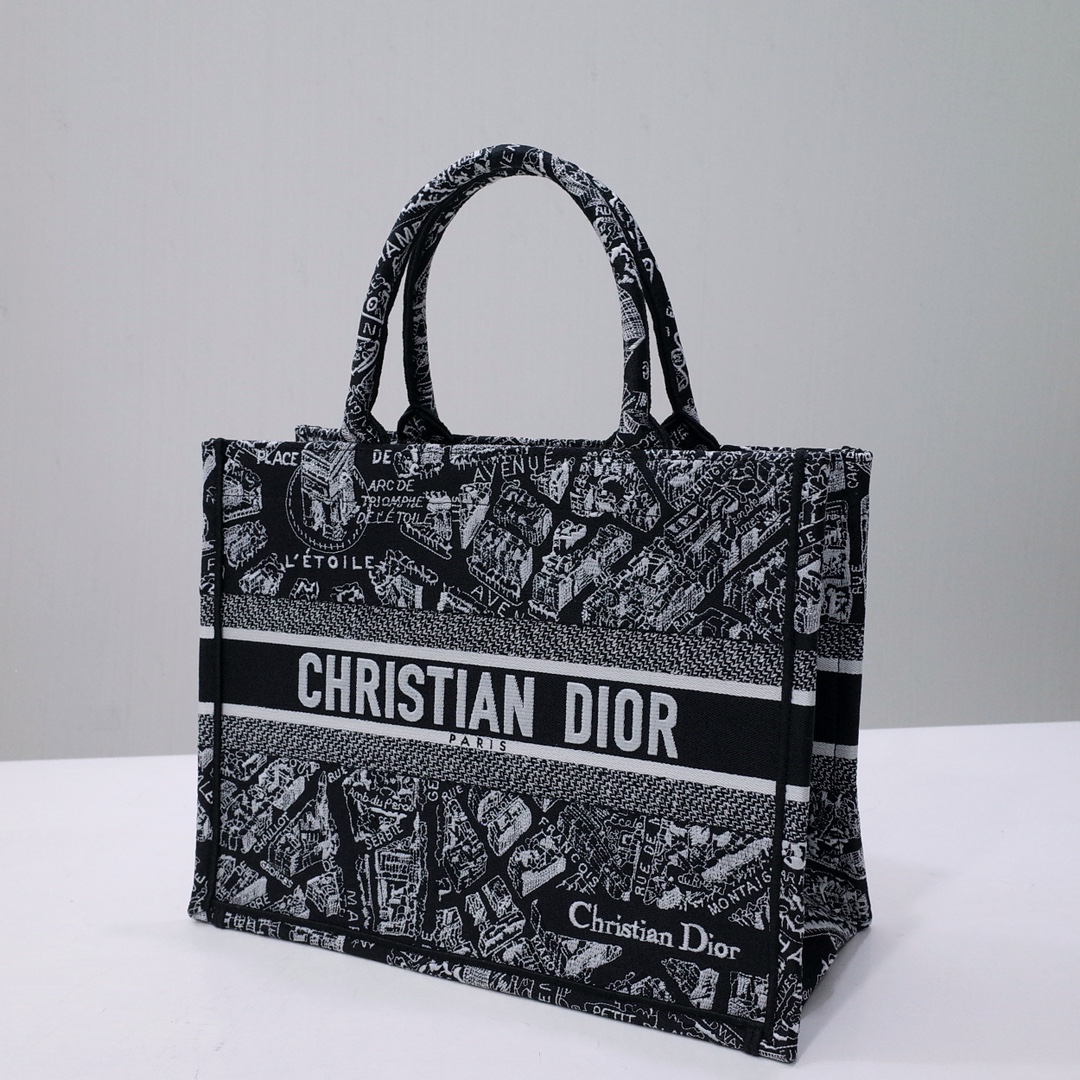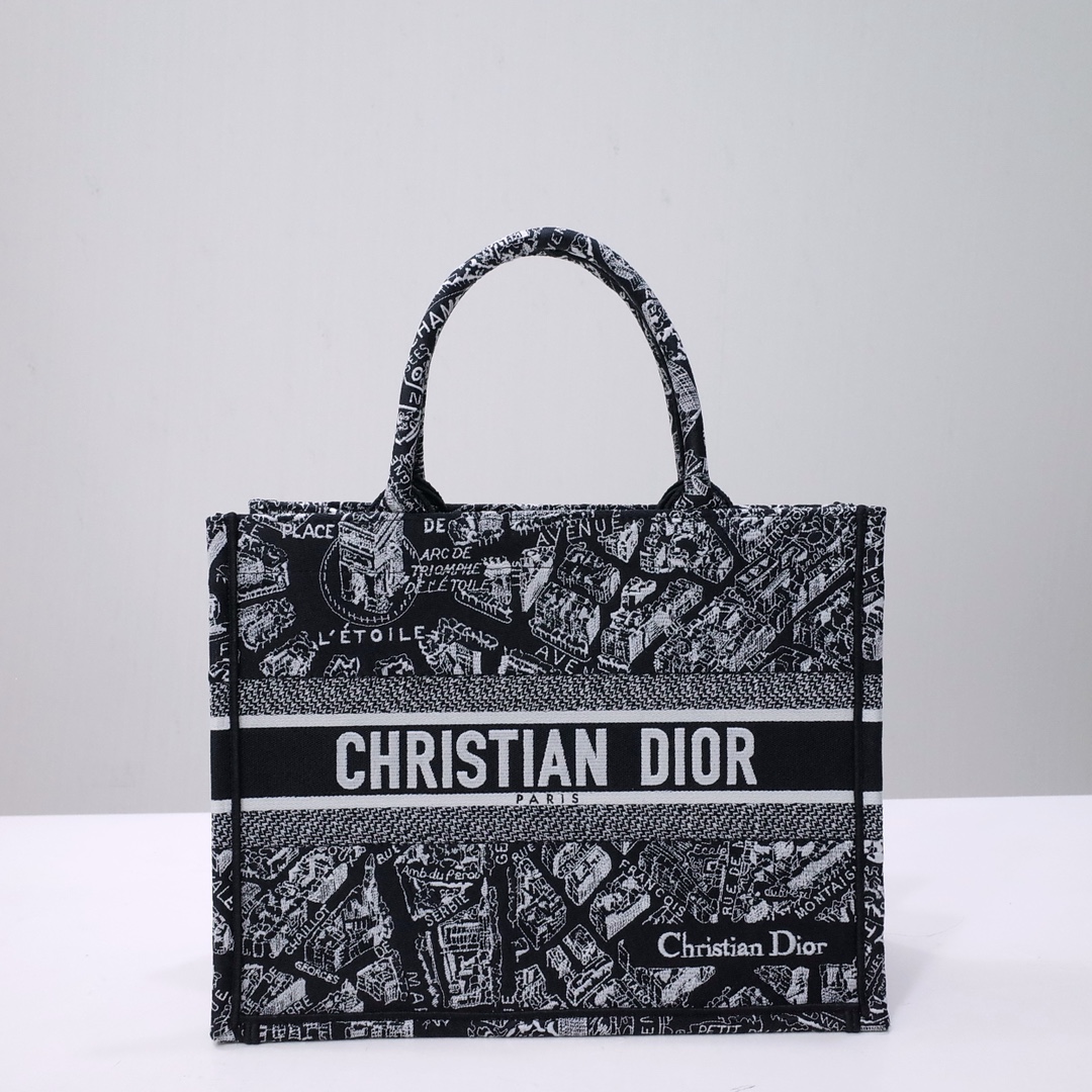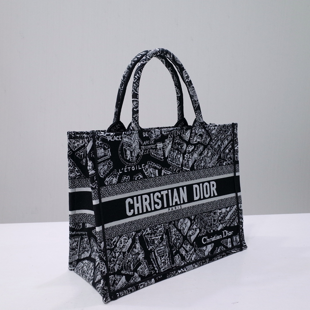 • Dior Book Tote Black and White Plan de Paris Embroidery