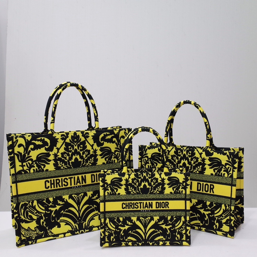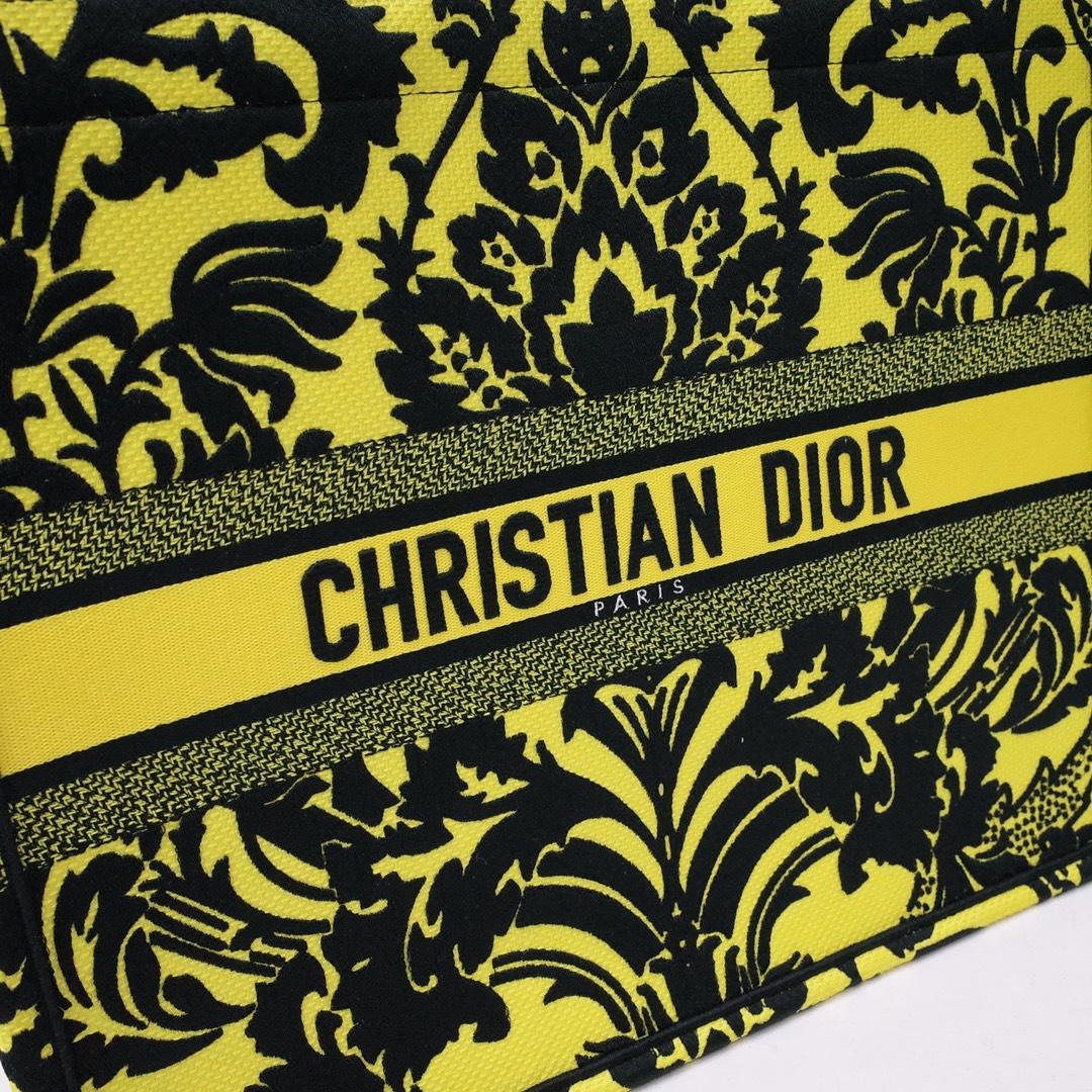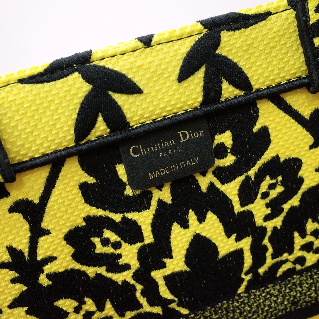 • Dior Book Tote Black and Yello Dior Petites Fleurs Embroidery