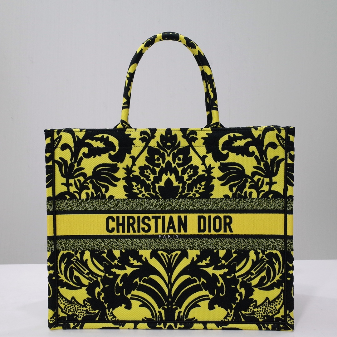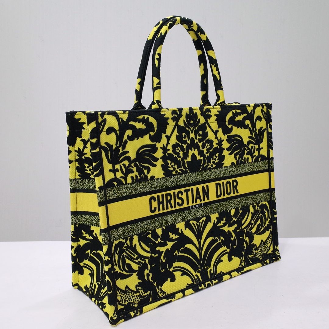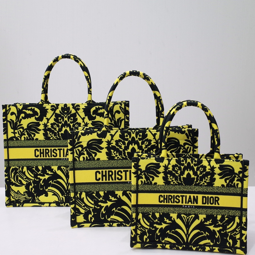 • Dior Book Tote Black and Yello Dior Petites Fleurs Embroidery