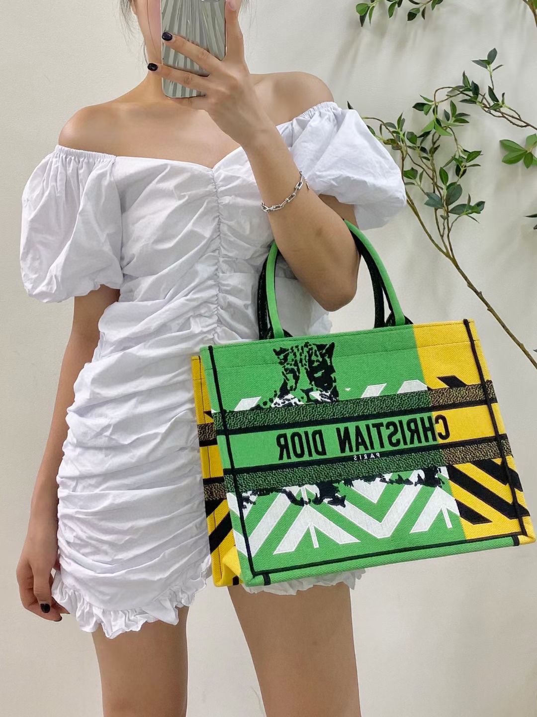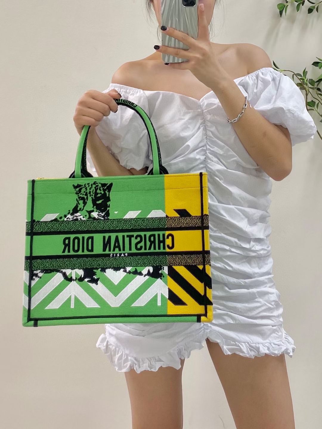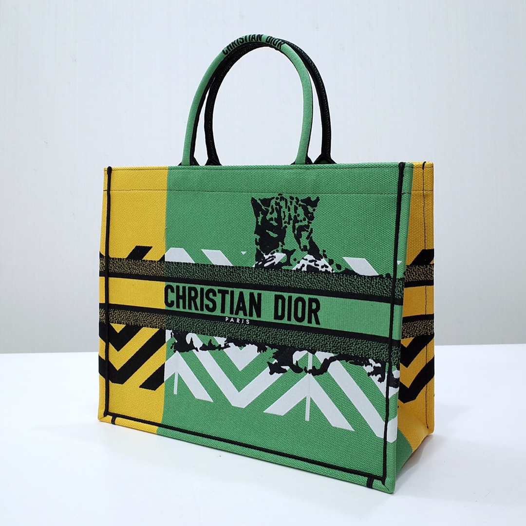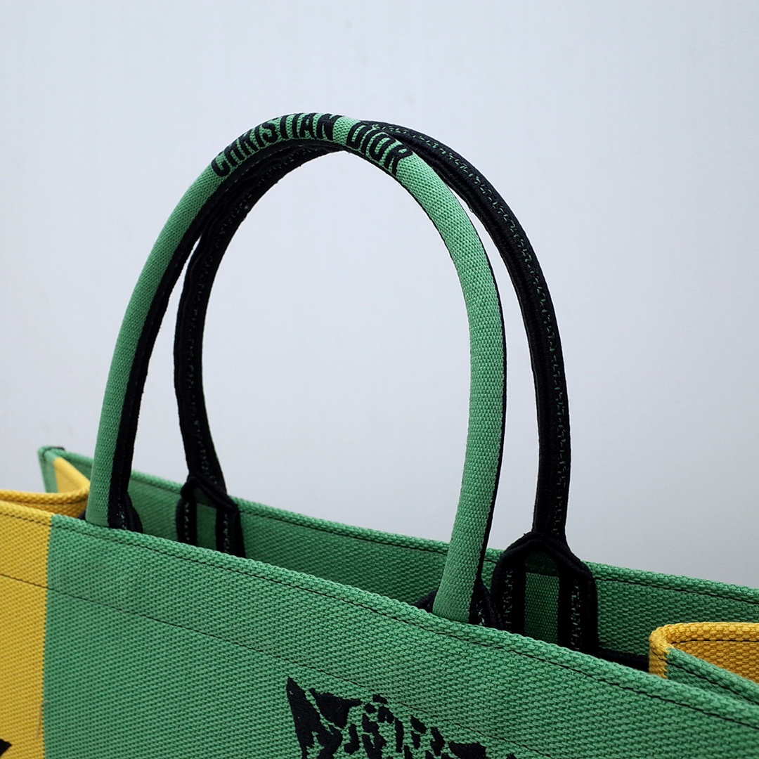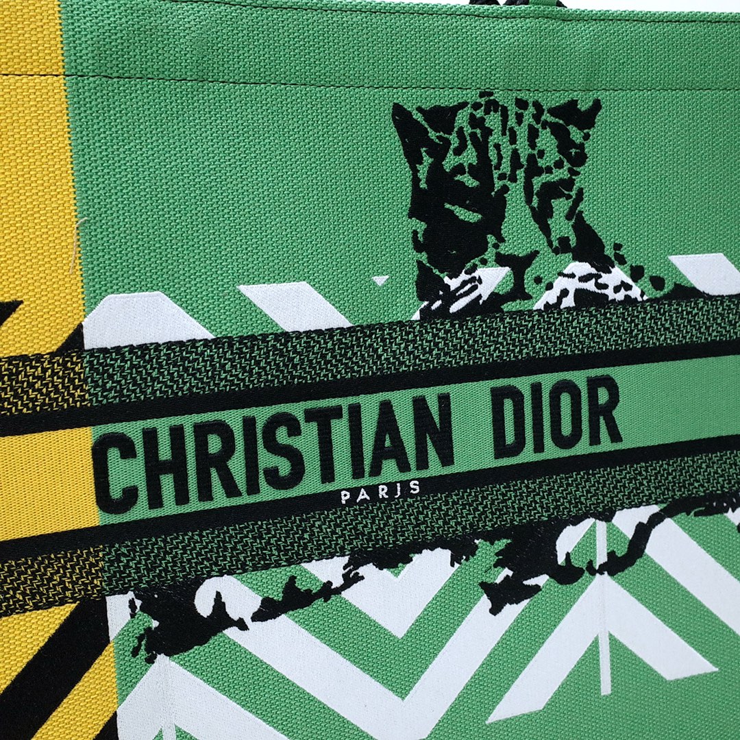 Dior Book Tote Green Orange Embroidery D-Jungle Pop. Limited edition.