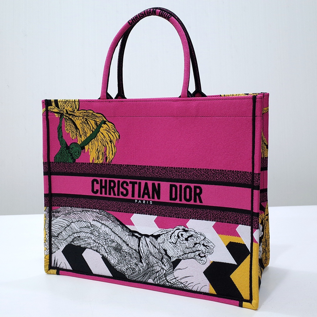 The Dior Book Tote is an original creation introduced by Maria Grazia Chiuri, Dior's Creative Director, and has become a staple of the Dior aesthetic. Designed to hold all the daily essentials, it is fully embroidered with the white multicolor Dior Jardin Botanique motif and presents a romantic floral pattern inspired by Mr. Dior's beloved Granville gardens. Adorned with the 'CHRISTIAN DIOR PARIS' signature on the front, the medium tote exemplifies the House's signature savoir-faire and may be carried by hand or worn over the shoulder.