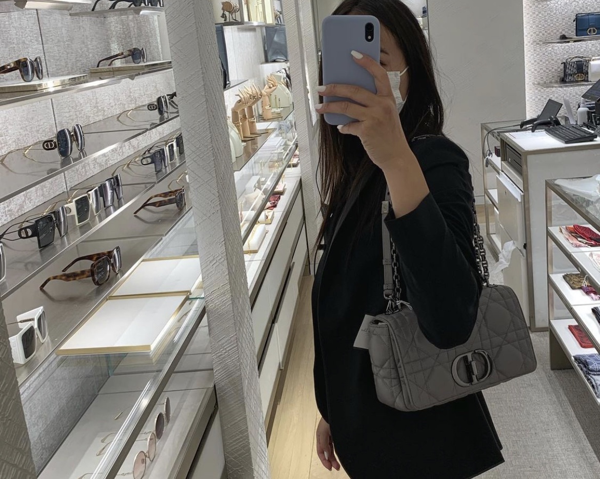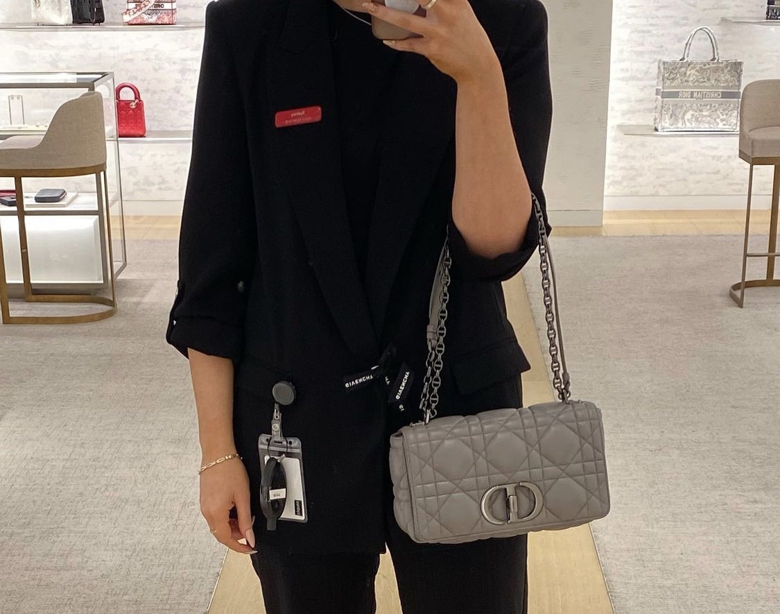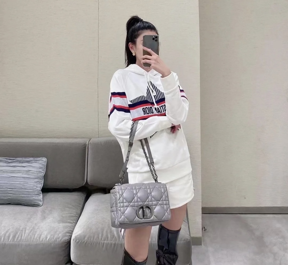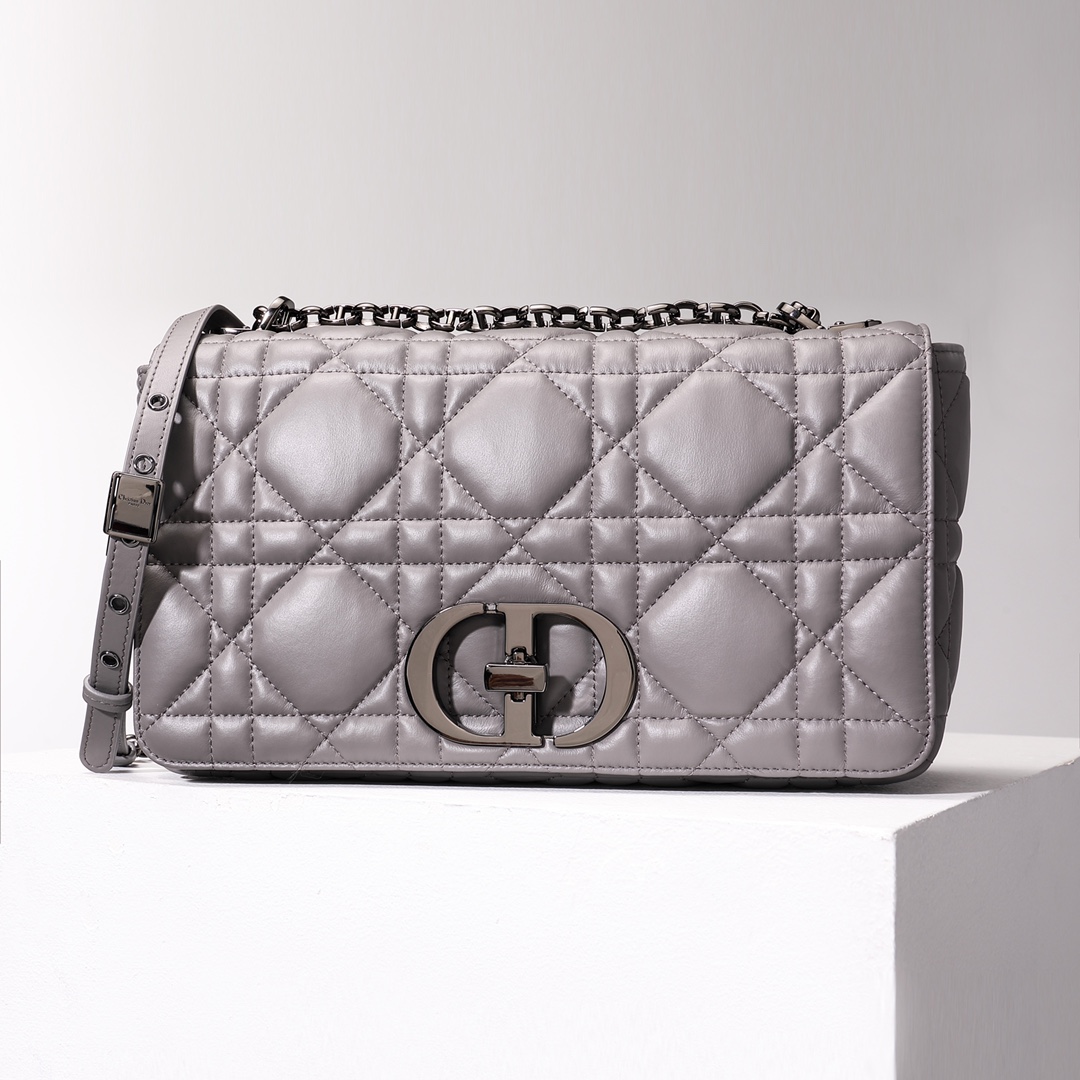 - Adjustable, removable 'CD' chain link strap with 'Christian Dior' military-inspired buckle