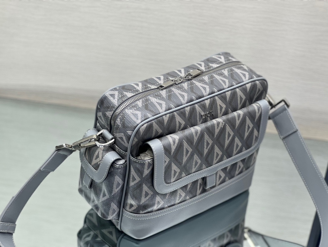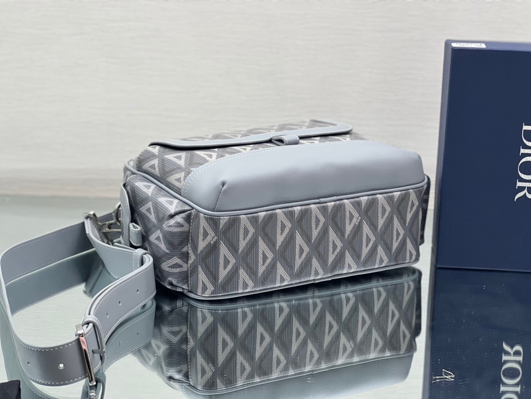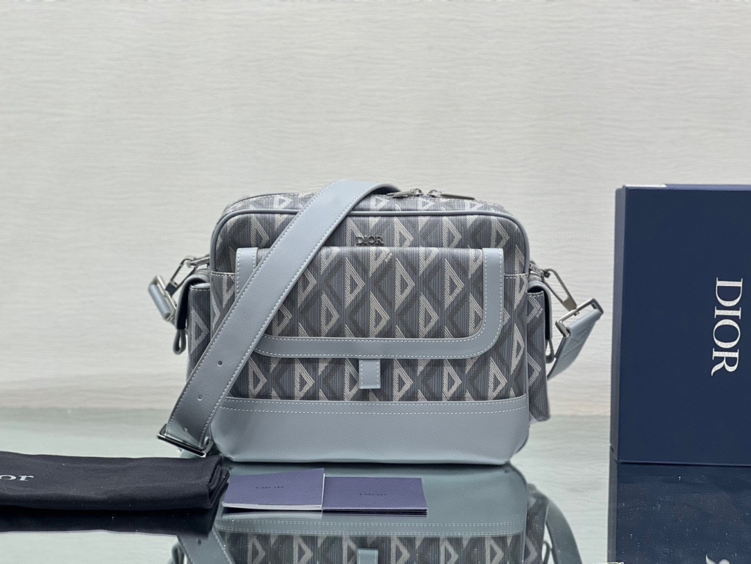 New this season, the Dior Hit The Road messenger pouch combines modernity with the House's couture spirit. Crafted in Dior gray CD Diamond canvas, inspired by House archives, and smooth calfskin, it boasts a 'DIOR' signature on the front. The design is distinguished by a spacious main compartment and a large flap pocket on the front. Featuring an adjustable and removable shoulder strap, the practical pouch will lend the finishing touch to all casual outfits.
