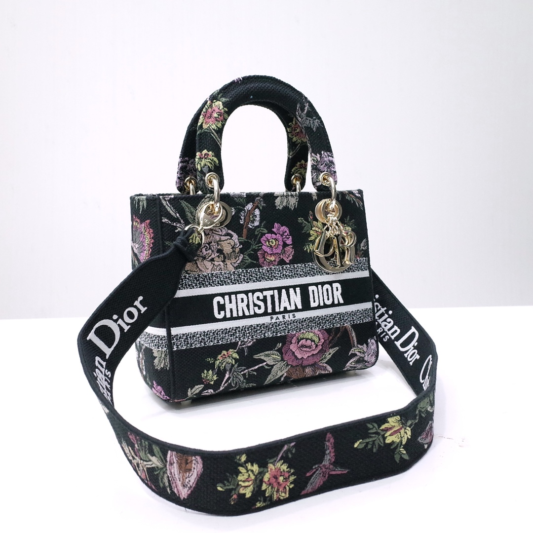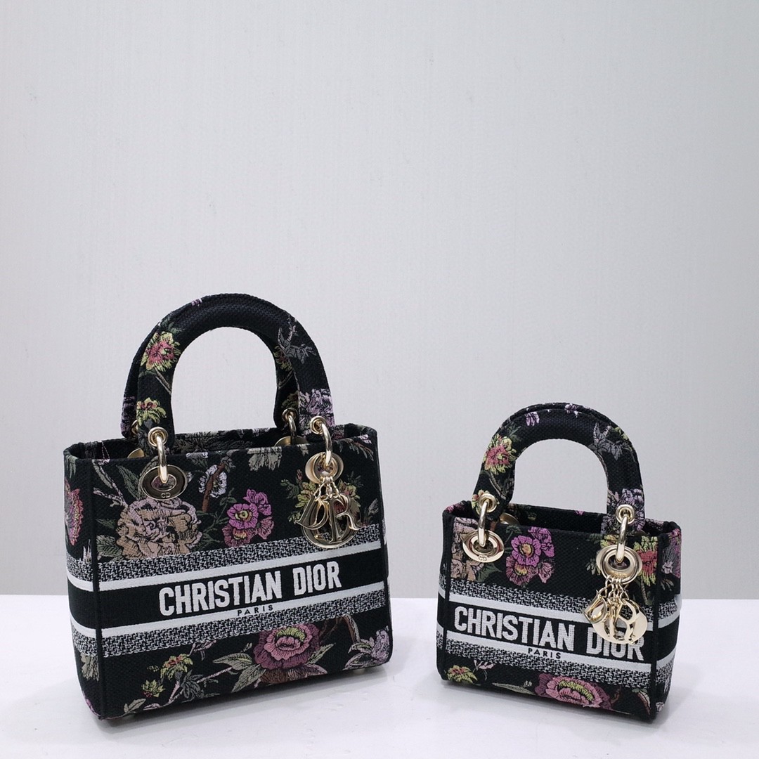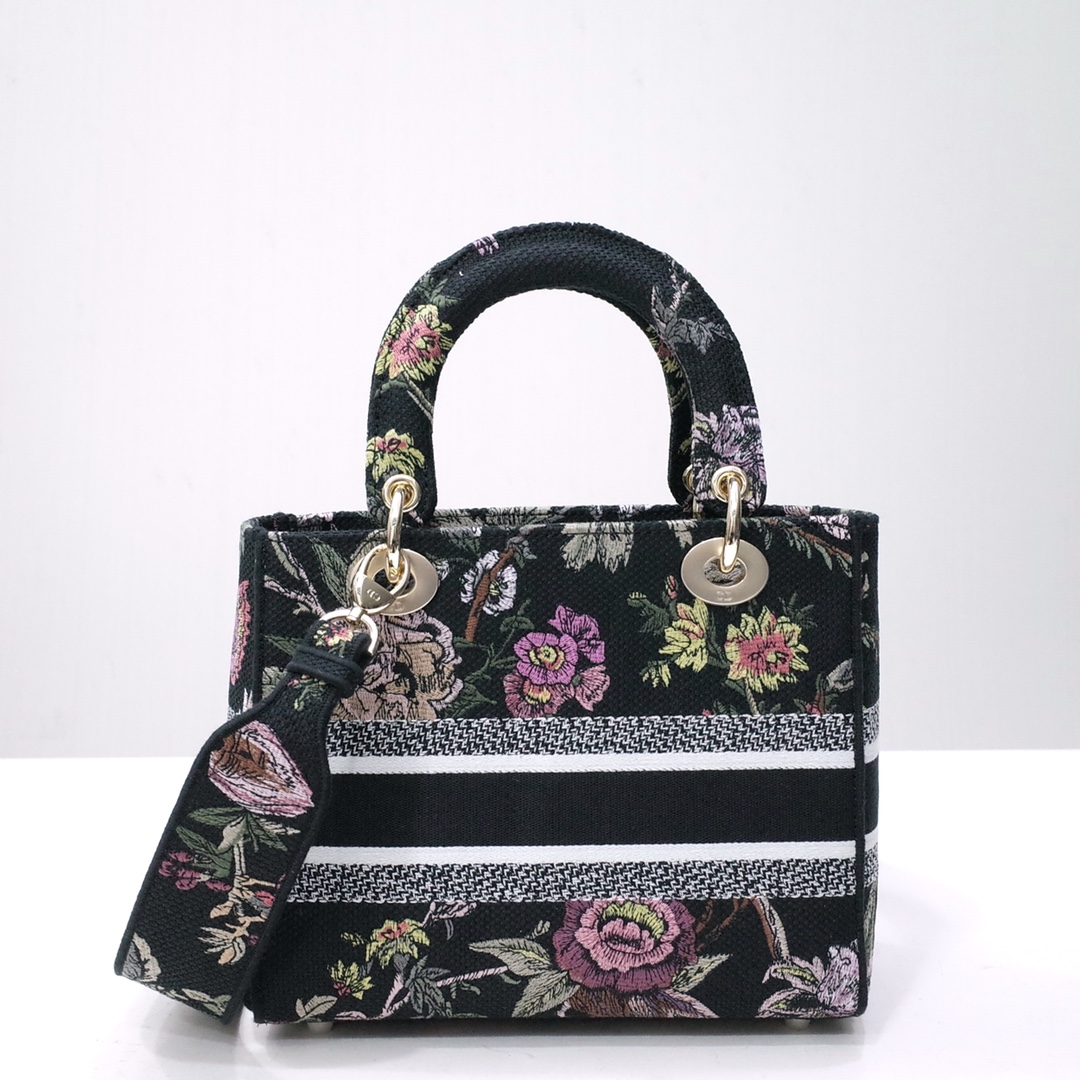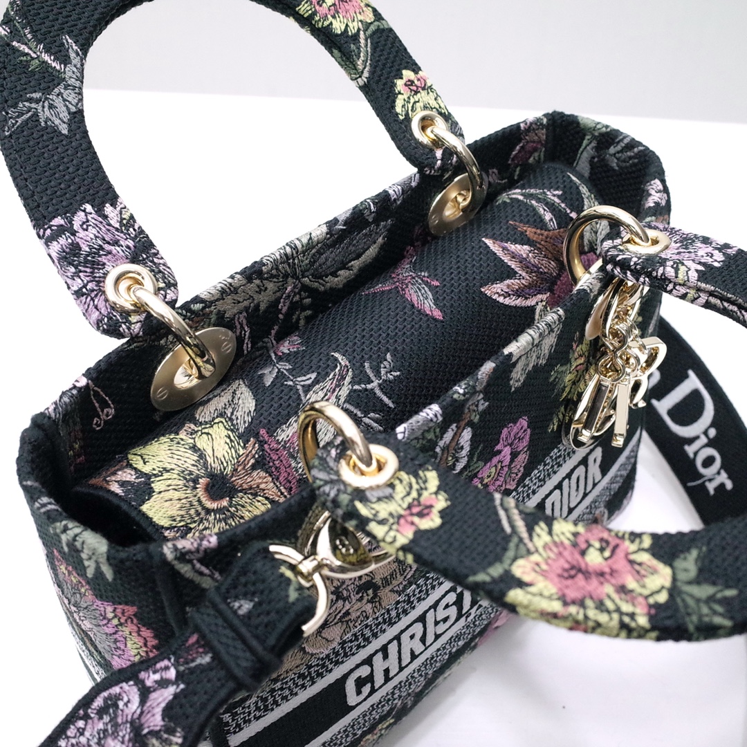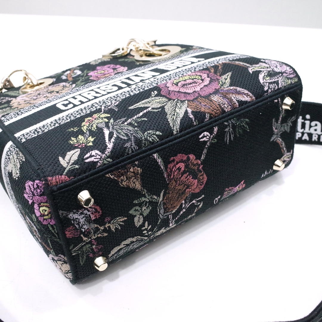 Lady D-Lite Bag Black Multicolor DI Jardin Botanique Embroidery