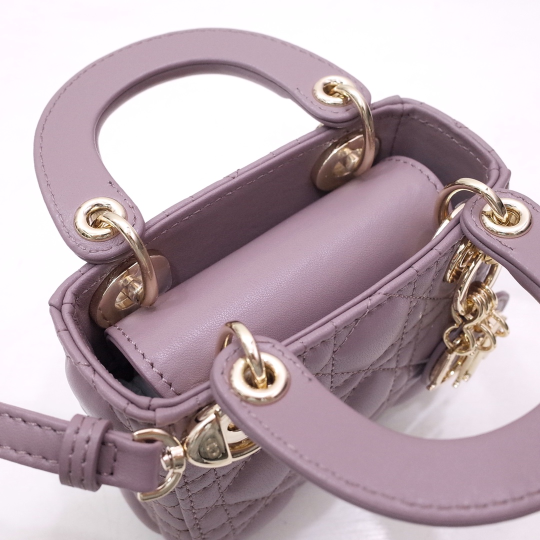 • Lady super mini Dior Bag peony powder Cannage Lambskin