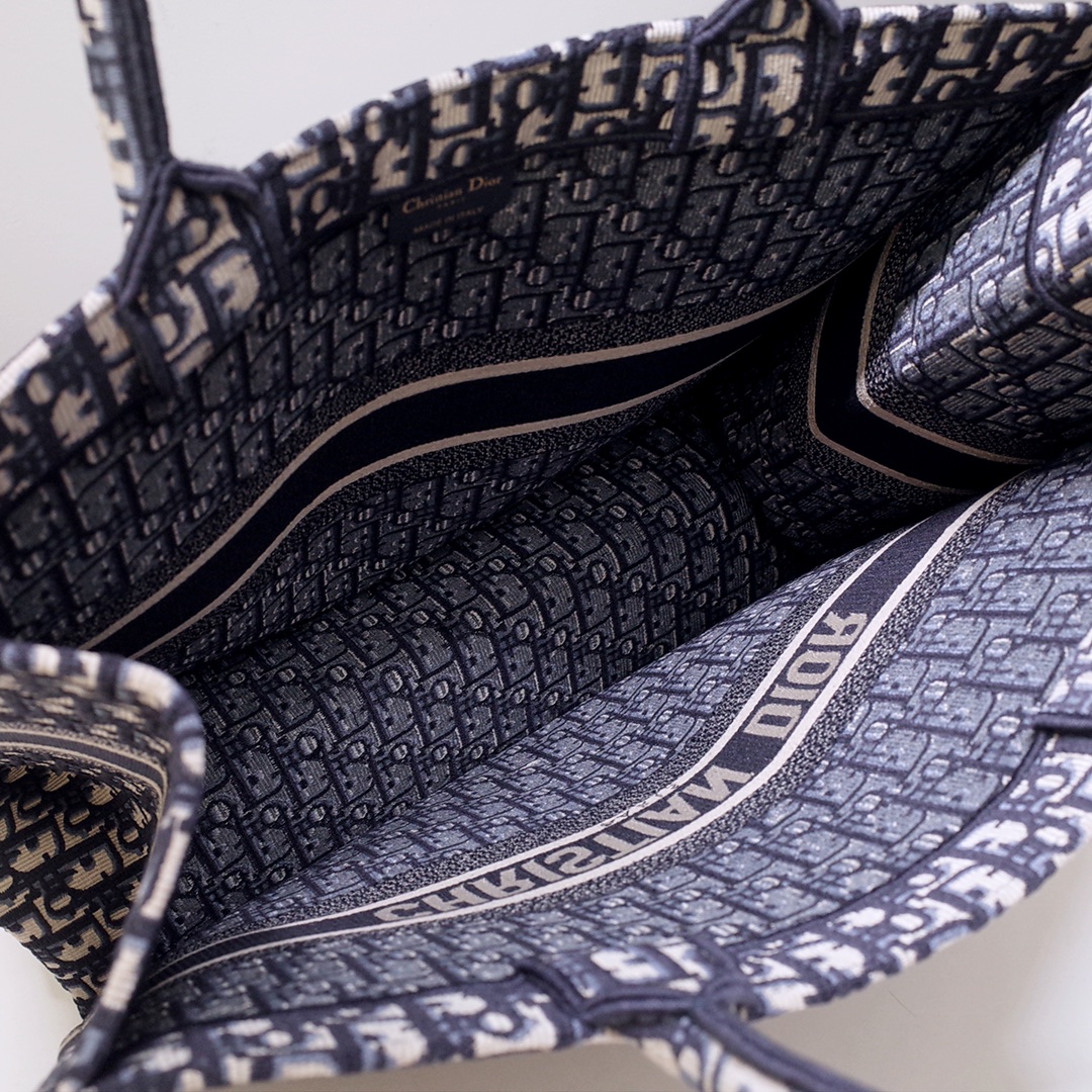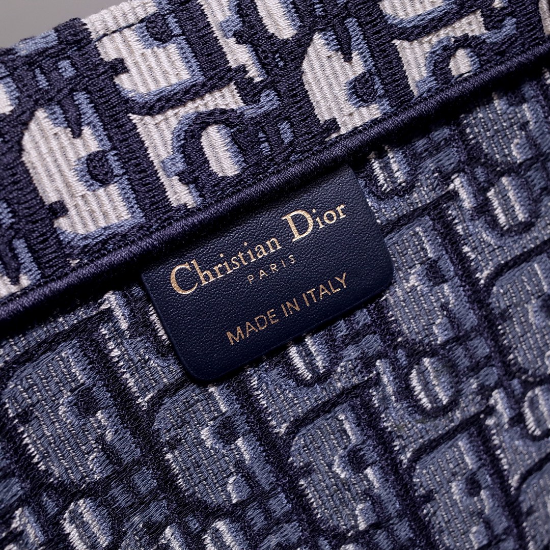 large Dior Book Tote Blue Dior Oblique Embroidery