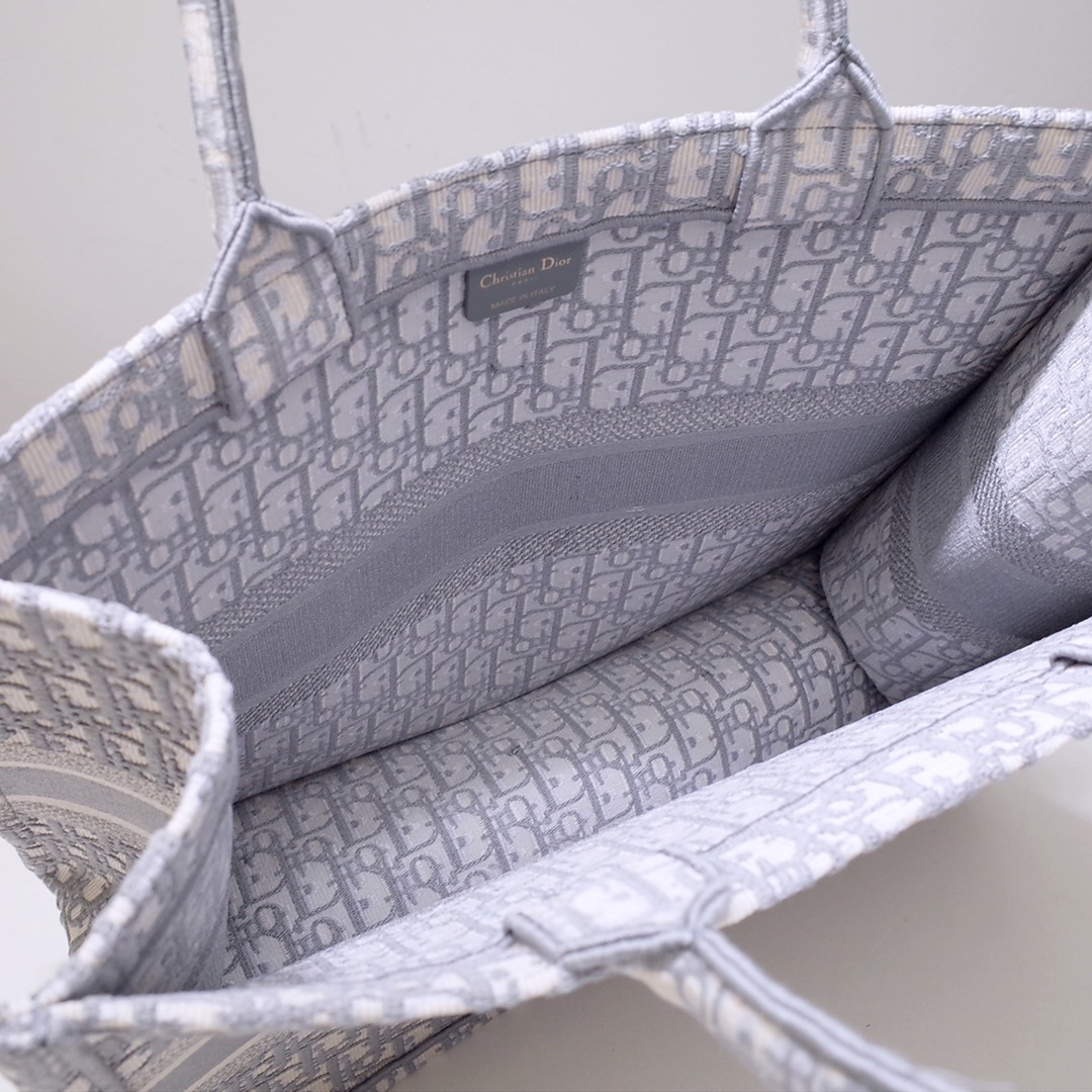 • Large Dior Book Tote Gray Dior Oblique Embroidery