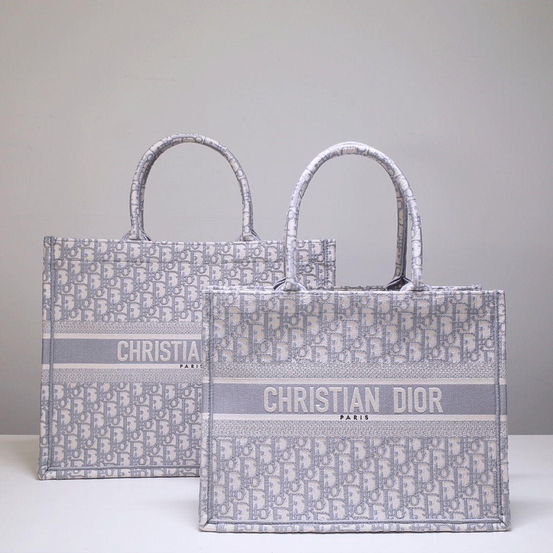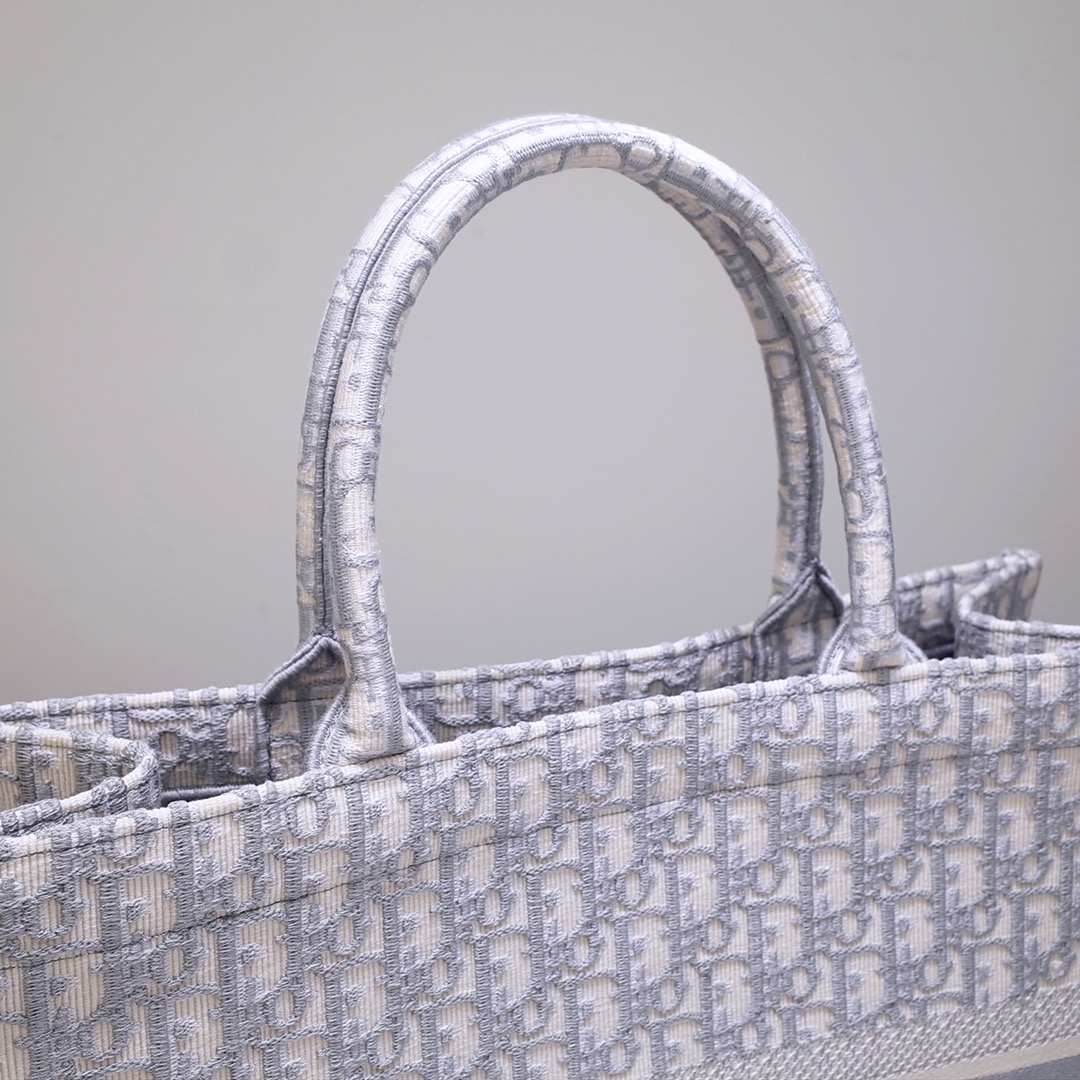 Large Dior Book Tote Gray Dior Oblique Embroidery