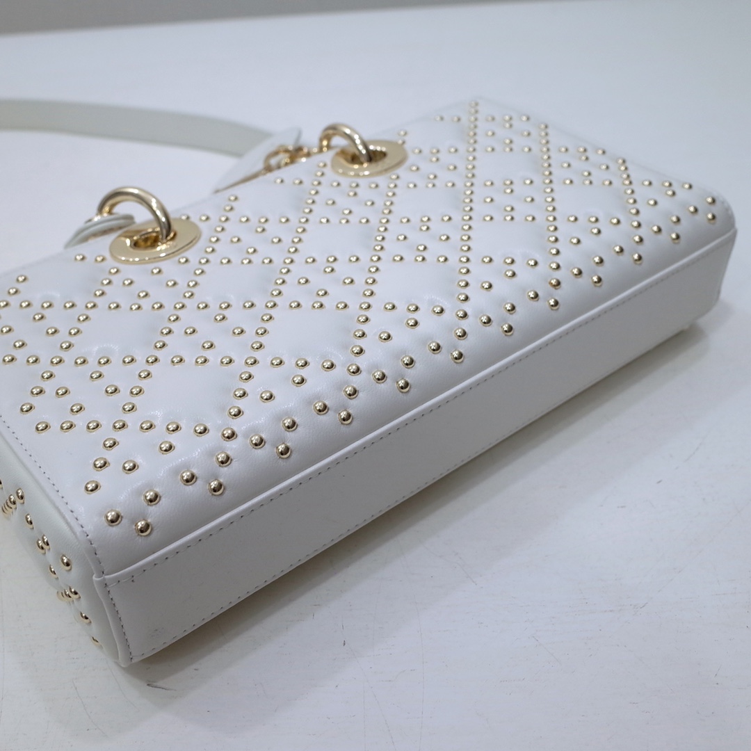 Medium Lady Dior Bag White Lucky Star Cannage Lambskin